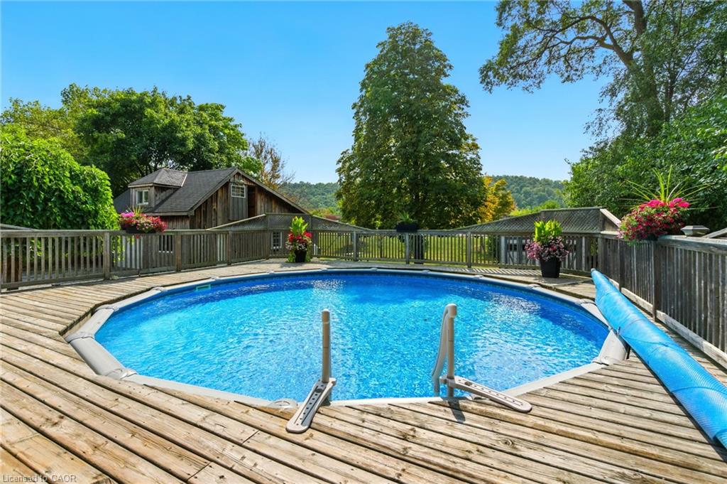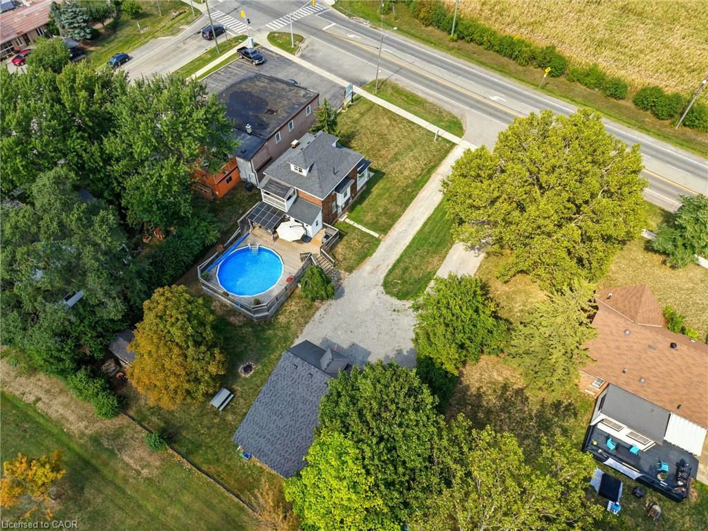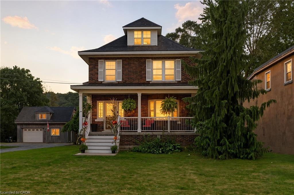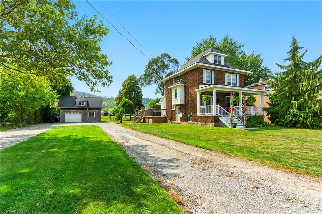 Welcome to this charming 2.5-storey brick home in the heart of Winona! Set on a beautifully landscaped 0.36-acre lot this property offers a peaceful country vibe with all the conveniences of being close to major amenities. Enjoy summers in your private backyard oasis complete with an above-ground pool, lounge area, and outdoor entertainment zone—perfect for watching the game or a movie under the stars. The detached double garage/workshop is ideal for hobbyists or extra storage, fully equipped with propane heat, hydro, and a loft. Inside, vintage character meets modern comfort with rich wood trim, stained glass accents, vintage doorknobs and a stately staircase. The cozy living room features an electric fireplace, and the recently finished lower level includes a stylish 3-piece bath—great for guests or extra living space. The partially finished attic offers endless possibilities as a bright home office or fun kids’ playroom. Steps to an elementary school and minutes to the highway, this location will make everyone's daily commute hassle free! Stroll next door for farm-fresh produce each day and soak in the relaxed charm of country living where a simpler way of life meets everyday comfort.