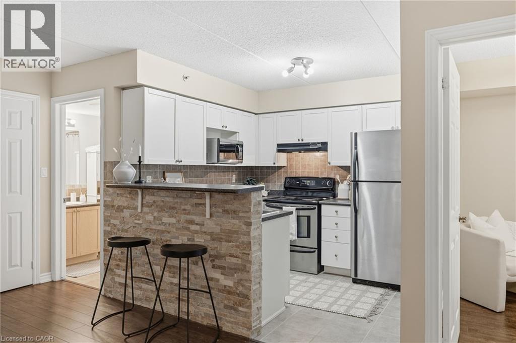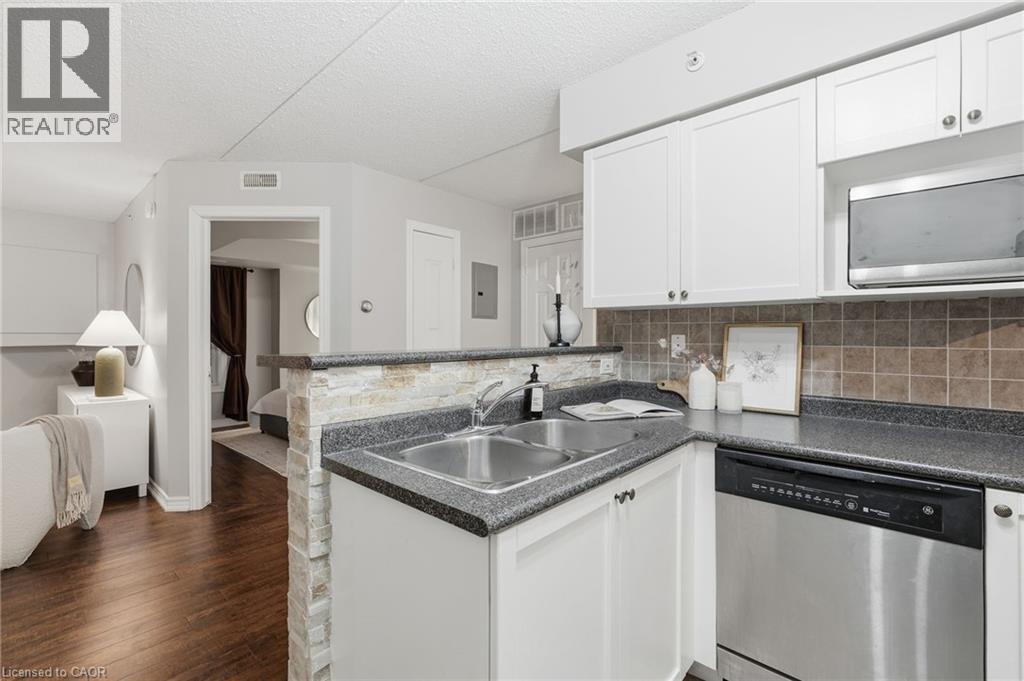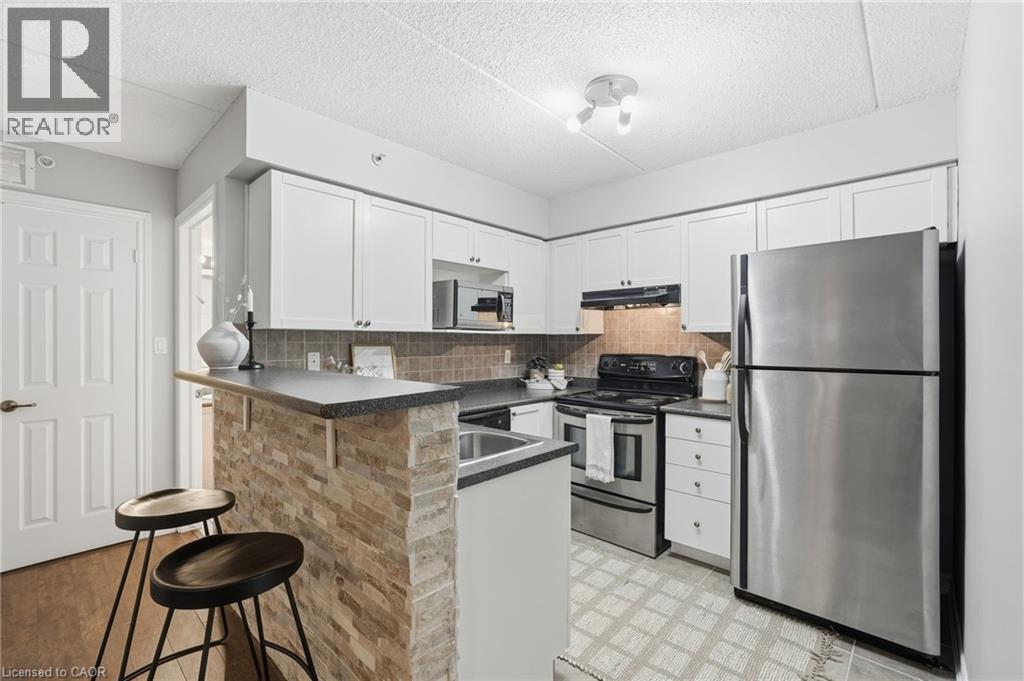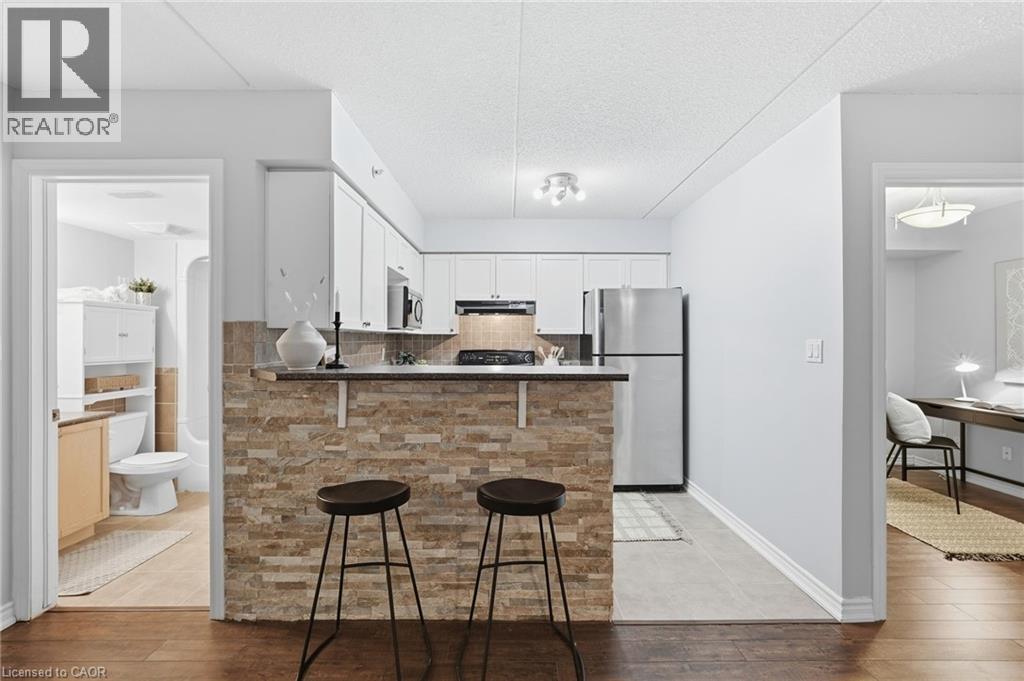 Stylish, low-maintenance living in the heart of Burlington! This modern 1 bedroom plus den, 1 bathroom unit is the perfect fit for young professionals looking to own their first home or retirees seeking comfort, convenience, and lifestyle. Located just minutes from the QEW and Hwy 407, commuting is a breeze while being steps to restaurants, cafes, and all the shopping you need means keeping your time spent in the car to a minimum. Bright kitchen cabinetry and sleek laminate flooring throughout the main living space make this space fresh and move in ready. The spacious den provides an ideal work from home space or hobby room. Other conveniences include in-suite laundry, 1 underground parking space, and 1 locker for extra storage. Plus an additional bonus storage room can be found on the balcony for added convenience. Plenty of visitor parking means friends and family can drop by anytime. Residents also enjoy access to a fitness centre and party room, ideal for socializing or staying active without ever leaving home. Whether you’re working downtown, hybrid, or remote, this is a smart move in a fantastic location! Don't miss this opportunity to simplify your life without sacrificing style, comfort, or location! (id:52316)