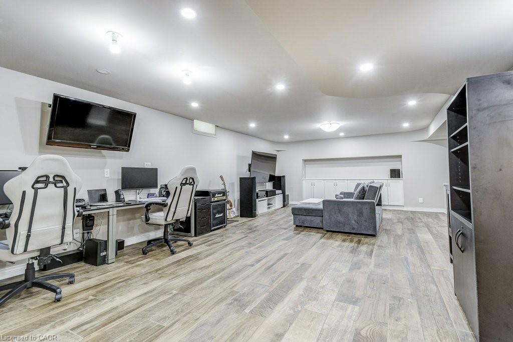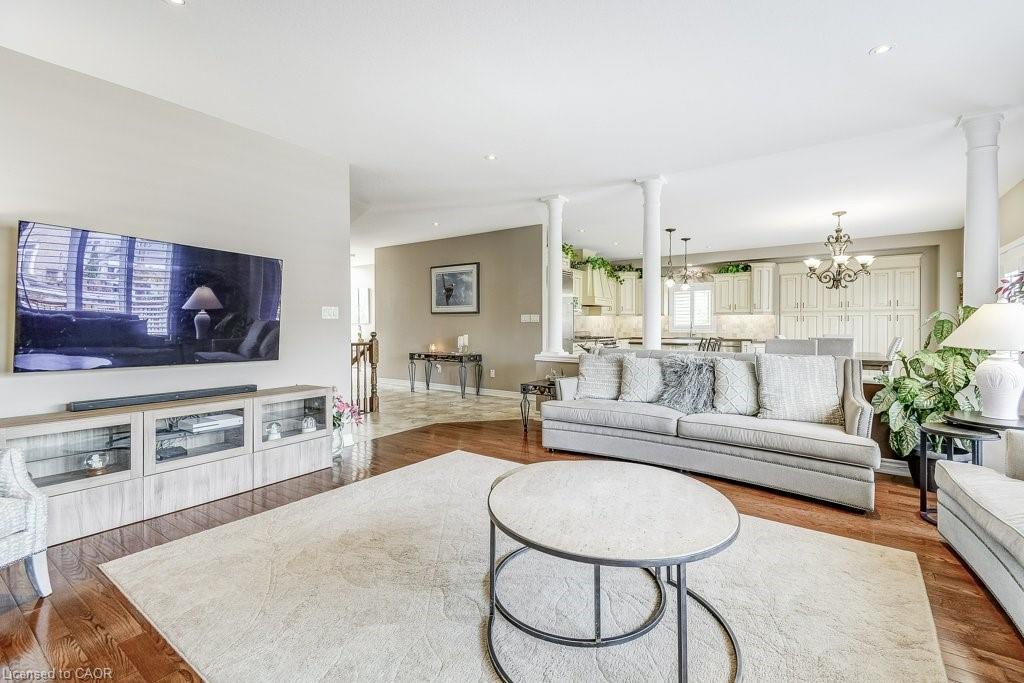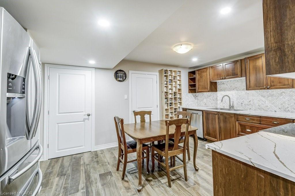 This stunning dream home in the heart of Ancaster Meadowlands gleams with tons of natural light! A breathtaking 2-storey home with over 5000 sq ft of impeccably finished living space and premium sized lot creates an impressive home with an open-concept gourmet kitchen featuring stainless-steel appliances, quartz counters, a massive centre island and an abundance of beautiful cabinetry; expanding into a great room with a cozy gas fireplace and wall-to-wall windows spanning the entire back of the house; add beautiful garden doors that open to an outdoor entertainers dream with a large deck and a fully fenced private backyard. There are hardwood floors, California shutters and for the modern family, this immaculate home offers a main-level in-law space including a kitchenette, private bedroom, full bathroom suite ideal for aging parents, a growing family, or hosting visitors. Upstairs there are 4 large bedrooms, 2 full baths and a convenient second-floor laundry room. The basement is fully finished with in-floor heating, porcelain tile, a full kitchen and a rough-in for laundry (stackable washer/dryer). There is a separate entrance through the garage providing a perfect space for extended family or adult children. The double-car garage is equipped with dedicated 120 and 220 services ideal for EV charging or home shop. Conveniently located in the Meadowlands community with shopping, restaurants, movie theatre. Beautiful parks for the family, with fields for the sports enthusiast, access to play structures, and a spray pad for hot summer days. A leash-free oasis for dog-lovers and easy access for the commuter with the LINC/403. Book your private tour today to view this blend of home sweet home and luxury.