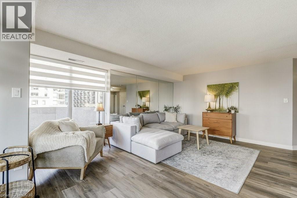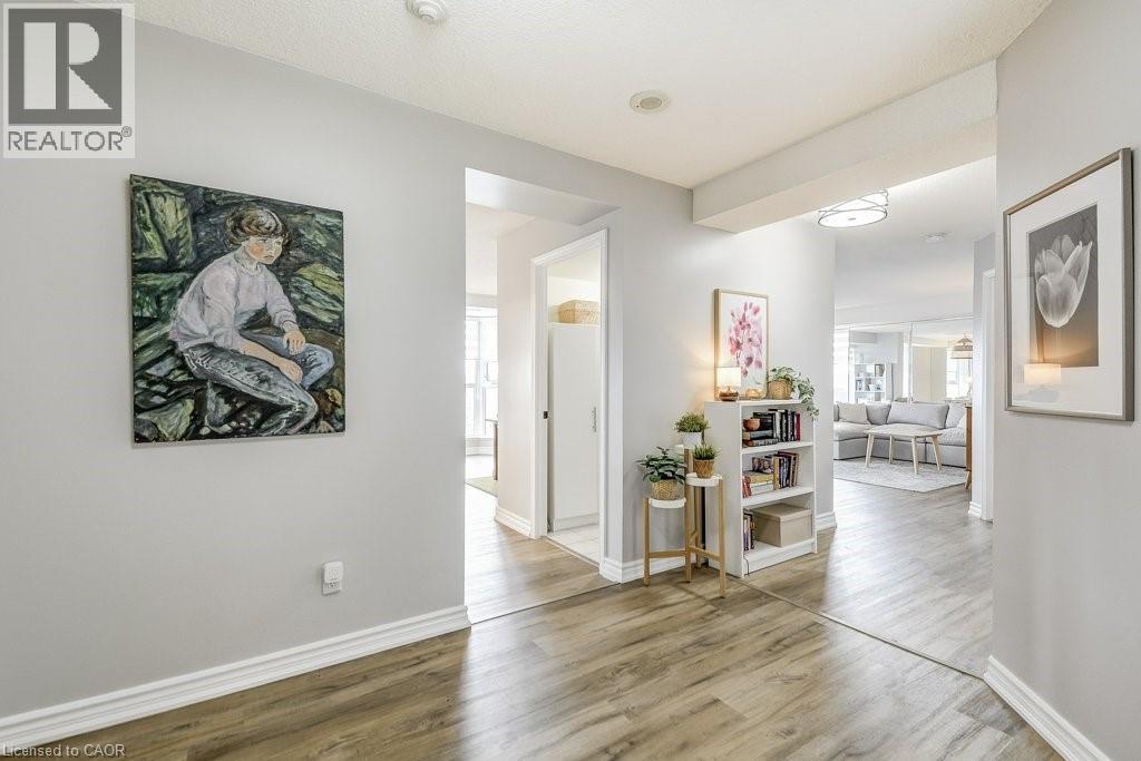 Luxury living meets modern style in this beautifully updated 2-bedroom, 2-bath suite at Bentley Place in the heart of the Durand neighbourhood. This expansive 1500+ sqft corner unit offers a bright, open-concept layout filled with natural light and city views through newly installed windows (2025). The modern white kitchen is a standout feature, showcasing gorgeous Statuario quartz countertops, stainless steel appliances and plenty of cabinetry for the aspiring chef. The spacious dining and living areas have amazing appeal whether it be for entertaining or relaxing. Two large enclosed balconies extend the living space — one off the living room (open and closed) and one private to the primary bedroom — offering an option to enjoy the skyline views year-round, rain or shine. The primary suite includes a spa-inspired 5-piece ensuite with a jetted tub and a generous walk-in closet with closet organizers. The second bedroom is equally spacious, also featuring a walk-in closet and custom storage solutions. Thoughtfully updated throughout with modern flooring, fresh paint and fashionable zebra blinds, every detail reflects care and contemporary taste. Residents of Bentley Place enjoy exclusive amenities including an exercise room, media room and underground parking. Highly walkable location! This wonderful spot will appeal to you if you enjoy walking, cycling or utilize public transit. Convenient proximity to McMaster Hospital/University. Surrounded by the arts, culture, recreation of downtown Hamilton. You will be within walking distance to James Street North, Hess Village, the Farmer’s Market, First Ontario Concert Hall, the Art Gallery of Hamilton, Locke Street, parks, a wide variety of cuisine, fine dining, shopping, West Harbour GO and scenic escarpment trails. One of the building’s larger units, this move-in-ready suite delivers the sophistication, space, and lifestyle you’ve been waiting for. (id:52316)