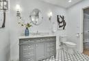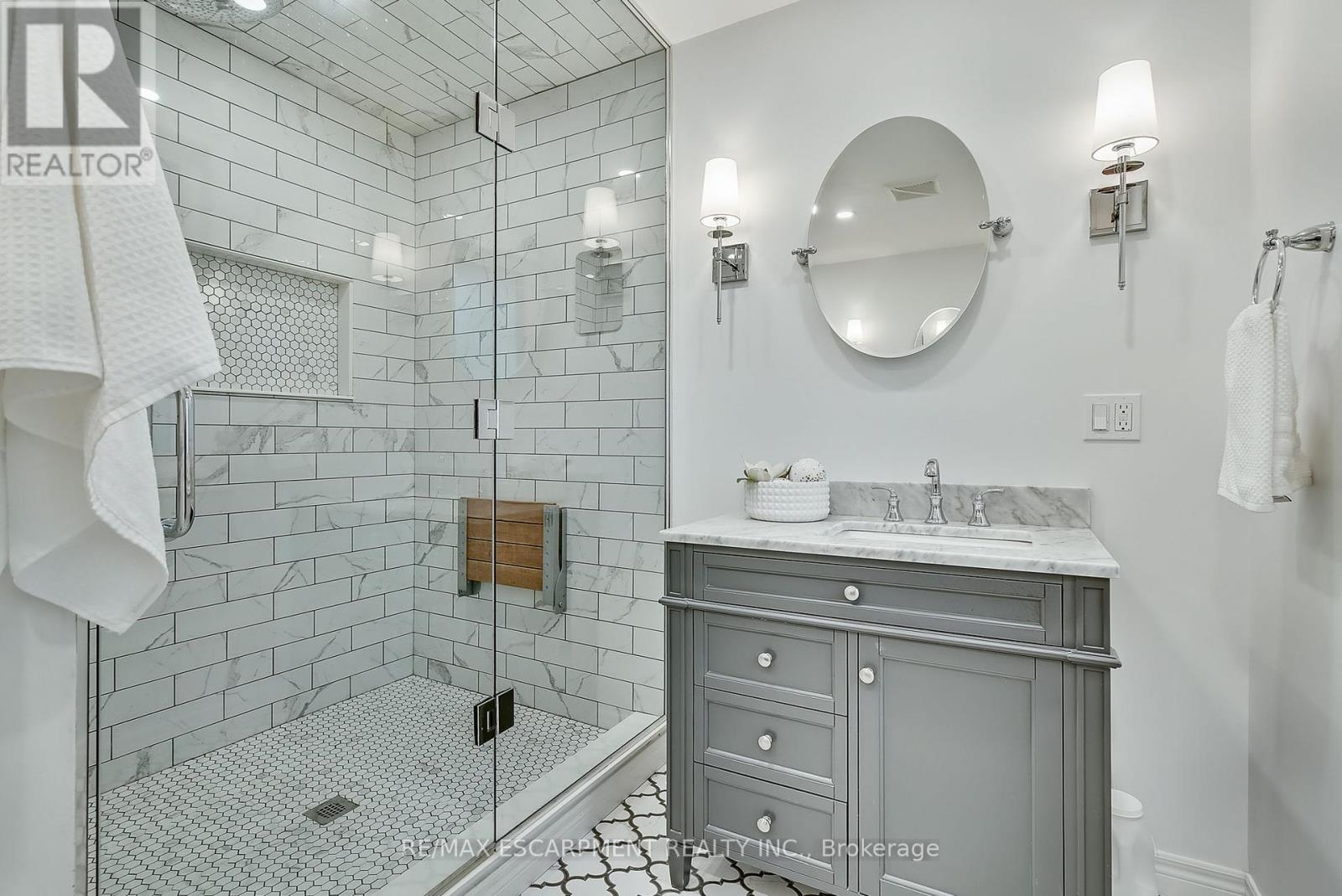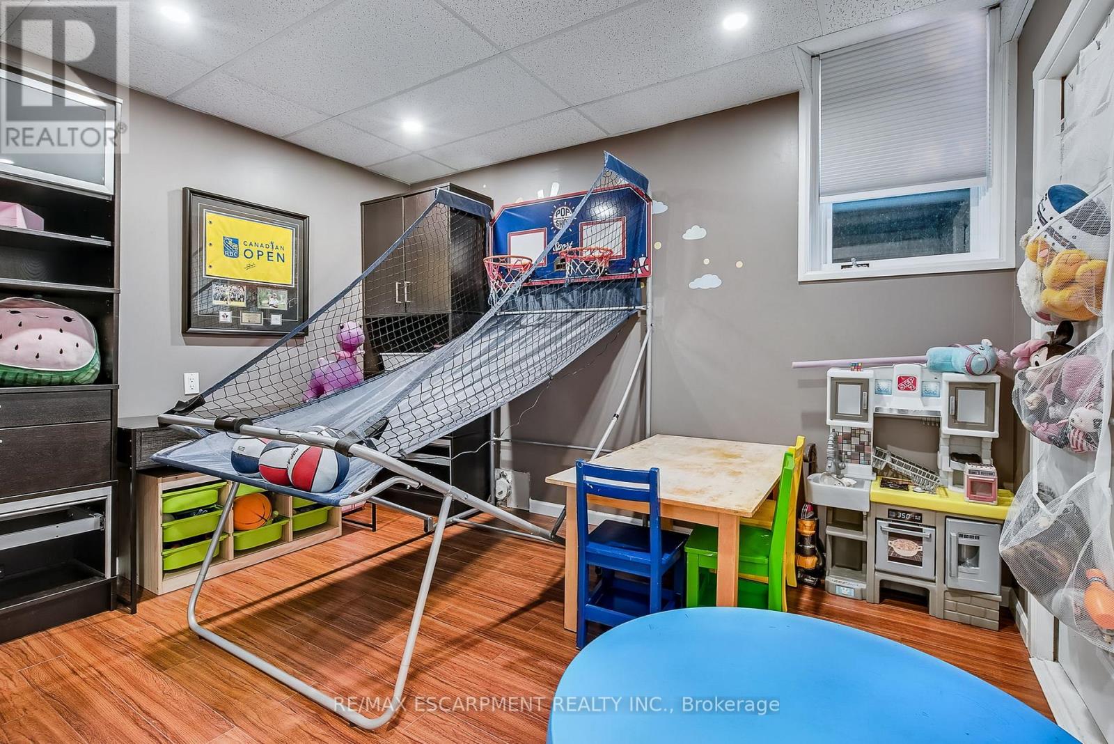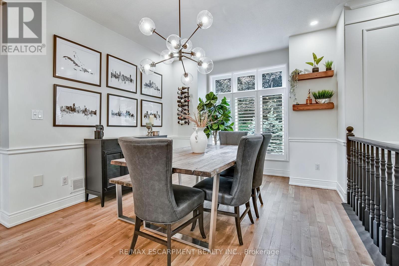 Prestige, Luxury, and Lifestyle in Ancaster's Most Coveted Enclave. Set in one of Ancaster's most sought-after neighbourhoods - just steps from the iconic Hamilton Golf & Country Club - this freshly reimagined residence offers nearly 4,000 sq. ft. of refined living space where timeless design meets everyday comfort.The professionally designed chefs kitchen ('22) is the showpiece of the home: custom full-height shaker cabinetry with glass-lit accents, quartz counters, a charcoal island with brushed bronze fixtures, gas cooktop with pot filler, farmhouse sink, custom range hood, and herringbone style backsplash. Wide-plank hardwood floors and designer lighting complete this entertainer's dream. Main-floor highlights include a bright executive home office, elegant wainscoting, and an inviting flow that balances open concept with defined living spaces. Upstairs, four spacious bedrooms provide plenty of room to grow, while the primary suite feels like a boutique hotel retreat: Moroccan-inspired marble tile, walk-in glass shower, and dual vanities ('20). The fully finished lower level adds flexibility, with a 5th bedroom, full bath, and generous rec space - perfect for guests, in-laws, or an independent teen. Step outdoors and discover a backyard built for memory-making: a sparkling saltwater pool with a brand-new liner ('25), built-in play structure, and a fully fenced yard that offers both privacy and peace of mind. Families will appreciate proximity to top-ranked public and Catholic schools, with extracurricular programs, parks, and trails nearby - making this not just a home, but a foundation for a connected, active lifestyle. This is more than a house. It's an Ancaster lifestyle statement - design-driven, family-forward, and move-in ready in one of the city's most prestigious enclaves. (id:52316)