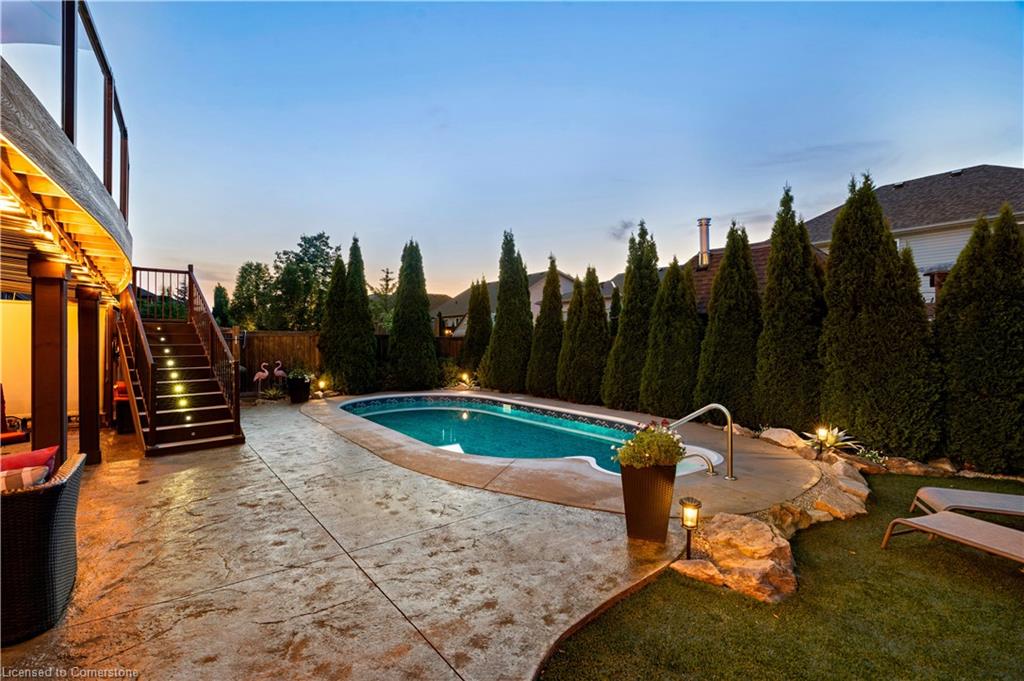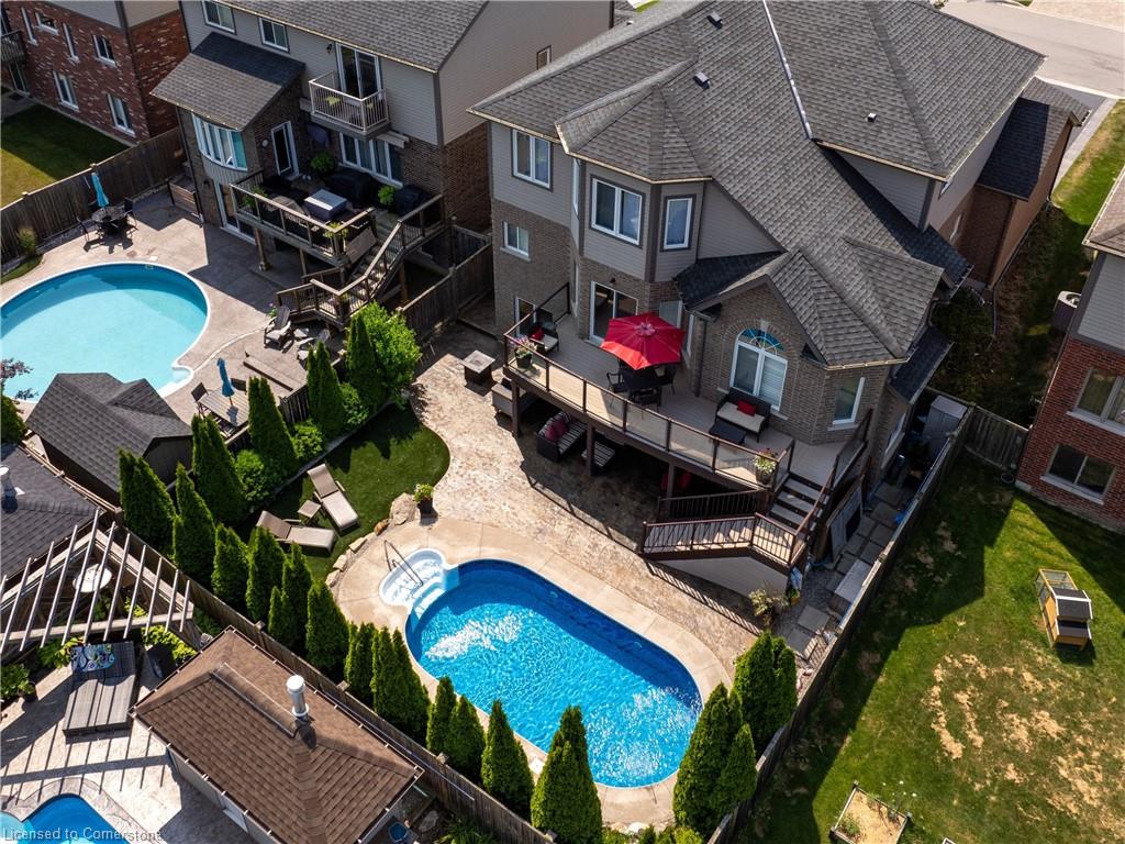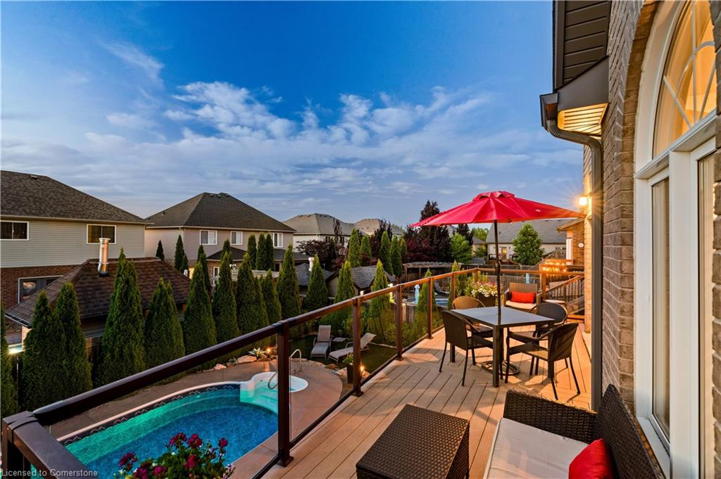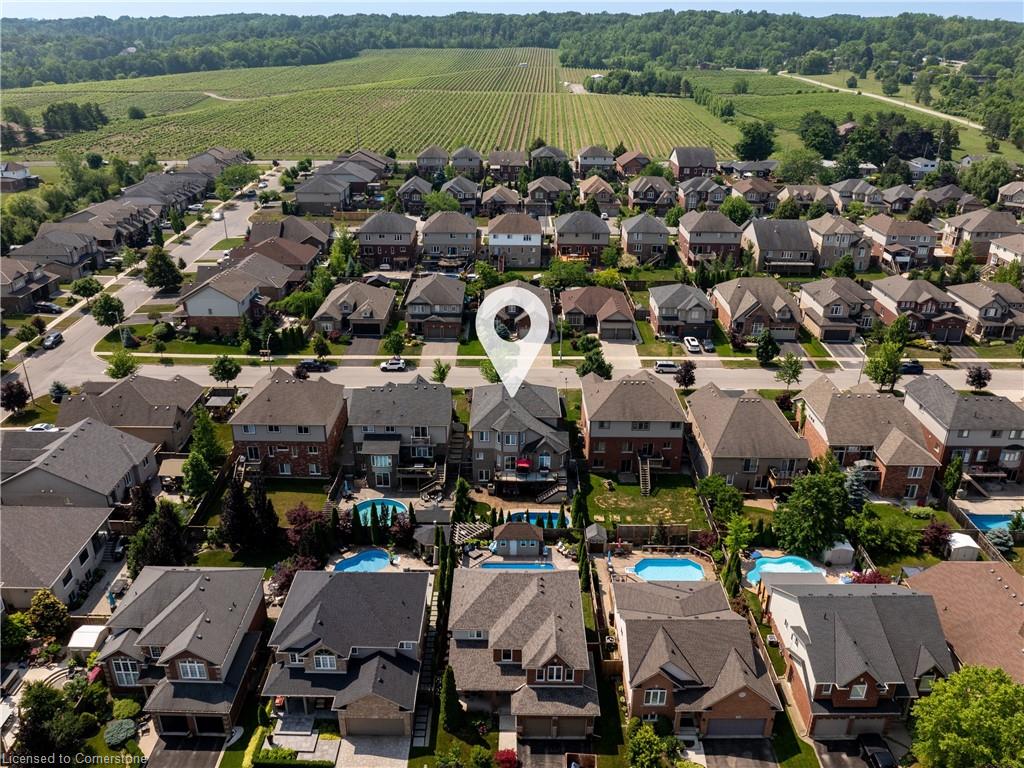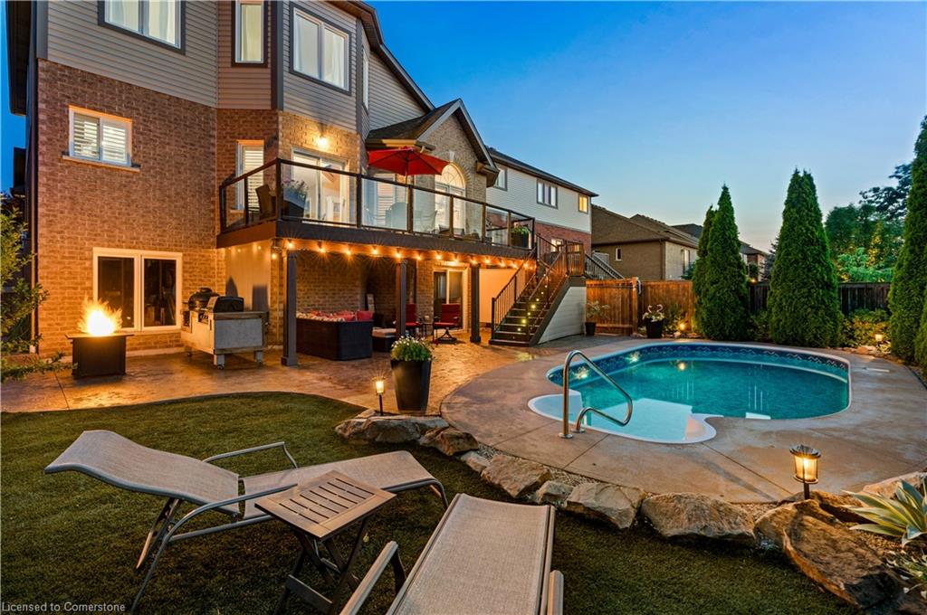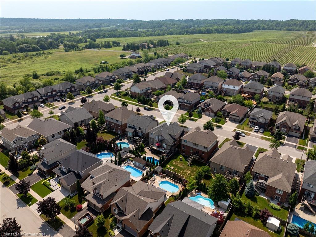 Discover an exceptional lifestyle in this meticulously maintained Executive 2-Storey home w/ inground salt water pool & walk-out basement w/in-law potential, nestled in one of Beamsville's most sought-after enclaves - just steps to Ashby Drive Park, scenic greenspace & trails, and renowned local wineries. From the moment you arrive, impeccable curb appeal and stamped concrete walkways set the tone. Inside, nearly 2900sq ft of refined above-grade living space welcomes you w/ expansive windows, rich oak flooring, & an airy, light-filled layout enhanced by soaring9-foot ceilings on the main level. The custom chefs kitchen is a showstopper, featuring granite countertops, premium cabinetry, and abundant storage flowing seamlessly into a bright dinette with access to the expansive elevated composite deck, ideal for entertaining. A vaulted family room with gas fireplace and second-floor overlook provides an elegant yet cozy retreat. Formal living and dining rooms, a versatile office/den, laundry, and a convenient 2pc bath complete the main floor. Upstairs, the winding staircase leads to four spacious bedrooms, a 4pc bath and a luxurious primary suite with lounge area, walk-in closet & a large 5-piece ensuite. The walk-out basement offers high ceilings, direct backyard access w/ a private patio and endless potential - perfect for an in-law suite or custom retreat! Your private backyard oasis awaits: a 12x24heated saltwater pool w/ dual fountains & ambient lighting, surrounded by mature landscaping, poured concrete, and low-maintenance artificial grass - designed for beauty and ease. Wellness-focused upgrades enhance the home, including a whole-home air purification system, soft water system & alkaline water filter (kitchen) - elevating everyday comfort for the health-conscious homeowner. Ideally located near schools, parks, fine dining & acclaimed vineyards, this stunning property offers luxury living in a breathtaking setting. Beauty on the bench - truly a must see!