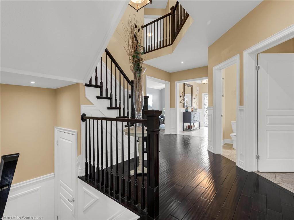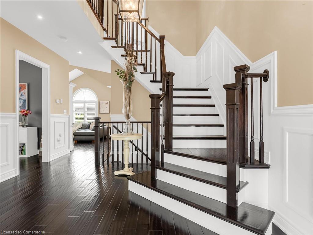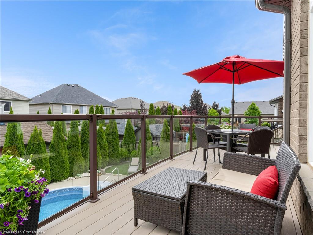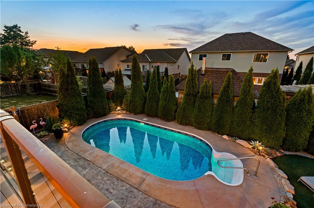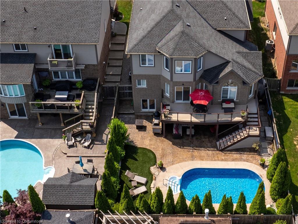 Discover an exceptional lifestyle in this meticulously maintained Executive 2-Storey home w/ inground salt water pool & walk-out basement w/in-law potential, nestled in one of Beamsville's most sought-after enclaves - just steps to Ashby Drive Park, scenic greenspace & trails, and renowned local wineries. From the moment you arrive, impeccable curb appeal and stamped concrete walkways set the tone. Inside, nearly 2900sq ft of refined above-grade living space welcomes you w/ expansive windows, rich oak flooring, & an airy, light-filled layout enhanced by soaring9-foot ceilings on the main level. The custom chefs kitchen is a showstopper, featuring granite countertops, premium cabinetry, and abundant storage flowing seamlessly into a bright dinette with access to the expansive elevated composite deck, ideal for entertaining. A vaulted family room with gas fireplace and second-floor overlook provides an elegant yet cozy retreat. Formal living and dining rooms, a versatile office/den, laundry, and a convenient 2pc bath complete the main floor. Upstairs, the winding staircase leads to four spacious bedrooms, a 4pc bath and a luxurious primary suite with lounge area, walk-in closet & a large 5-piece ensuite. The walk-out basement offers high ceilings, direct backyard access w/ a private patio and endless potential - perfect for an in-law suite or custom retreat! Your private backyard oasis awaits: a 12x24heated saltwater pool w/ dual fountains & ambient lighting, surrounded by mature landscaping, poured concrete, and low-maintenance artificial grass - designed for beauty and ease. Wellness-focused upgrades enhance the home, including a whole-home air purification system, soft water system & alkaline water filter (kitchen) - elevating everyday comfort for the health-conscious homeowner. Ideally located near schools, parks, fine dining & acclaimed vineyards, this stunning property offers luxury living in a breathtaking setting. Beauty on the bench - truly a must see!