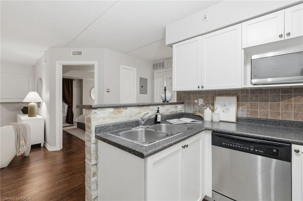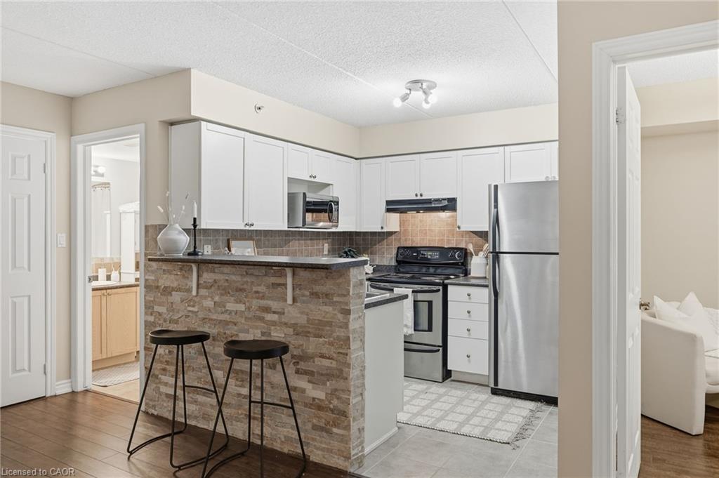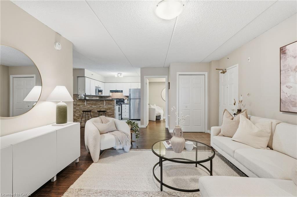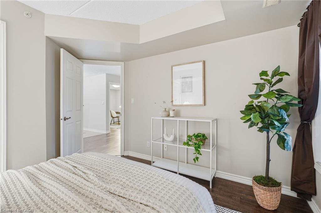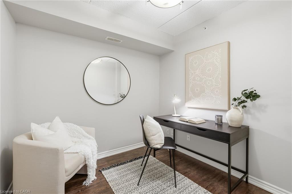 Stylish, low-maintenance living in the heart of Burlington! This modern 1 bedroom plus den, 1 bathroom unit is the perfect fit for young professionals looking to own their first home or retirees seeking comfort, convenience, and lifestyle. Located just minutes from the QEW and Hwy 407, commuting is a breeze while being steps to restaurants, cafes, and all the shopping you need means keeping your time spent in the car to a minimum. Bright kitchen cabinetry and sleek laminate flooring throughout the main living space make this space fresh and move in ready. The spacious den provides an ideal work from home space or hobby room. Other conveniences include in-suite laundry, 1 underground parking space, and 1 locker for extra storage. Plus an additional bonus storage room can be found on the balcony for added convenience. Plenty of visitor parking means friends and family can drop by anytime. Residents also enjoy access to a fitness centre and party room, ideal for socializing or staying active without ever leaving home. Whether you’re working downtown, hybrid, or remote, this is a smart move in a fantastic location! Don't miss this opportunity to simplify your life without sacrificing style, comfort, or location!