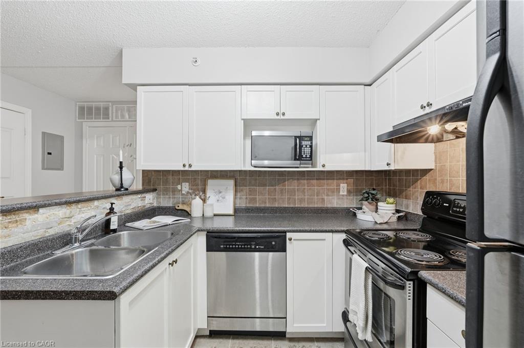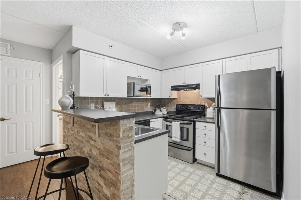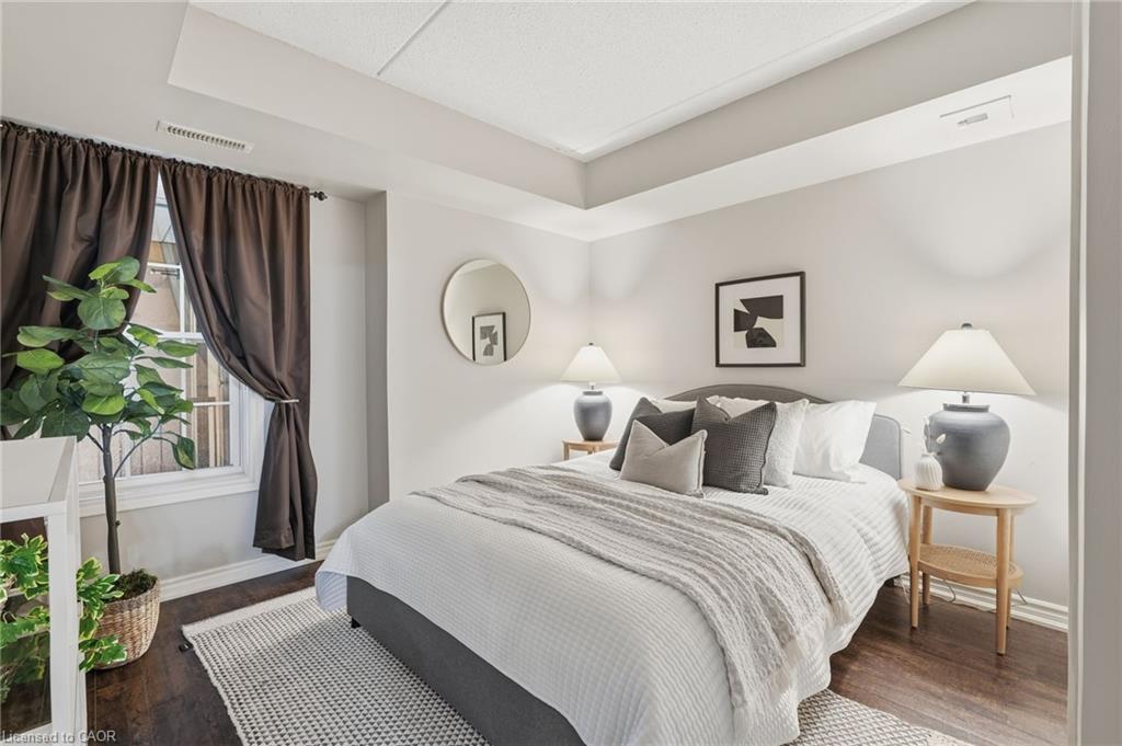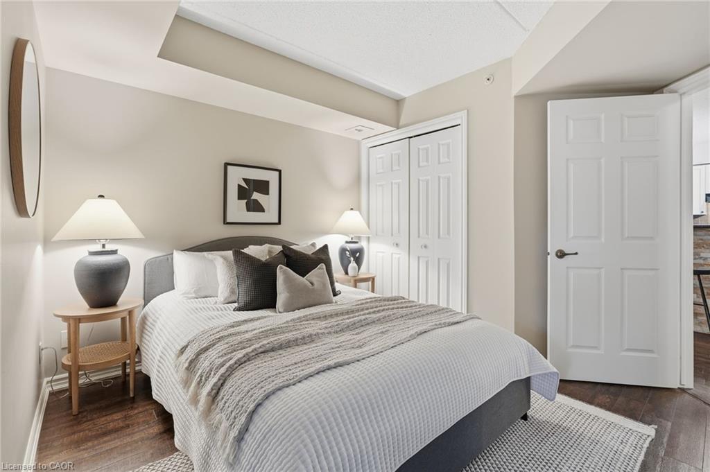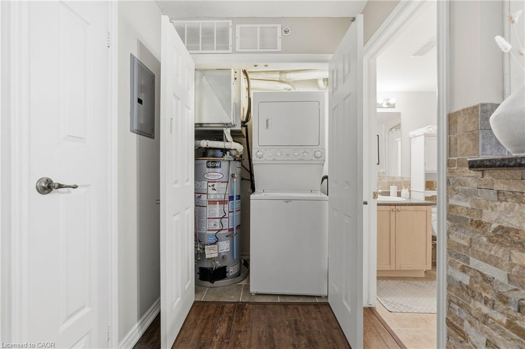 Stylish, low-maintenance living in the heart of Burlington! This modern 1 bedroom plus den, 1 bathroom unit is the perfect fit for young professionals looking to own their first home or retirees seeking comfort, convenience, and lifestyle. Located just minutes from the QEW and Hwy 407, commuting is a breeze while being steps to restaurants, cafes, and all the shopping you need means keeping your time spent in the car to a minimum. Bright kitchen cabinetry and sleek laminate flooring throughout the main living space make this space fresh and move in ready. The spacious den provides an ideal work from home space or hobby room. Other conveniences include in-suite laundry, 1 underground parking space, and 1 locker for extra storage. Plus an additional bonus storage room can be found on the balcony for added convenience. Plenty of visitor parking means friends and family can drop by anytime. Residents also enjoy access to a fitness centre and party room, ideal for socializing or staying active without ever leaving home. Whether you’re working downtown, hybrid, or remote, this is a smart move in a fantastic location! Don't miss this opportunity to simplify your life without sacrificing style, comfort, or location!