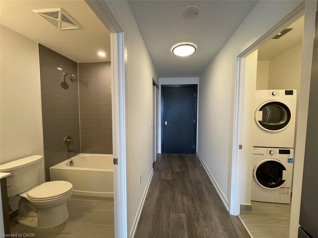 Let the sunshine in! This bright and well designed studio style unit is on the 18th floor facing west. Enjoy relaxing after work on your own private balcony and watching the sunsets! The studio floor plan includes a bedroom with corner glass doors, 1 bathroom, private laundry, an open concept living/kitchen/dining layout. The kitchen features quartz countertops, tiled backsplash, and stainless steel appliances. Located in the Midtown area of Kitchener, the Station Park towers are include amenities not seen anywhere else in the Region. Amenities include: Two-lane Bowling Alley with lounge, Premier Lounge Area with Bar, Pool Table and Foosball, Swim Spa & Hot Tub, Fitness Room with Gym Equipment, Yoga/Pilates Studio & Peloton Studio, Dog Washing Station, Landscaped Outdoor Terrace with Cabana Seating and BBQ’s, 24/7 Concierge Desk for Resident Support and Security, Private bookable Dining Room with Kitchen Appliances. Located along the LRT line, and in walking distance to an LRT Station, the VIA Rail and GO station, downtown Kitchener businesses, Google offices, Midtown Hospital, and so much more! Book your showing today!