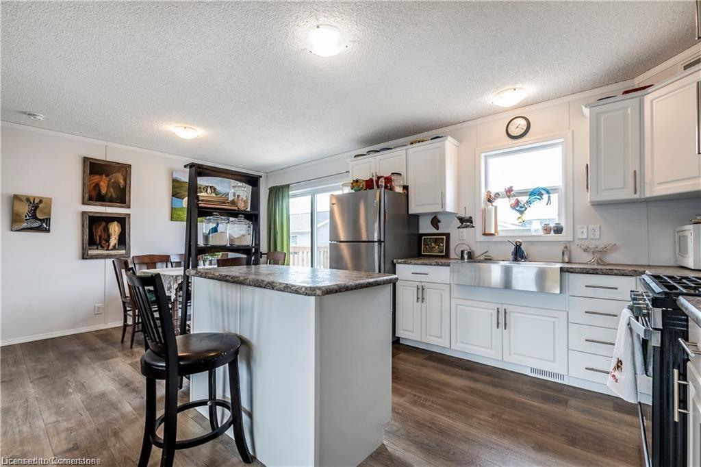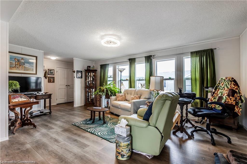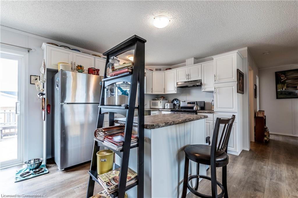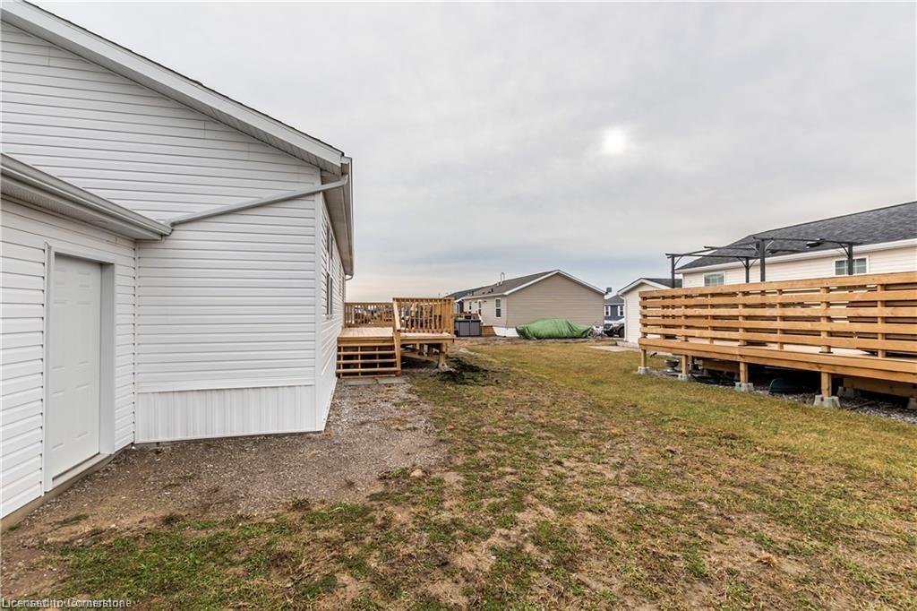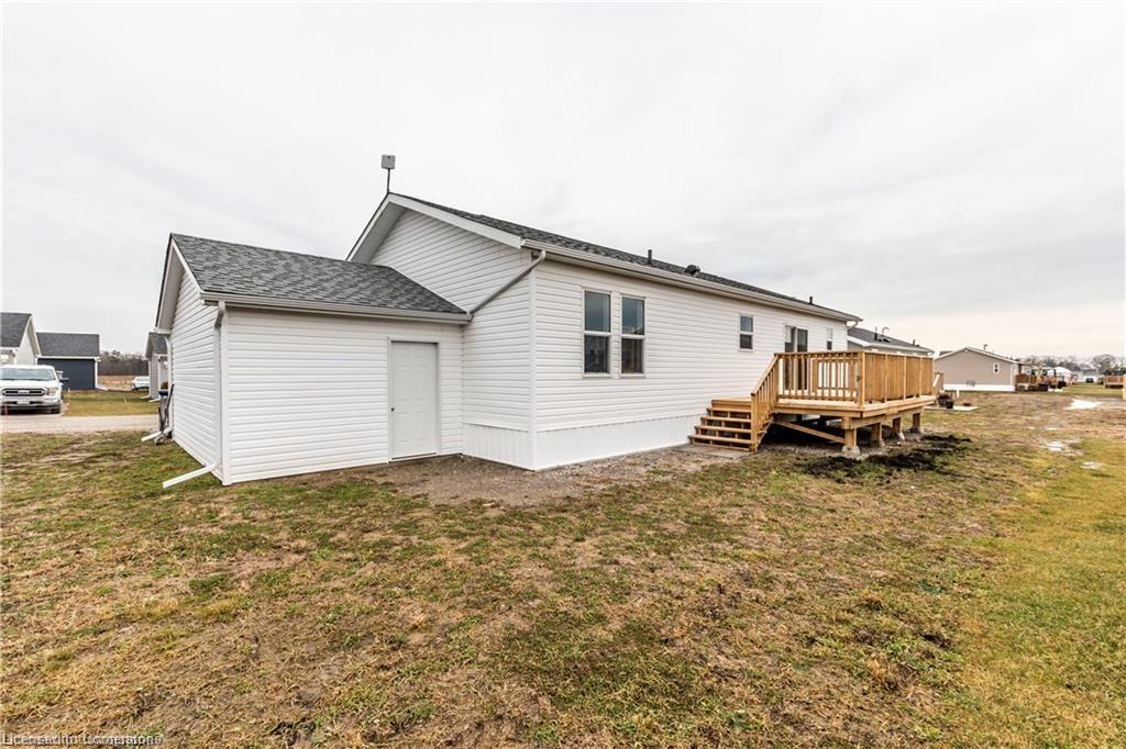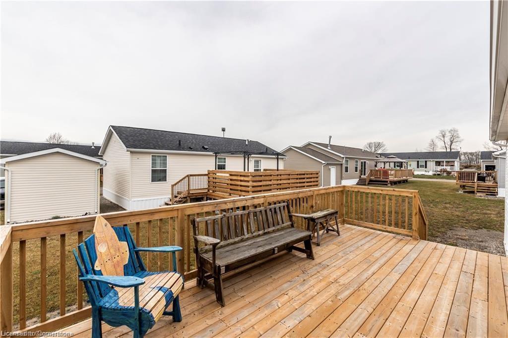 Welcome to this charming 1280 sq ft bungalow, located in a sought-after waterfront community on the shores of Lake Erie! This beautifully styled home offers one-floor living at its best, with a bright, open floor plan perfect for a relaxed & carefree lifestyle. Inside, you'll find 2 spacious bedrooms, including a primary suite with a large walk-in closet and private 3-piece ensuite. The inviting living room provides ample space for relaxing, entertaining, or setting up a home workspace. The trendy eat-in kitchen features a stainless-steel farmhouse sink, modern appliances, & plenty of storage. Window coverings & all appliances are included for your convenience. This vibrant community offers a host of amenities, including an outdoor pool, clubhouse (not open yet), dog park, walking trails, social events, & a private marina with boat slips available for an additional fee. Plus, all exterior maintenance—such as snow shoveling and grass cutting—is handled for you, making it the perfect worry-free option for snowbirds. Leave your home with peace of mind & enjoy winters without maintenance concerns. Monthly fees include a $420 land lease, $203+HST maintenance fee, and $194 property taxes. Experience a serene, active lifestyle surrounded by nature in this welcoming waterfront community!