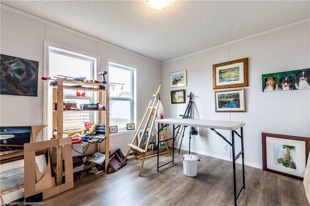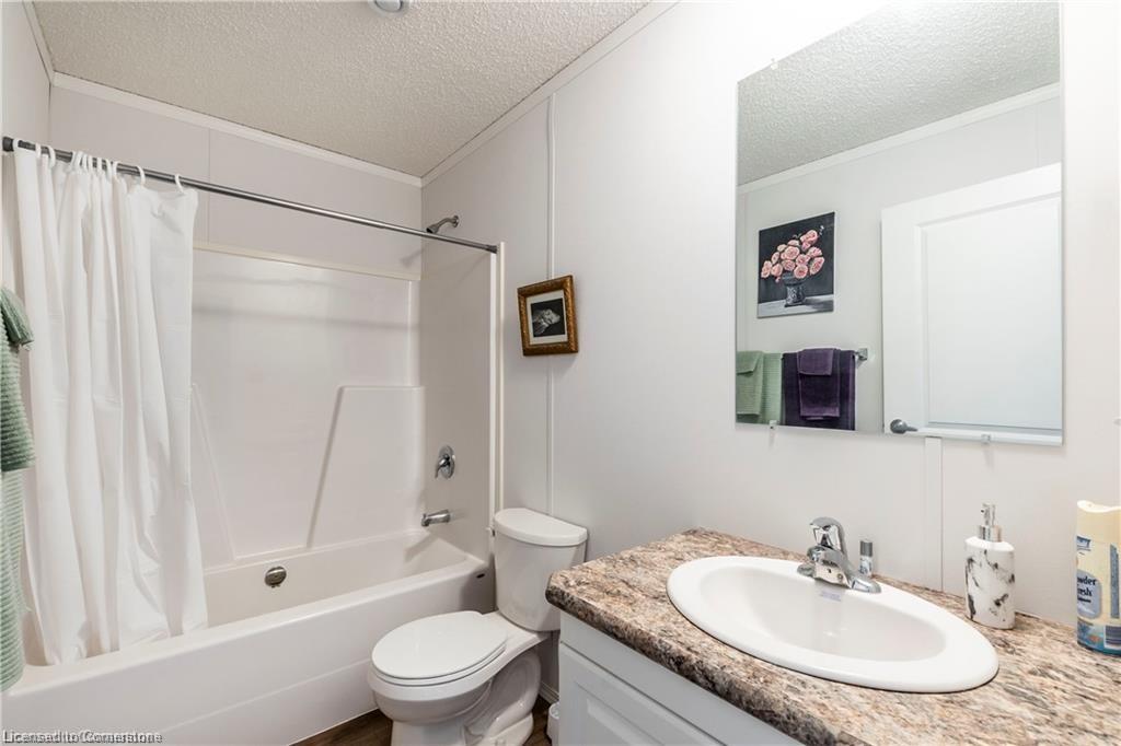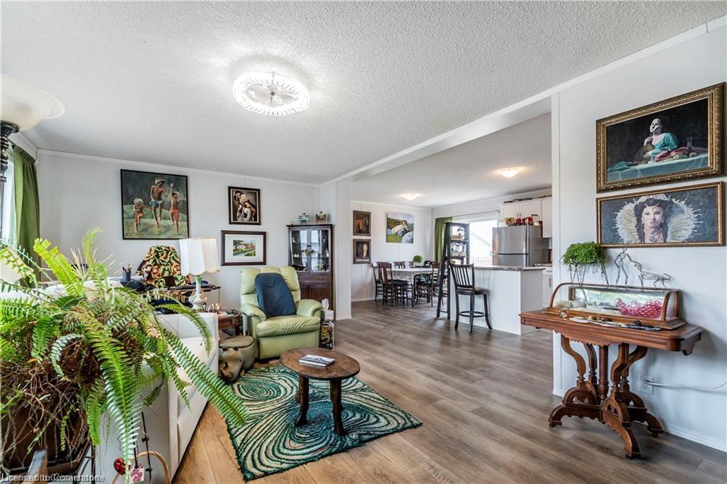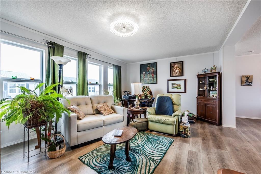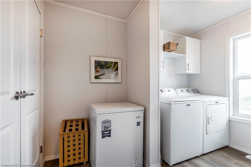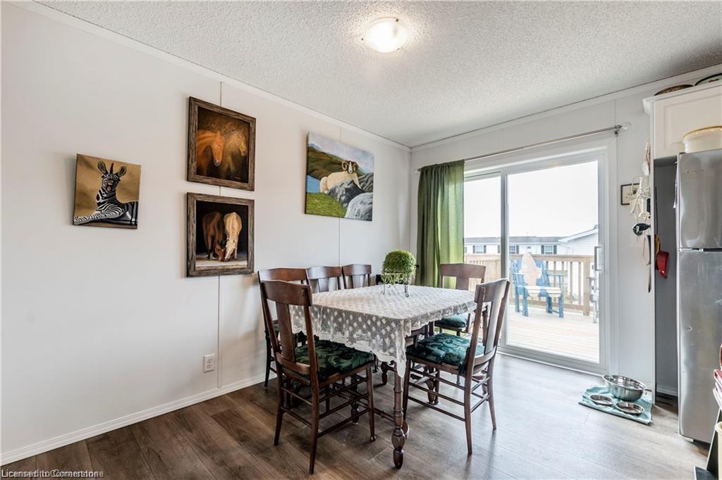 Welcome to this charming 1280 sq ft bungalow, located in a sought-after waterfront community on the shores of Lake Erie! This beautifully styled home offers one-floor living at its best, with a bright, open floor plan perfect for a relaxed & carefree lifestyle. Inside, you'll find 2 spacious bedrooms, including a primary suite with a large walk-in closet and private 3-piece ensuite. The inviting living room provides ample space for relaxing, entertaining, or setting up a home workspace. The trendy eat-in kitchen features a stainless-steel farmhouse sink, modern appliances, & plenty of storage. Window coverings & all appliances are included for your convenience. This vibrant community offers a host of amenities, including an outdoor pool, clubhouse (not open yet), dog park, walking trails, social events, & a private marina with boat slips available for an additional fee. Plus, all exterior maintenance—such as snow shoveling and grass cutting—is handled for you, making it the perfect worry-free option for snowbirds. Leave your home with peace of mind & enjoy winters without maintenance concerns. Monthly fees include a $420 land lease, $203+HST maintenance fee, and $194 property taxes. Experience a serene, active lifestyle surrounded by nature in this welcoming waterfront community!