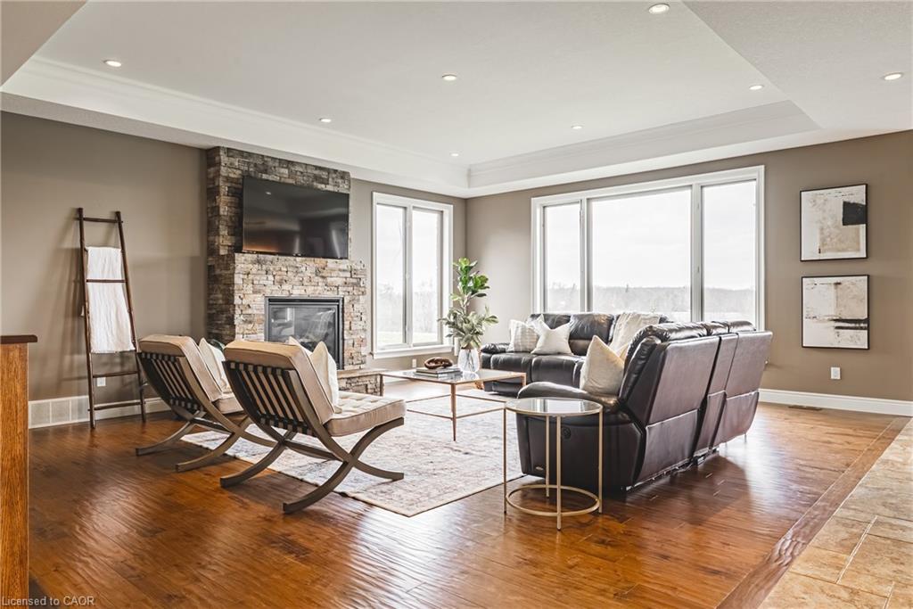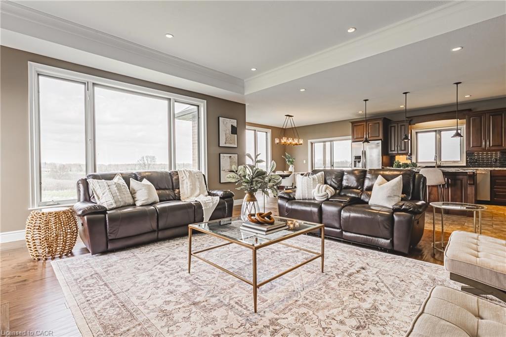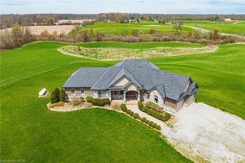 Welcome to country living at its finest! Nestled on 16 private acres, this stunning custom bungalow offers over 4,000 sq. ft. of thoughtfully designed living space. Featuring 5 spacious bedrooms and 4 beautifully appointed bathrooms, this home is perfect for families and entertainers alike. Enjoy a seamless blend of luxury and comfort with a gourmet kitchen, a fully equipped wet bar, and expansive living areas. Unwind in the hot tub, stay active in the dedicated exercise room, and host effortlessly in this inviting rural retreat. A rare opportunity to own a true countryside oasis with room to roam and space to grow. Property also features separate barn/shop and garage for your business or a potential income opportunity