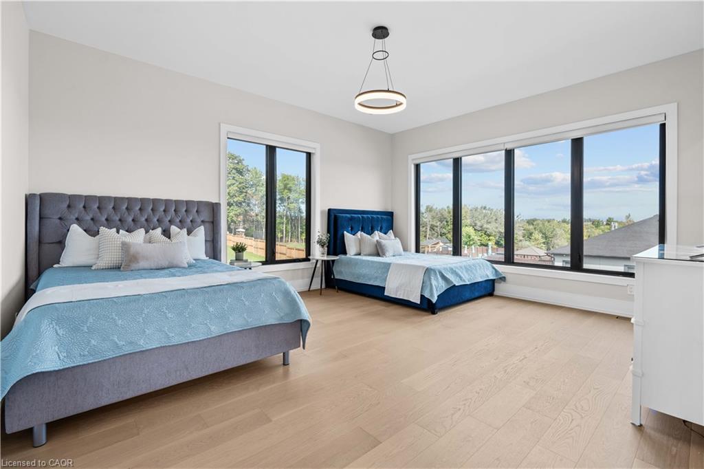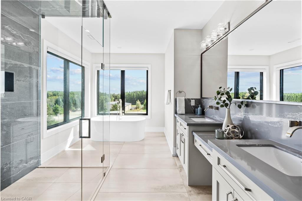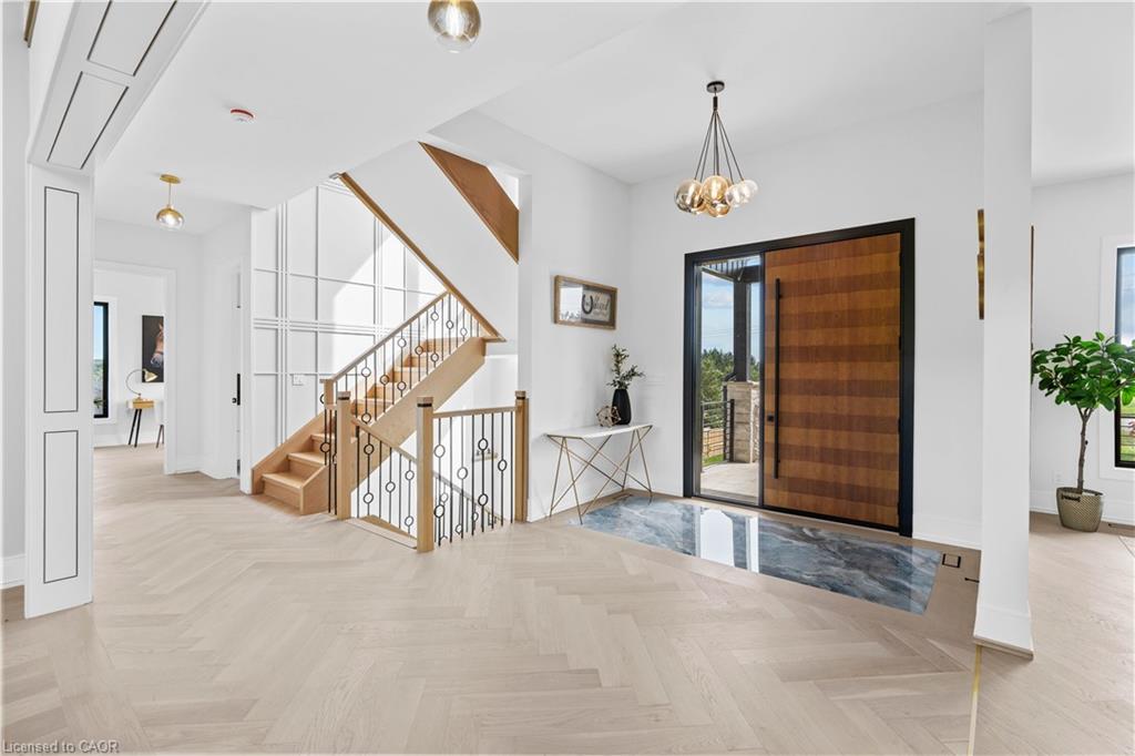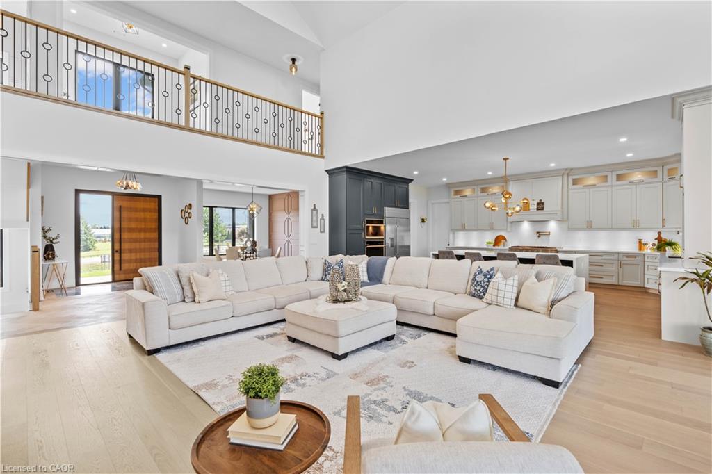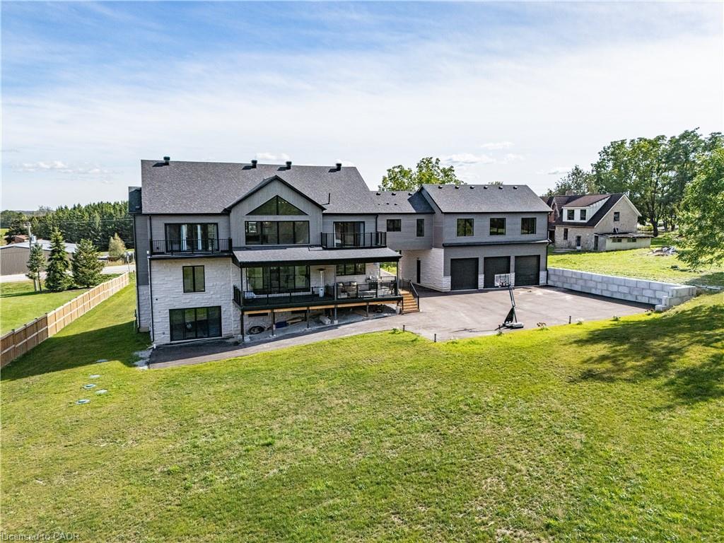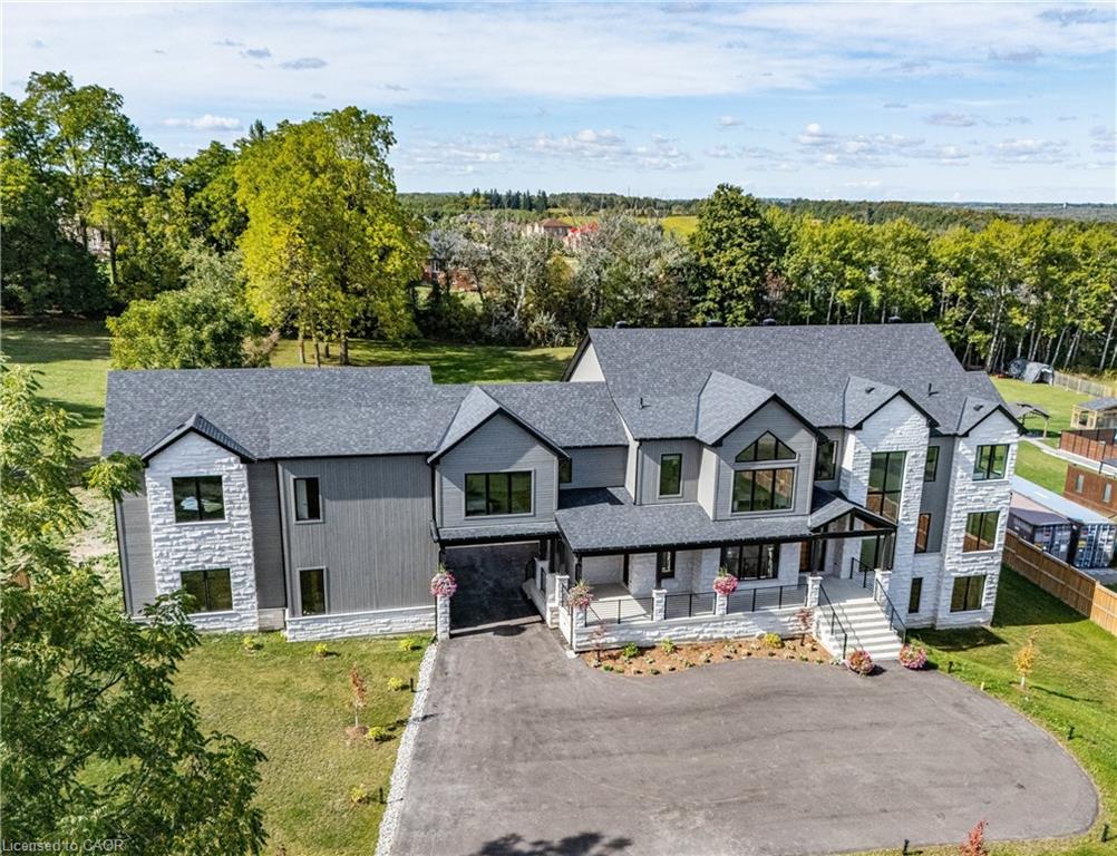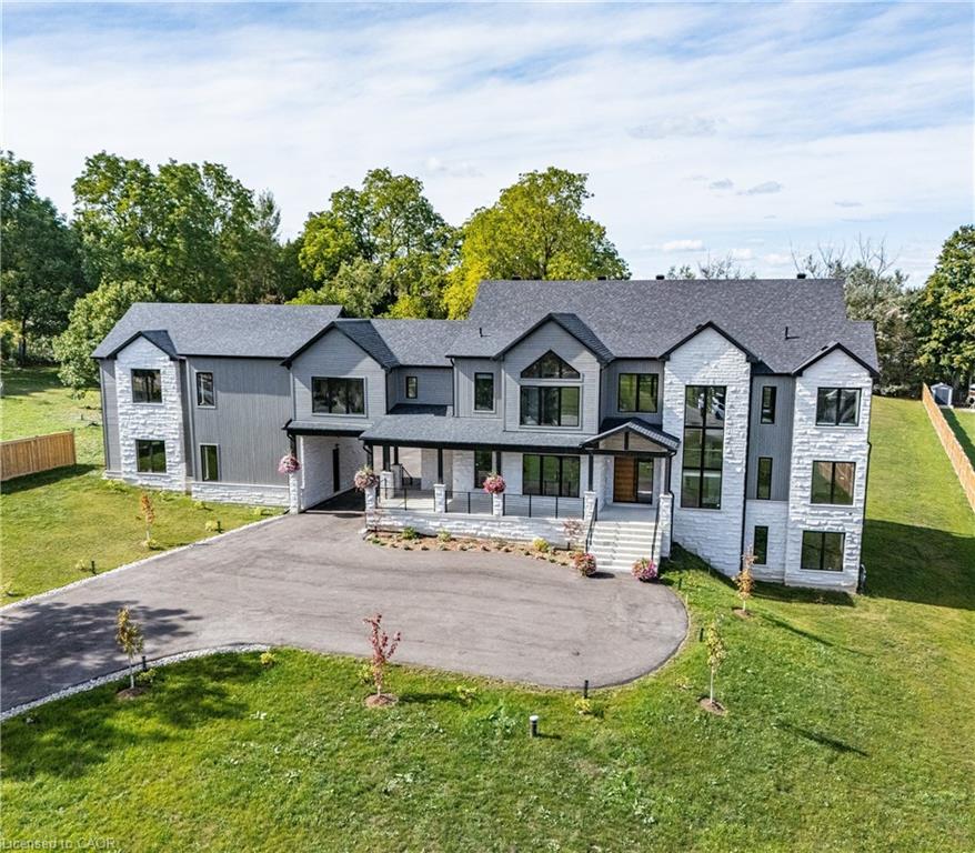 Exquisite Newly Built Luxury Country Estate! This custom estate, originally crafted by the builder for their own family, offers over 5,300 sq. ft. of sophisticated living space with 5 bedrooms and 6 bathrooms. The open-concept main floor is designed for entertaining, featuring high-end built-in appliances, a walk-in pantry, oversized island, soaring cathedral ceilings, and floor-to-ceiling windows. The main level also includes a luxurious primary suite with spa-inspired ensuite, a mudroom with sink and ample storage, an elevator rough-in, a spacious covered deck, and so much more. Upstairs, you’ll find four generously sized bedrooms—each with a private ensuite—plus a cozy sitting area and multiple balconies. The lower level offers over 2,000 sq. ft. of walk-out living space, ideal for future customization, whether for additional family space, a home gym, or an in-law suite. The 1,100 sq. ft. second-level garage loft also provides endless potential to tailor to your lifestyle. Set on 1.5 beautifully landscaped acres, the property includes a 3-car garage, parking for 15+ vehicles, and the rare combination of peaceful country living with easy access to city amenities. This one-of-a-kind estate truly has it all—space, luxury, privacy, and convenience.