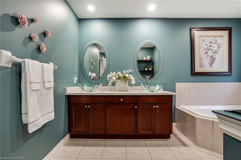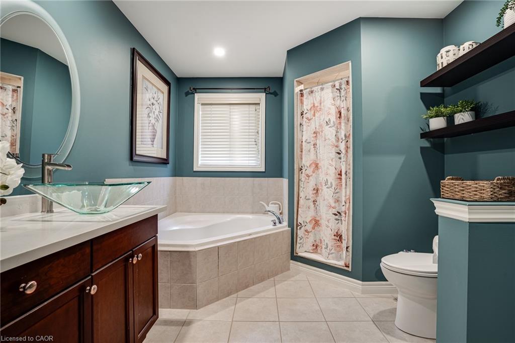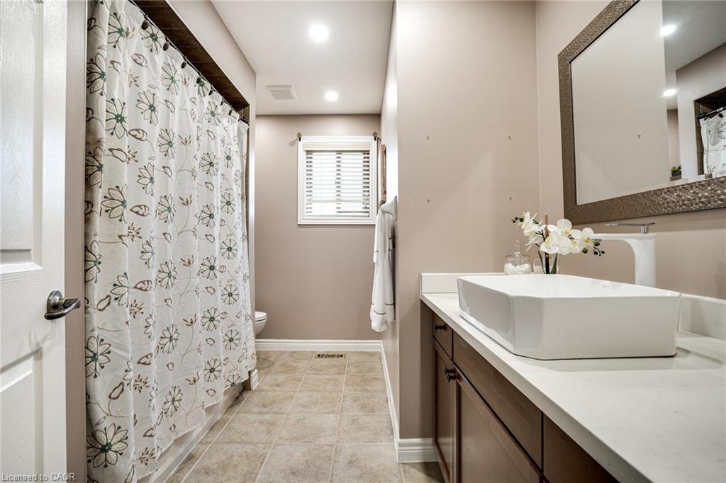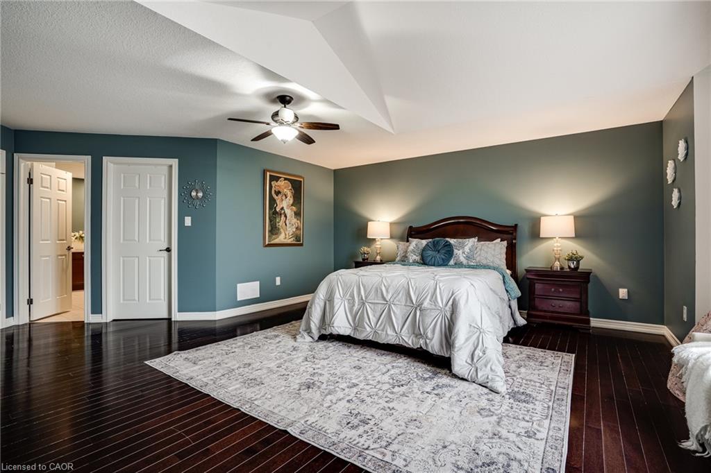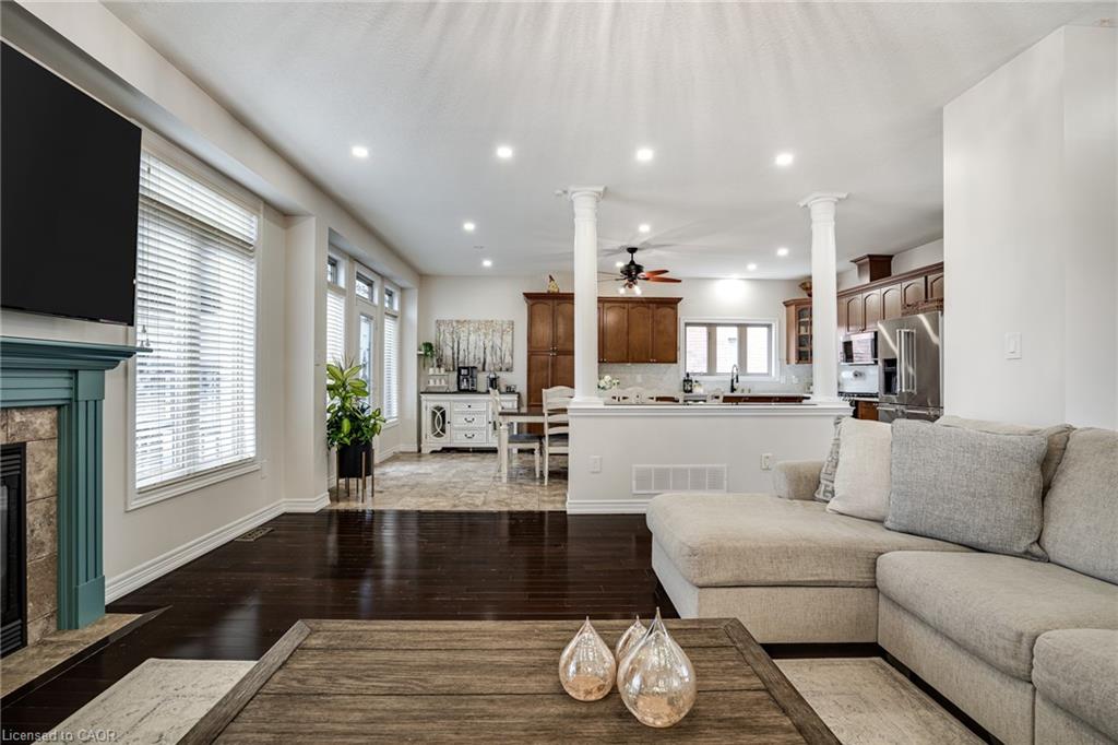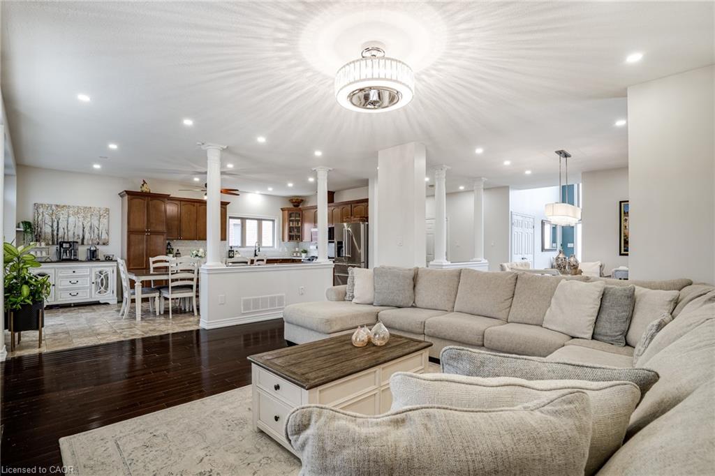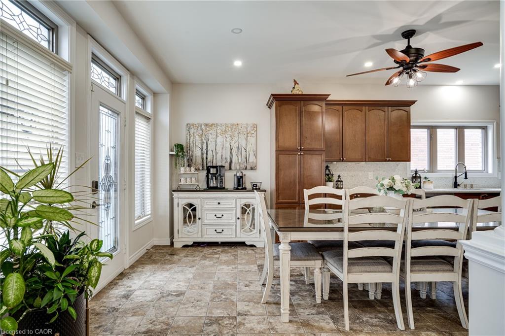 Stunning Ancaster Meadowlands home on a rare double wide lot with no rear neighbours! Discover the perfect blend of space, privacy, and style in this all brick 4+1 bedroom, 3.5 bathroom home offering over 3,000 sq ft of finished living space. Situated on an extra wide lot, this property delivers the privacy and outdoor space families are searching for. The open concept main floor is designed for entertaining, featuring a gourmet eat in kitchen with stainless steel appliances, granite countertops, and direct sightlines into the oversized family room with cozy gas fireplace. A separate dining room, main floor mudroom/laundry, hardwood floors, pot lights, and inside access to the double car garage with epoxy flooring complete the level. Upstairs, unwind in the luxurious master retreat with walk-in closet and spa-like 5 piece ensuite bathroom. Three additional spacious bedrooms and a modern 4 piece bathroom provide plenty of room for the whole family. The fully finished basement offers incredible versatility with a large rec room, an extra bedroom, full bathroom, pantry, and ample storage. Step outside to your private backyard oasis—a generous double wide yard with no rear neighbours, a stylish composite deck (2019), stamped concrete patios, and a large double gazebo—perfect for relaxing or hosting friends. With a new roof (2021), upgraded attic insulation, and central vac, this home is move-in ready. Ideally located near schools, parks, shopping, and with excellent highway and transit access, this is a rare opportunity in the heart of Meadowlands.