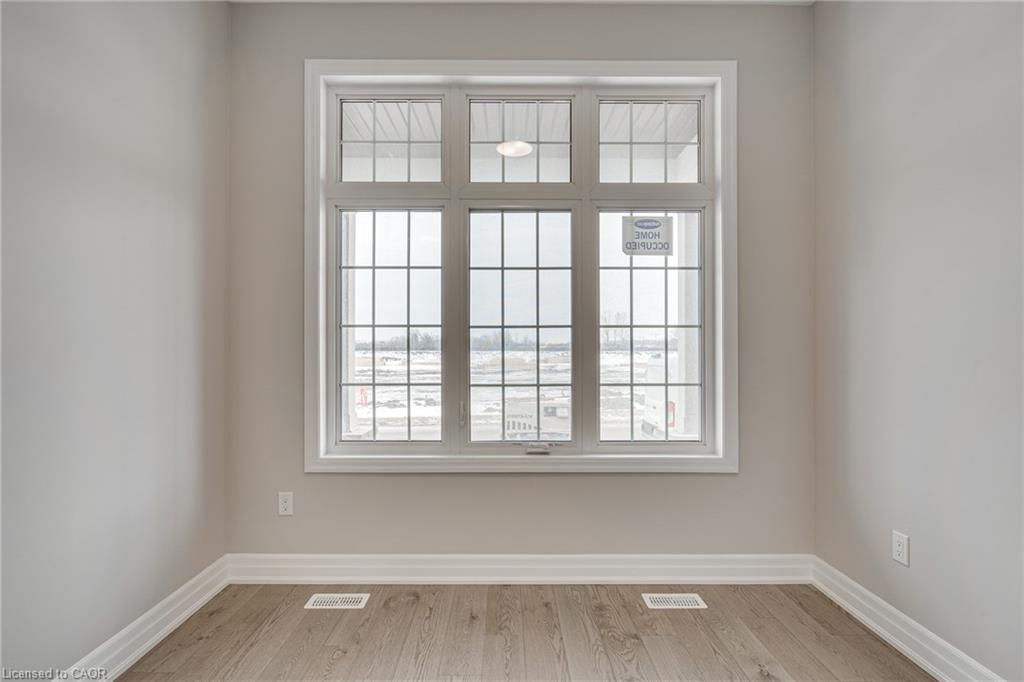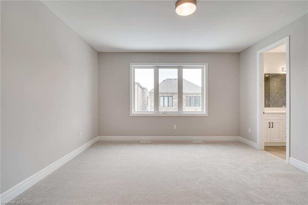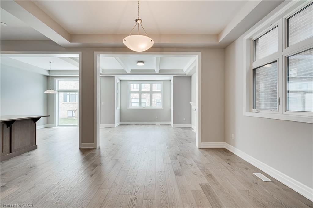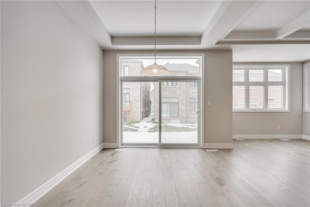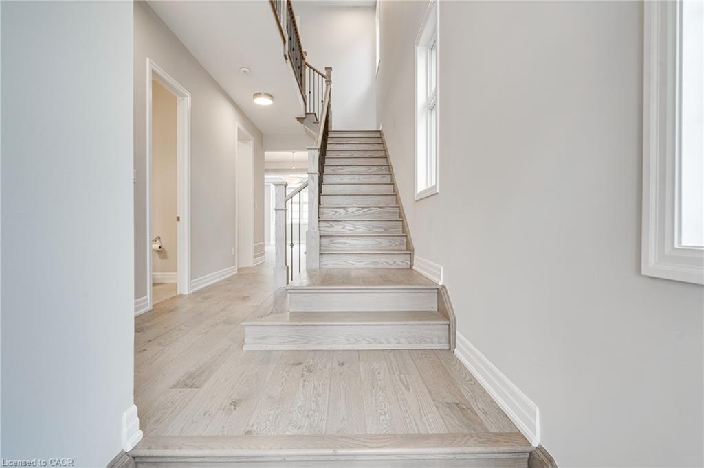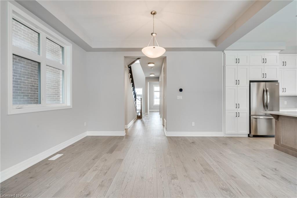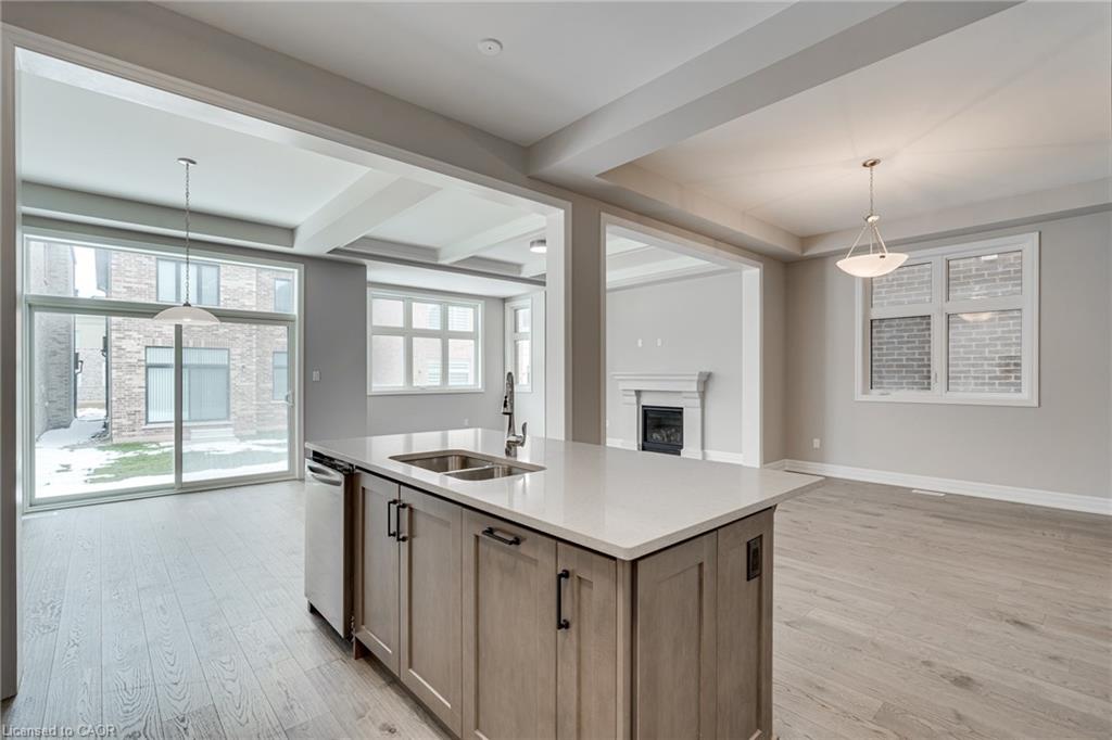 Stunning, newer Mattamy home in North Oakville, Joshua Meadows area. Nestled in a desirable neighbourhood with excellent access to both Hwy 403 & 407 for easy commuting. This modern 4 bedroom, 2.5 bathroom home offers a spacious layout with 10’ ceilings on the main floor. Featuring an open concept kitchen, a bright living room with a gas fireplace, and a large dining area, ideal for entertaining. Conveniently located main floor office directly off the front entrance. The primary bedroom is a true retreat, complete with a luxurious 5-piece ensuite and a walk-in closet. All additional bedrooms also feature walk-in closets, plus a convenient second floor laundry room. Beautiful upgrades throughout include hardwood flooring, hardwood & iron staircase, quartz countertops, and pot lights. The chef’s kitchen is fitted with high-end built-in stainless steel appliances (fridge, stove, dishwasher), along with a washer and dryer. Available for occupancy November 1, 2025.