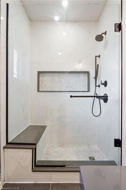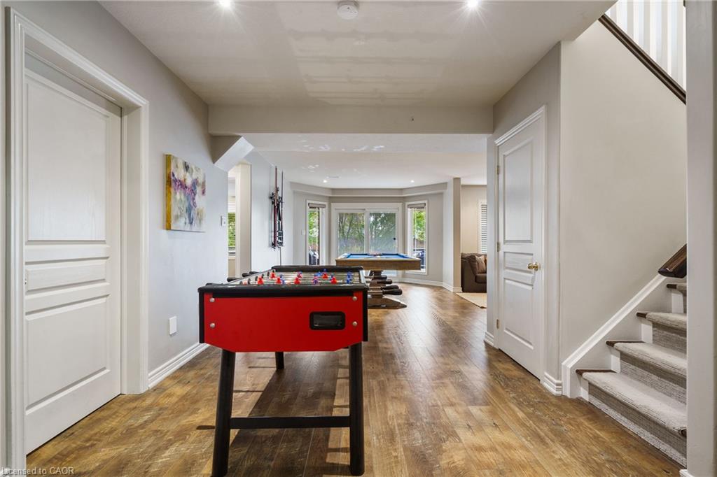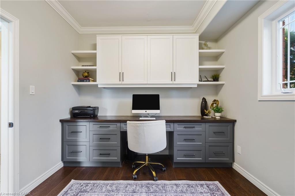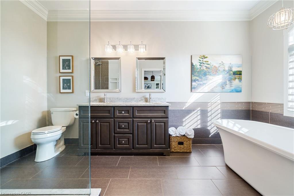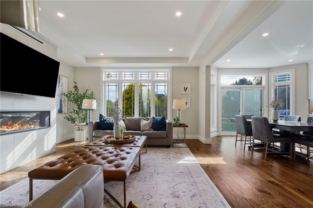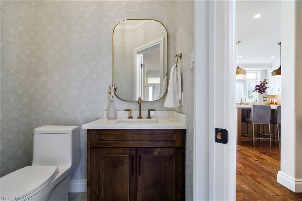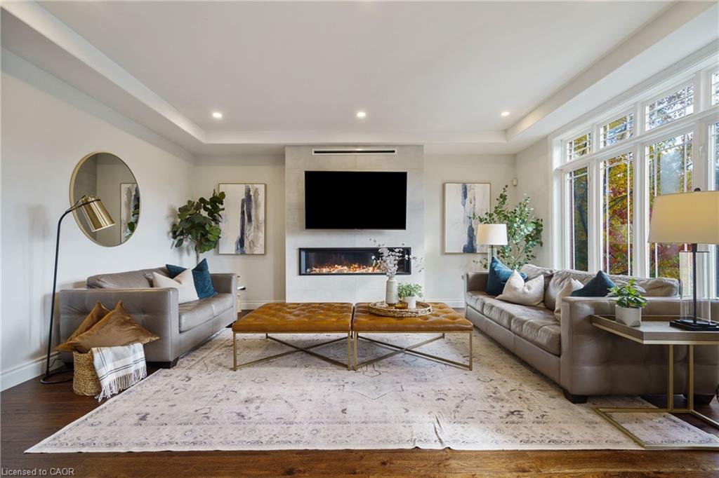Tucked away in a quiet enclave of executive homes, this beautifully renovated 4 + 2 bedroom home offers over 4,000 sq ft of finished living space with excellent highway access and exceptional curb appeal. The main floor was fully renovated in 2023 and showcases hardwood flooring throughout, a stunning custom kitchen with an oversized island with seating, high end stainless steel appliances, quartz counters, a dedicated coffee/bar station, dining area and a convenient servery leading to the formal dining room. A bright living room with a new linear gas fireplace and abundant natural light creates an inviting open concept space. The main level also features a custom home office with built-ins, a mudroom with inside entry from the 2-car garage, and a walk out to the composite deck overlooking the backyard + a 2 pc powder room. Upstairs, the impressive primary suite includes a spacious walk-in closet, sitting area, and luxurious 5 pc ensuite with double sinks, soaker tub & glass enclosed shower. All bedrooms are generously sized, most with walk-in closets, and all bathrooms have been fully renovated with modern finishes. Bedroom level laundry completes this floor. The fully finished walk out basement extends the living space with a large recreation area, two additional bedrooms, and a newly updated 3 pc bathroom. Step outside to a private, fully fenced, professionally landscaped backyard featuring an inground saltwater pool and hot tub — the perfect retreat for entertaining or relaxing. Front irrigation system, large transom windows, pot lights, high ceilings on both levels, cold cellar, plenty of storage and newer sliding doors & front door. An exceptional home offering luxury, function, and style in one of Ancaster’s most desirable pockets.