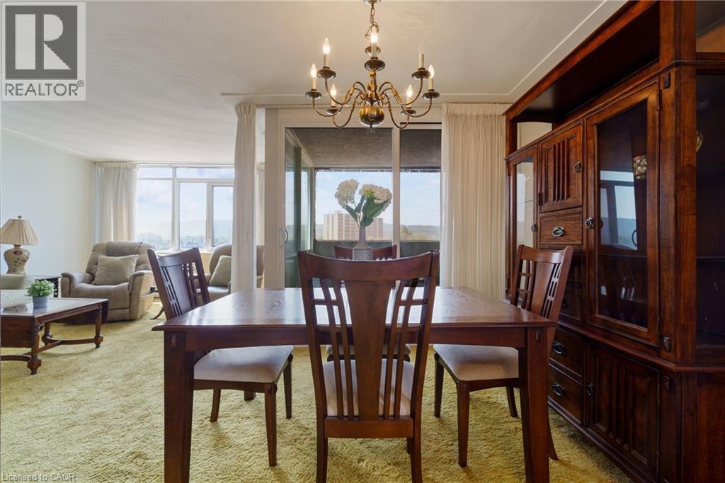 Spacious 3 bedroom, 2 bathroom condo with scenic views in sought after Red Hill neighbourhood. This bright and spacious unit offers just over 1,300 square feet of comfortable living in one of Hamilton’s most desirable buildings. Enjoy an open concept living and dining area, perfect for entertaining, and an eat-in kitchen with a separate dining nook. The primary bedroom features a walk-in closet and a private 4-piece ensuite. Convenient in-suite laundry, private balcony with beautiful views, a large storage locker & secure underground parking. Take in beautiful views from your high floor unit, surrounded by trees, trails, and nature. Amenities are top-notch, including an indoor salt water pool, sauna, exercise room, library, workshop, games room, pickleball/tennis courts, party room, and a car wash/vacuum station. Located in the Red Hill neighbourhood with excellent highway access, this well managed building is ideal for downsizers, families, or anyone seeking maintenance-free living with resort style perks. (id:52316)