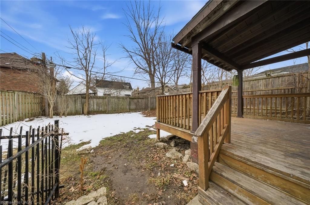 Fantastic opportunity in the heart of Brantford! Commercially zoned property offering excellent flexibility for business or residential use, ideal for professional offices, boutique retail, or live/work potential. This well maintained property features 3 spacious rooms/offices and 1 full 4 piece bathroom, along with a bright main area that can function as reception or collaborative workspace. A separate dining room provides the perfect setup for a private office or meeting room. The updated kitchen with walkout to a private, fully fenced backyard and 12' x 12' covered deck offers a great staff break area or outdoor space for clients. The unfinished basement includes laundry and ample storage, ideal for inventory or workspace needs. Additional features include a private driveway with parking for 3 vehicles and fresh paint throughout, creating a clean, move in ready environment. Situated in a highly walkable location near Brantford's Heritage District, shopping, and with quick access to Highway 403, making it convenient for both clients and staff. Ample street parking directly in front. Fridge to be delivered prior to occupancy.