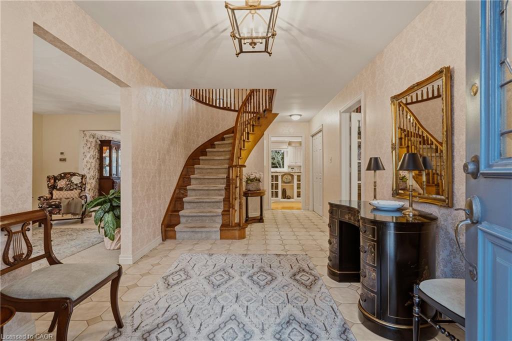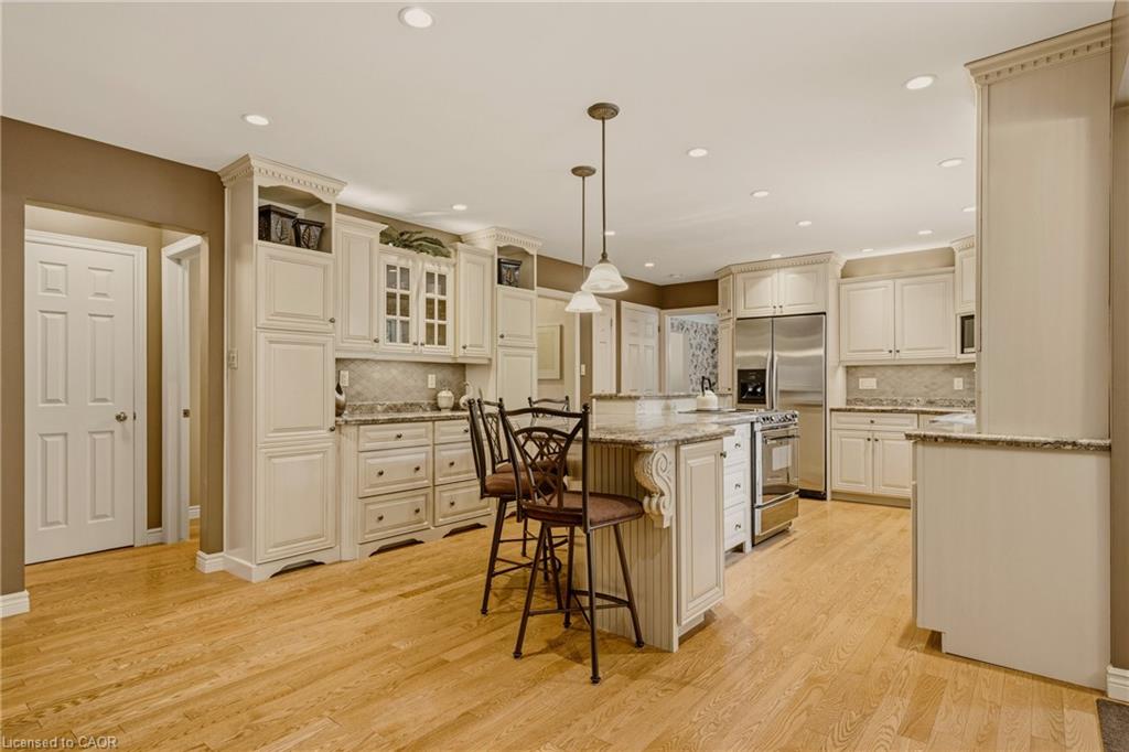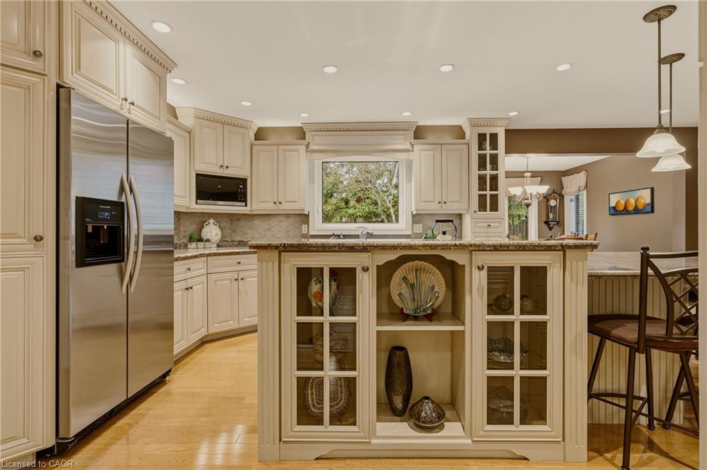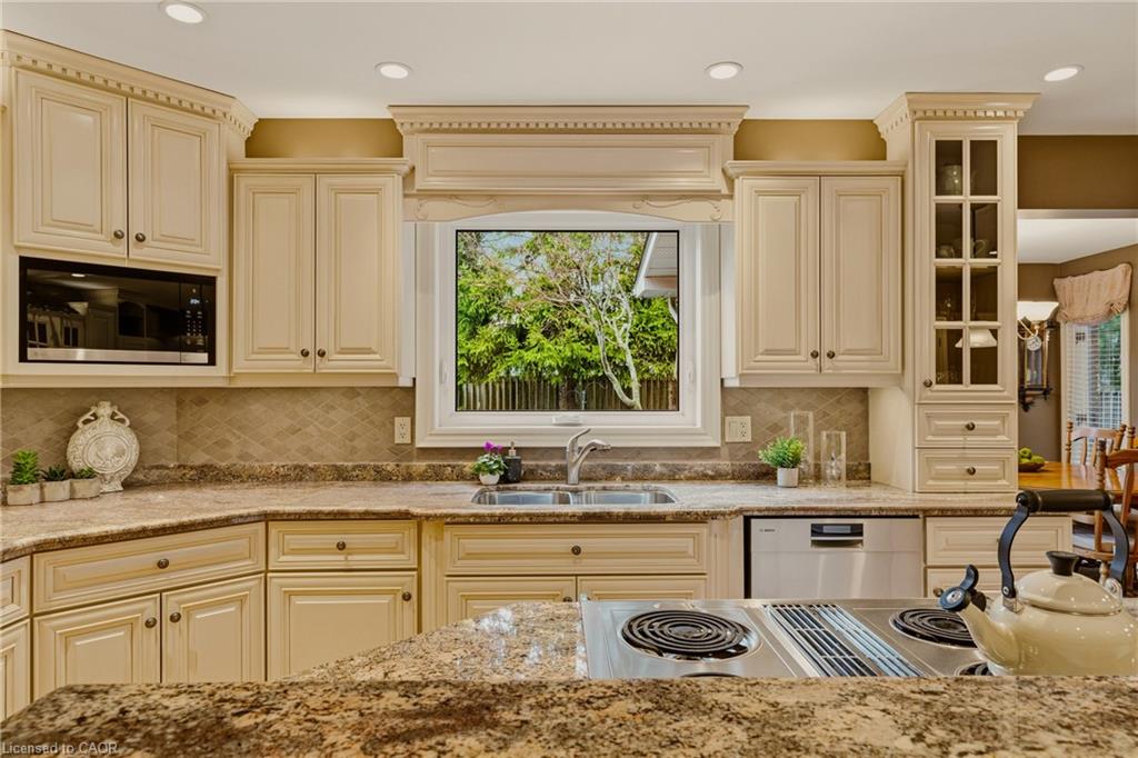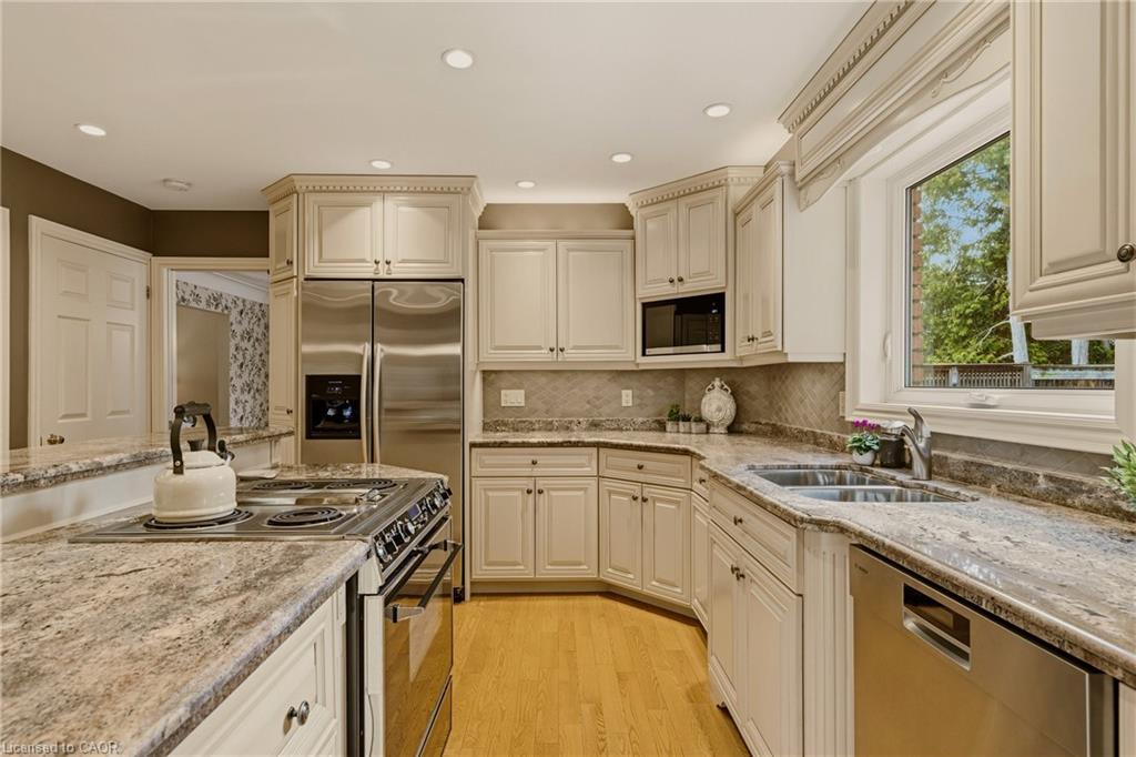 Welcome to 91 Rembrandt Court, nestled in the heart of sought after Old Ancaster. Proudly offered by the original owners since 1988, this custom built family home sits on a premium 74 x 121 ft lot with a beautifully landscaped, private backyard complete with a serene pond and a brand new composite deck (2025) featuring multiple sitting areas—perfect for relaxing or entertaining Ideally located within walking distance to top rated schools, conservation areas, scenic trails, and excellent community amenities including an outdoor pool, aquatic centre, and Morgan Firestone Arena. This spacious home offers 4 bedrooms and 3 bathrooms with 2896 square feet of living space. The main floor boasts a functional and inviting layout with separate living and dining rooms, a cozy family room with gas fireplace, and a private home office—ideal for today’s lifestyle. The renovated kitchen is equipped with stainless steel appliances, granite countertops, large island with seating and a bright dinette area with direct access to the backyard. The primary bedroom retreat features a walk-in closet, dedicated makeup area, and a beautifully updated 4 piece ensuite bath. Three additional spacious bedrooms and a newly renovated 5 piece bathroom complete this level. Additional features include main floor laundry/mudroom with inside entry to the double car garage, irrigation system, 200 amp electrical service, radon mitigation system, and ERV/HRV ventilation system. Furnace, air conditioner, and water heater (all 2019). The basement has been professionally framed and partially drywalled - ready for your finishing touches. A rare offering in a mature, family friendly neighbourhood and very desirable court.