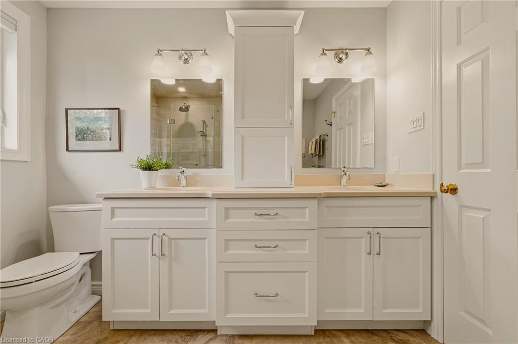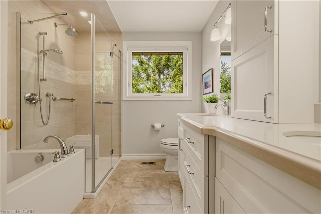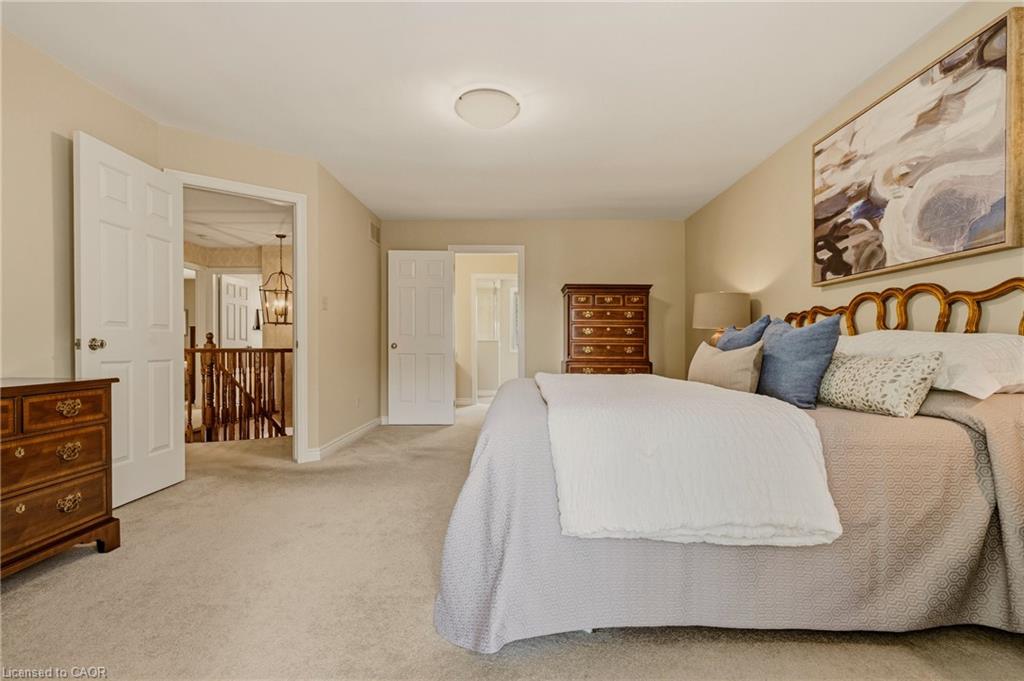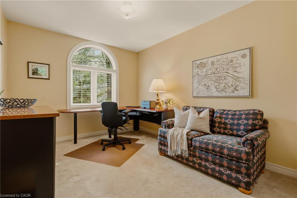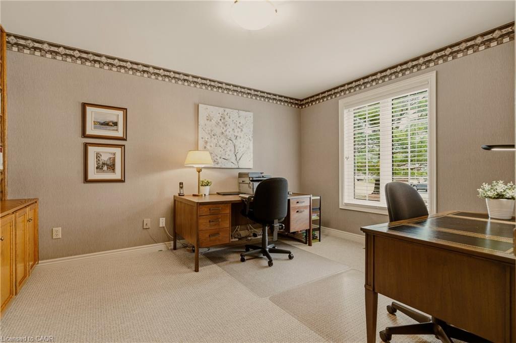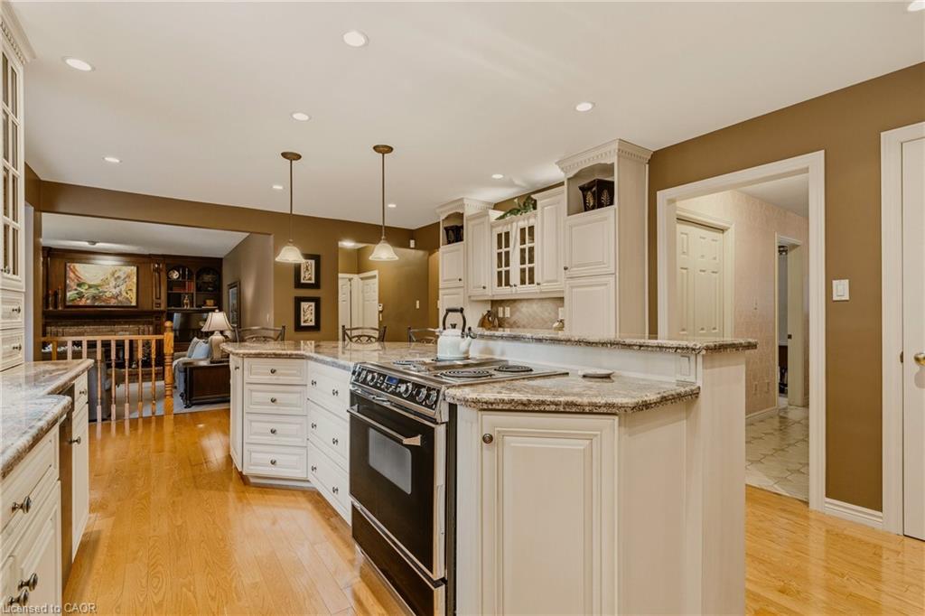 Welcome to 91 Rembrandt Court, nestled in the heart of sought after Old Ancaster. Proudly offered by the original owners since 1988, this custom built family home sits on a premium 74 x 121 ft lot with a beautifully landscaped, private backyard complete with a serene pond and a brand new composite deck (2025) featuring multiple sitting areas—perfect for relaxing or entertaining Ideally located within walking distance to top rated schools, conservation areas, scenic trails, and excellent community amenities including an outdoor pool, aquatic centre, and Morgan Firestone Arena. This spacious home offers 4 bedrooms and 3 bathrooms with 2896 square feet of living space. The main floor boasts a functional and inviting layout with separate living and dining rooms, a cozy family room with gas fireplace, and a private home office—ideal for today’s lifestyle. The renovated kitchen is equipped with stainless steel appliances, granite countertops, large island with seating and a bright dinette area with direct access to the backyard. The primary bedroom retreat features a walk-in closet, dedicated makeup area, and a beautifully updated 4 piece ensuite bath. Three additional spacious bedrooms and a newly renovated 5 piece bathroom complete this level. Additional features include main floor laundry/mudroom with inside entry to the double car garage, irrigation system, 200 amp electrical service, radon mitigation system, and ERV/HRV ventilation system. Furnace, air conditioner, and water heater (all 2019). The basement has been professionally framed and partially drywalled - ready for your finishing touches. A rare offering in a mature, family friendly neighbourhood and very desirable court.