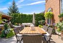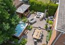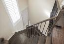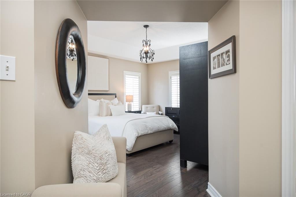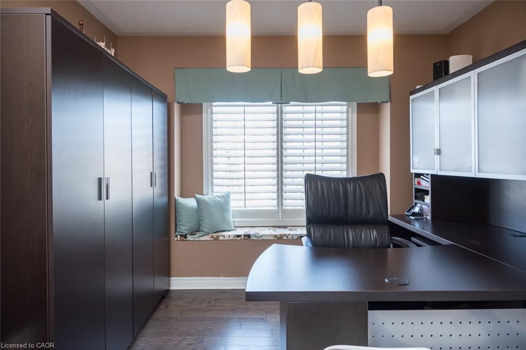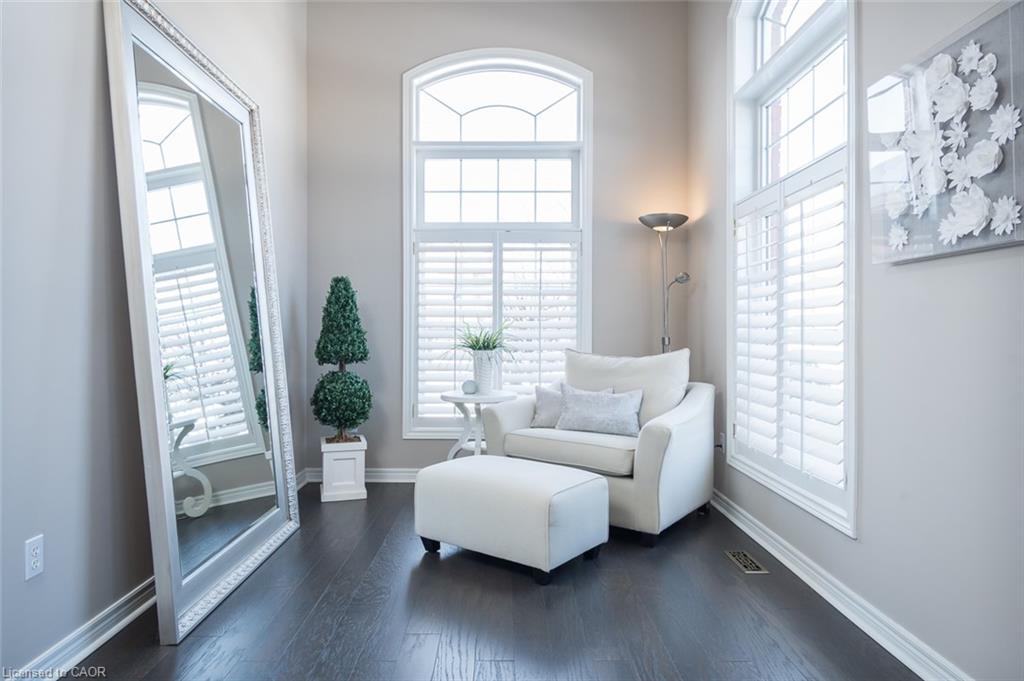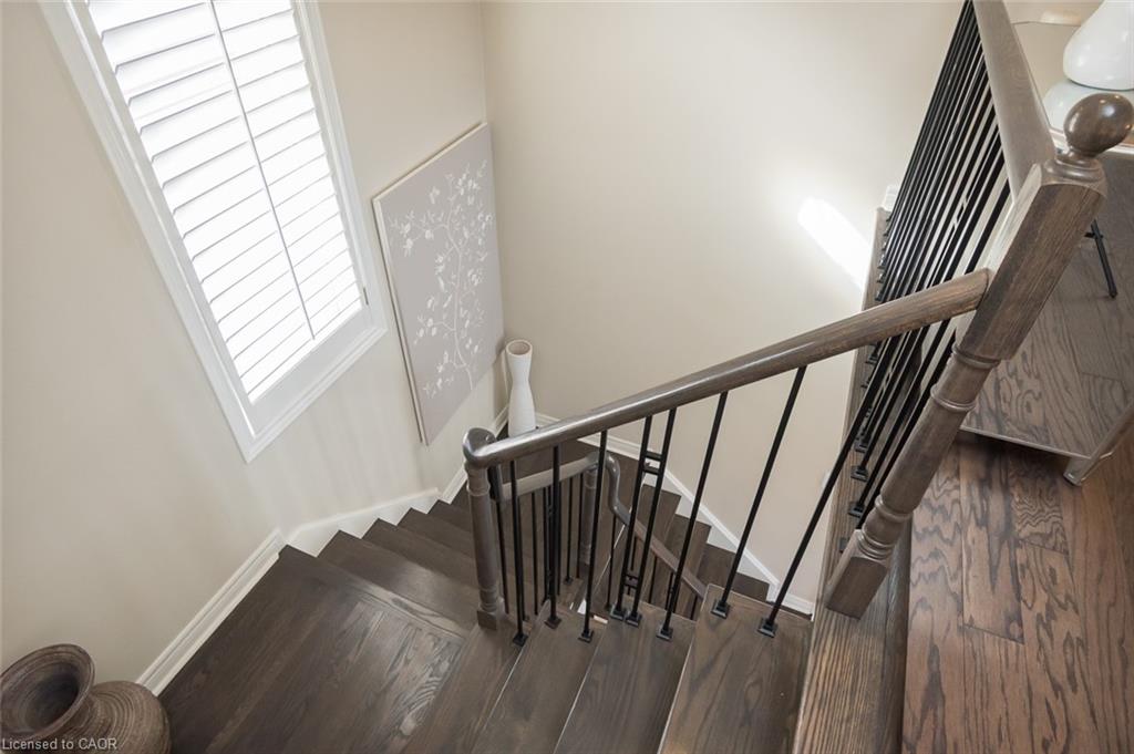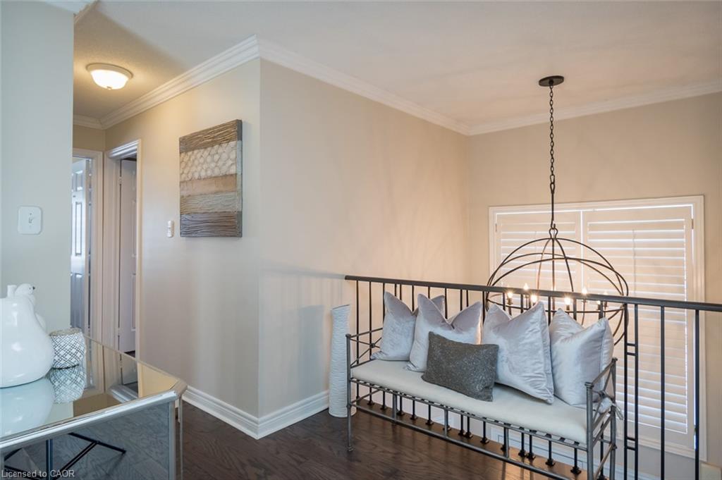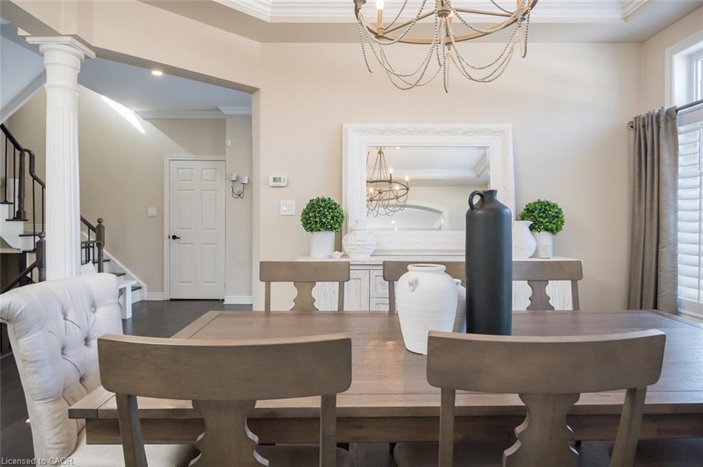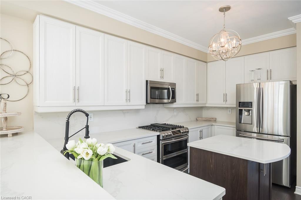 Exquisitely designed with a true model-home feel, this four-bedroom River Oaks home showcases elevated finishes and stunning upgrades that extend from its refined interior to the beautifully designed backyard retreat. A grand double-door entrance opens to an impressive foyer with open-to-above ceilings. Hardwood flooring runs throughout the main level, complemented by crown moulding, pot lights, and a hardwood staircase with wrought iron spindles. Arched windows with transoms and impressive ceiling height define the formal living room, finished with California shutters. A tray ceiling enhances the formal dining space, while the family room is anchored by a gas fireplace. The upgraded kitchen features white custom cabinetry, quartz countertops, a full slab backsplash, stainless steel appliances, and a generous island with breakfast bar seating. A bright eat-in area with sliding doors connects seamlessly to the rear yard. Upstairs, a spacious hallway leads to a generously sized primary retreat with ample closet space and a well-appointed five-piece ensuite. A second bedroom offers five-piece ensuite privilege, and two additional well-proportioned bedrooms provide flexibility for family, guests, or office space. The fully finished lower level adds valuable living space with a recreation area and built-in bar. Pot lighting and crown moulding enhance the ceiling detail, while a three-piece bathroom and multiple storage areas add everyday functionality. The backyard is designed for entertaining, featuring an expansive exposed aggregate patio, , hot tub, and custom cedar cabana bar, all surrounded by mature hedging for privacy. Located in the heart of River Oaks, close to top-rated schools, Oakville Hospital, parks, trails, shopping, and commuter routes, this home delivers elevated living in one of Oakville’s most established neighbourhoods.