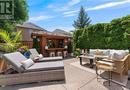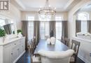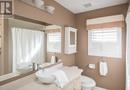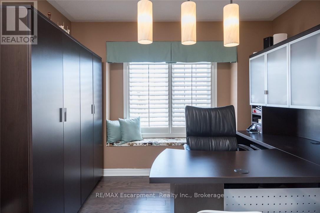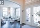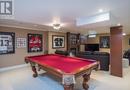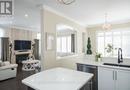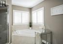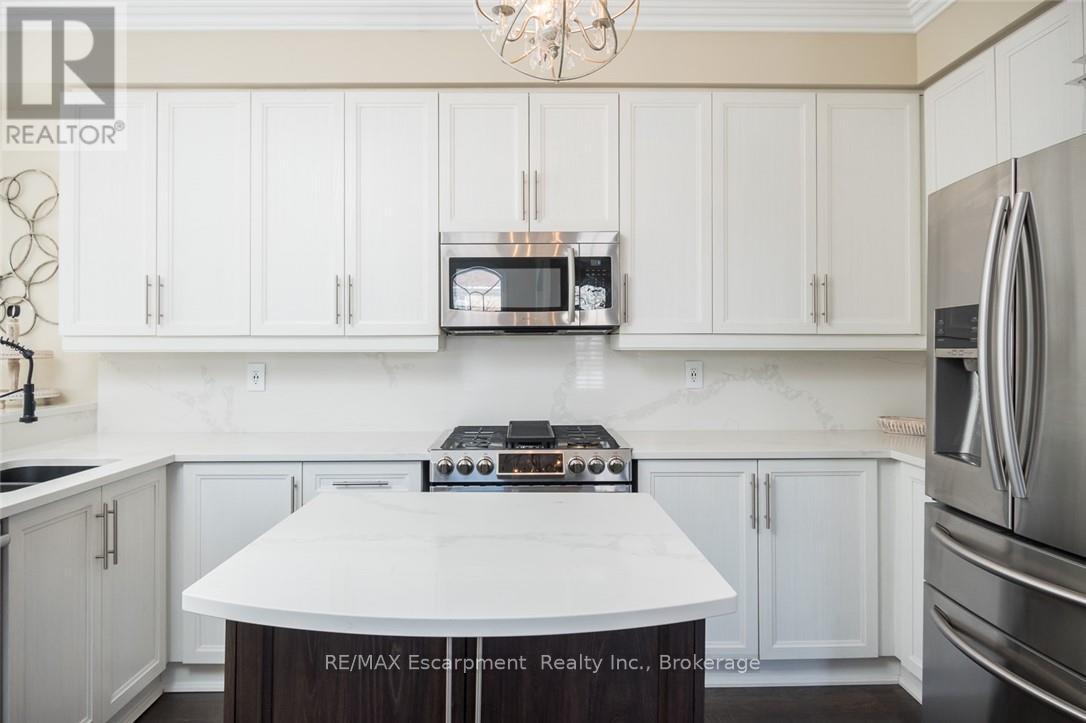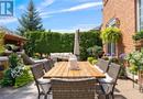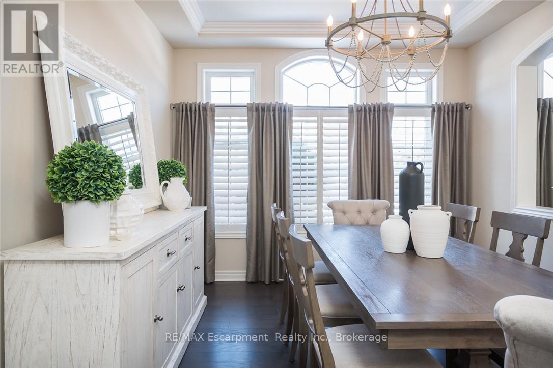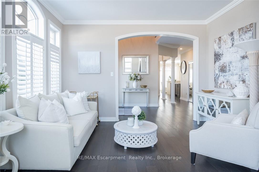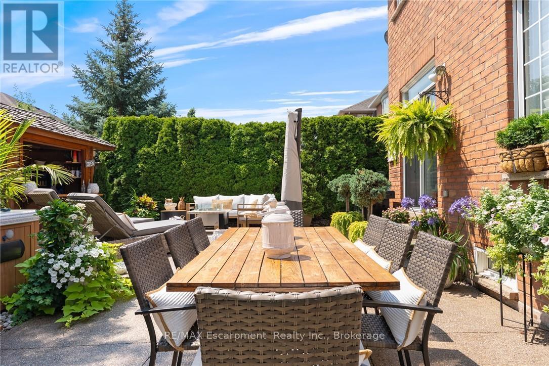 Exquisitely designed with a true model-home feel, this four-bedroom River Oaks home showcases elevated finishes and stunning upgrades that extend from its refined interior to the beautifully designed backyard retreat. A grand double-door entrance opens to an impressive foyer with open-to-above ceilings. Hardwood flooring runs throughout the main level, complemented by crown moulding, pot lights, and a hardwood staircase with wrought iron spindles. Arched windows with transoms and impressive ceiling height define the formal living room, finished with California shutters. A tray ceiling enhances the formal dining space, while the family room is anchored by a gas fireplace. The upgraded kitchen features white custom cabinetry, quartz countertops, a full slab backsplash, stainless steel appliances, and a generous island with breakfast bar seating. A bright eat-in area with sliding doors connects seamlessly to the rear yard. Upstairs, a spacious hallway leads to a generously sized primary retreat with ample closet space and a well-appointed five-piece ensuite. A second bedroom offers five-piece ensuite privilege, and two additional well-proportioned bedrooms provide flexibility for family, guests, or office space. The fully finished lower level adds valuable living space with a recreation area and built-in bar. Pot lighting and crown moulding enhance the ceiling detail, while a three-piece bathroom and multiple storage areas add everyday functionality. The backyard is designed for entertaining, featuring an expansive exposed aggregate patio, hot tub, and custom cedar cabana bar, all surrounded by mature hedging for privacy. Located in the heart of River Oaks, close to top-rated schools, Oakville Hospital, parks, trails, shopping, and commuter routes, this home delivers elevated living in one of Oakville's most established neighbourhoods. (id:52316)