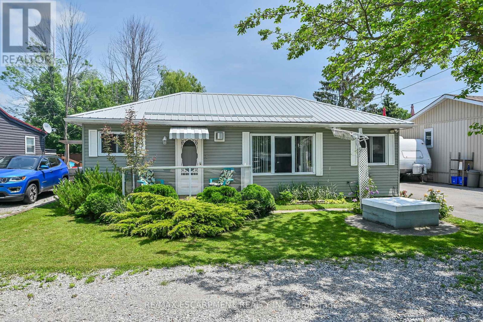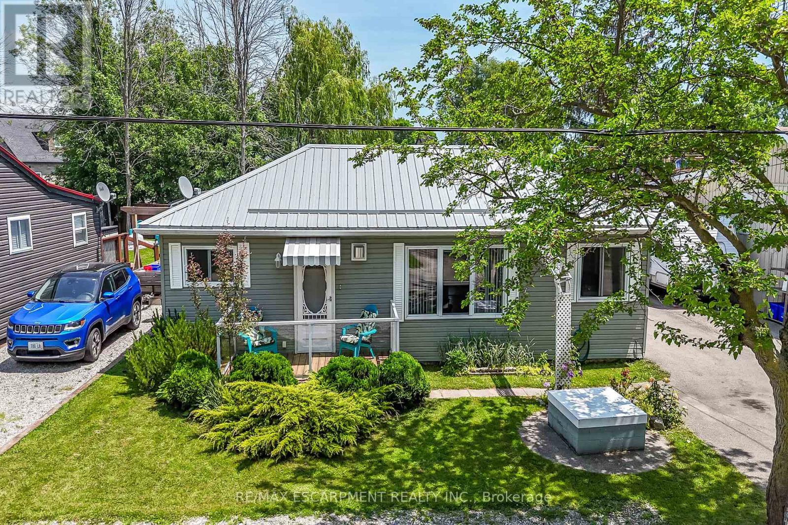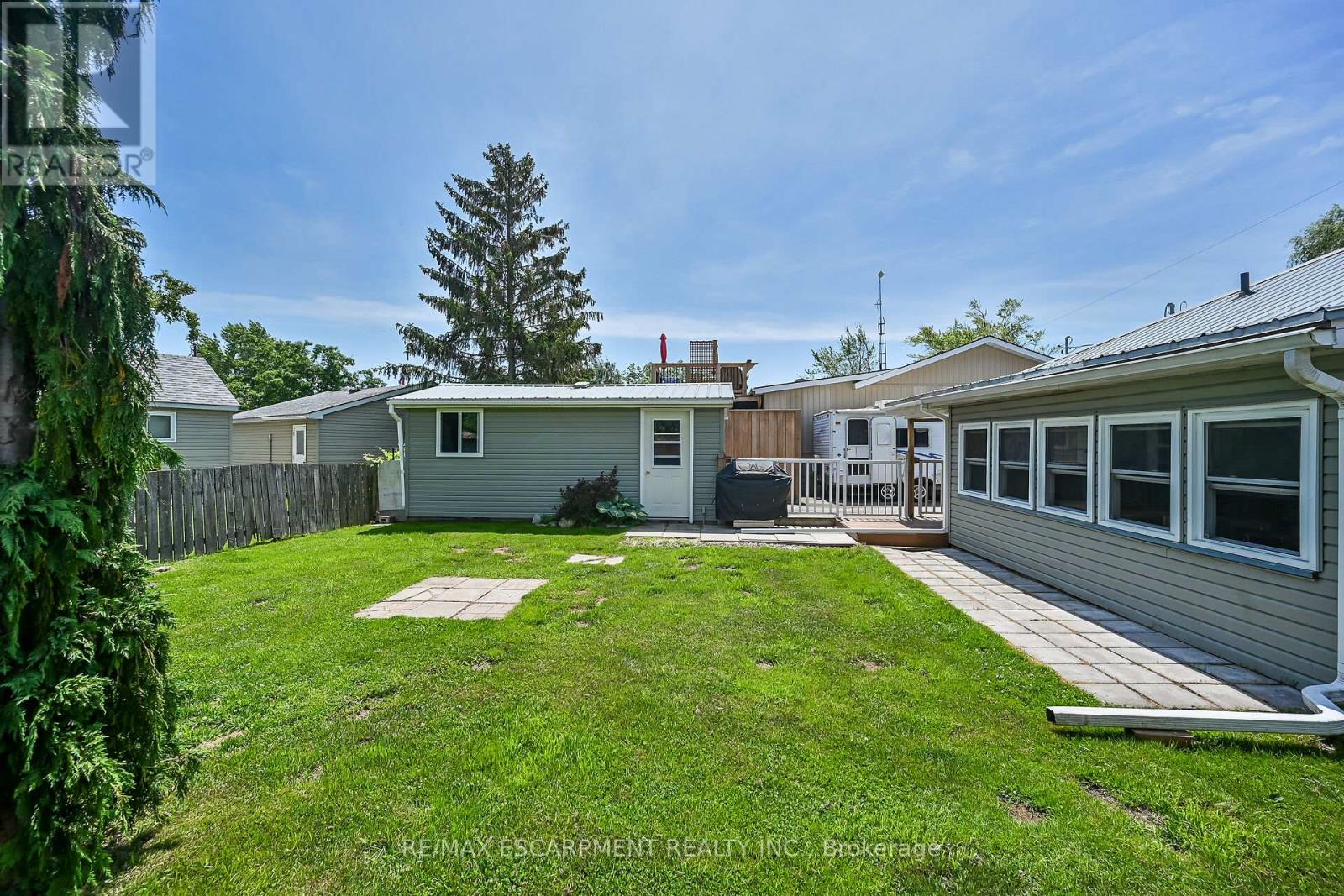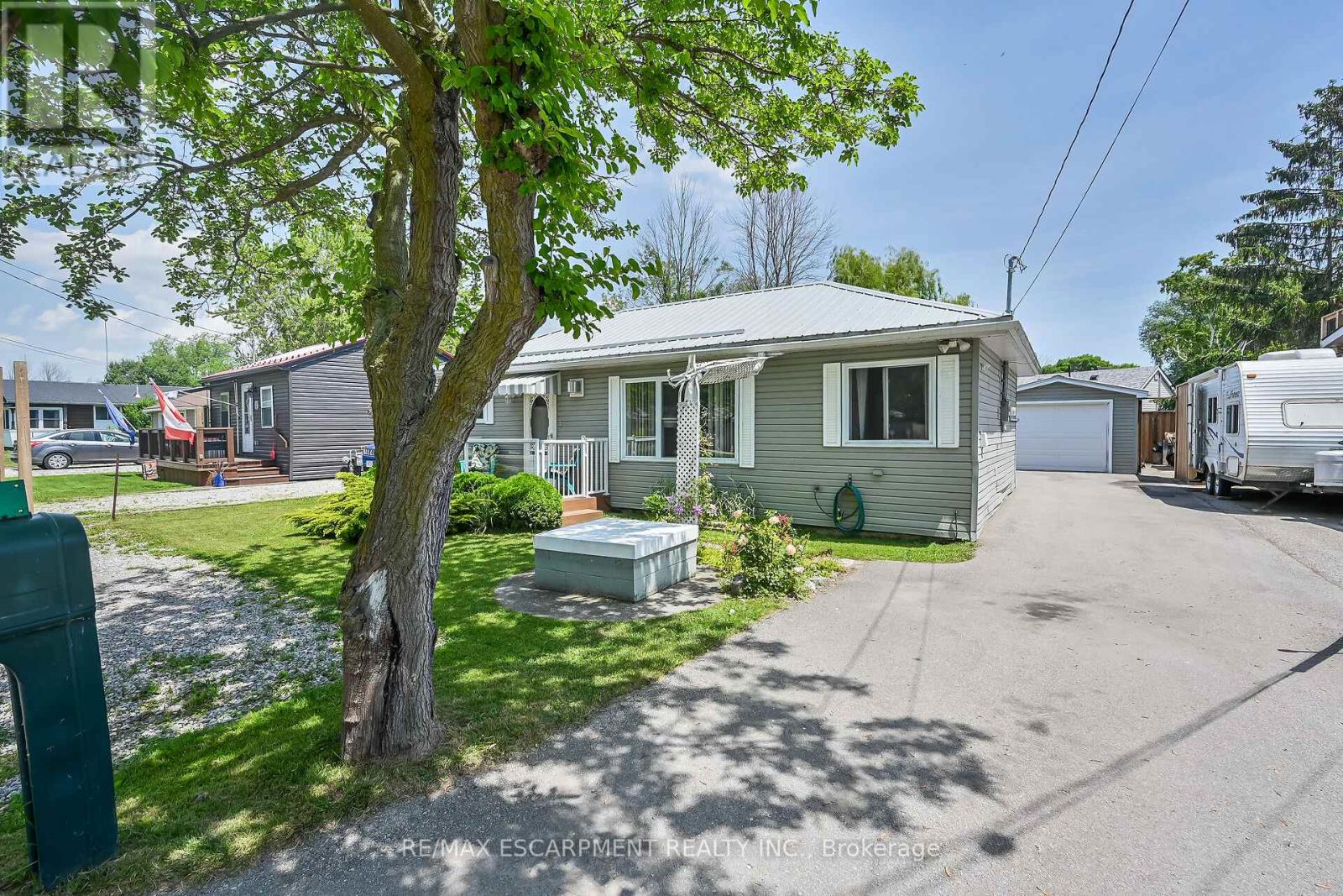 Looking for affordable year round living? Well maintained one storey home in Peacock point with nice size yard, and handy detached garage (built in 2015) offers partial views of Lake Erie, which is only steps away! Two bedrooms, full bath, laundry room, open concept living room/dining room and functional galley kitchen with updated white cabinetry - plus bonus sunroom at the back of the house - over 900 square feet of tastefully decorated living space. Hardwood floor through out the house and clean bright vinyl windows. Master bedroom is spacious and includes a closet and a patio door walk out to the back yard. Outside is clad in viny siding, and metal roof. Nice front deck/porch for relaxing and watching the world go by! Back yard is fenced to keep kids and pets safe. Heated by a cozy natural gas fireplace, and includes cistern and holding tank. Paved driveway with ample parking for 3 cars. Low maintenance life here in in the Point! (id:52316)