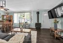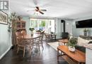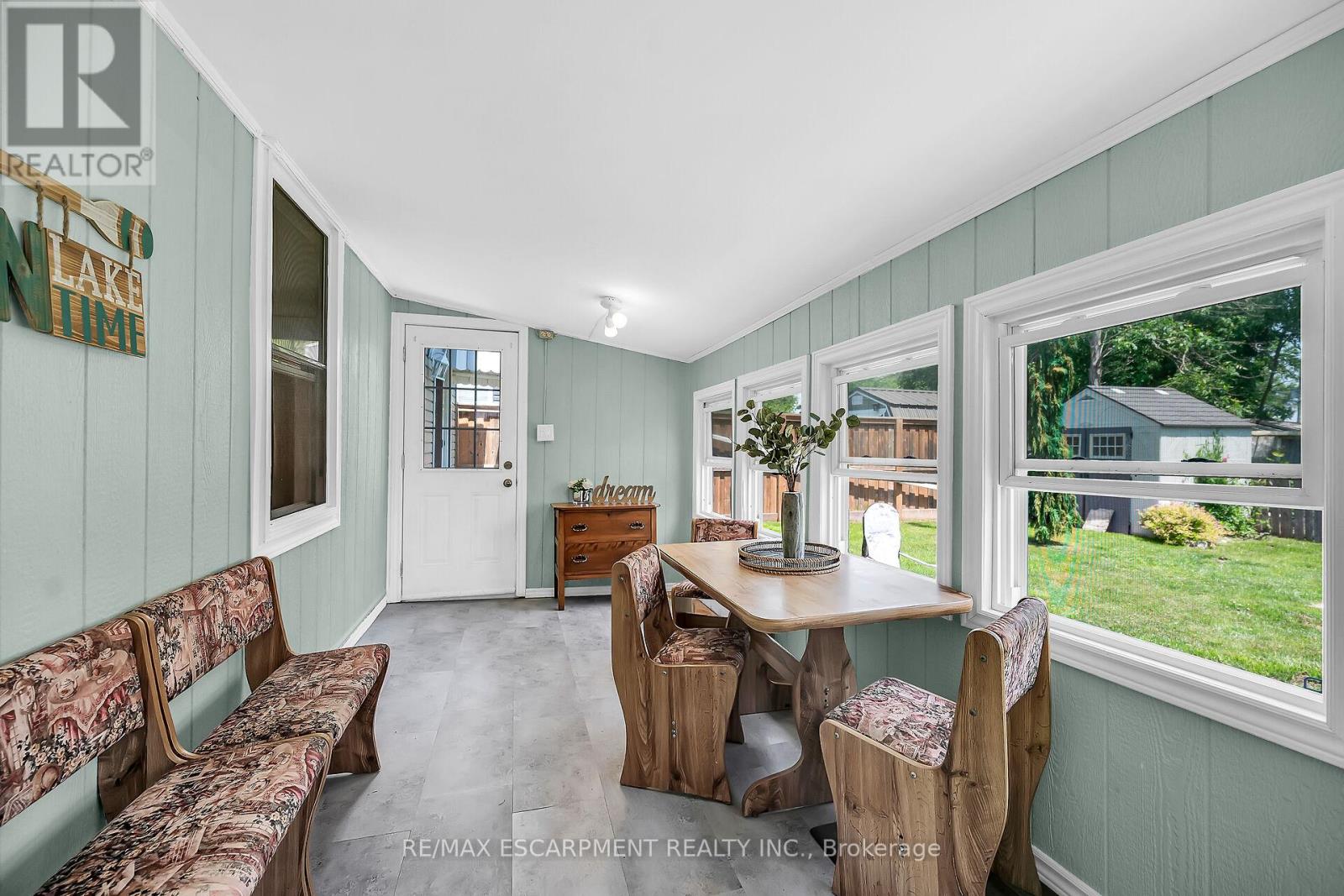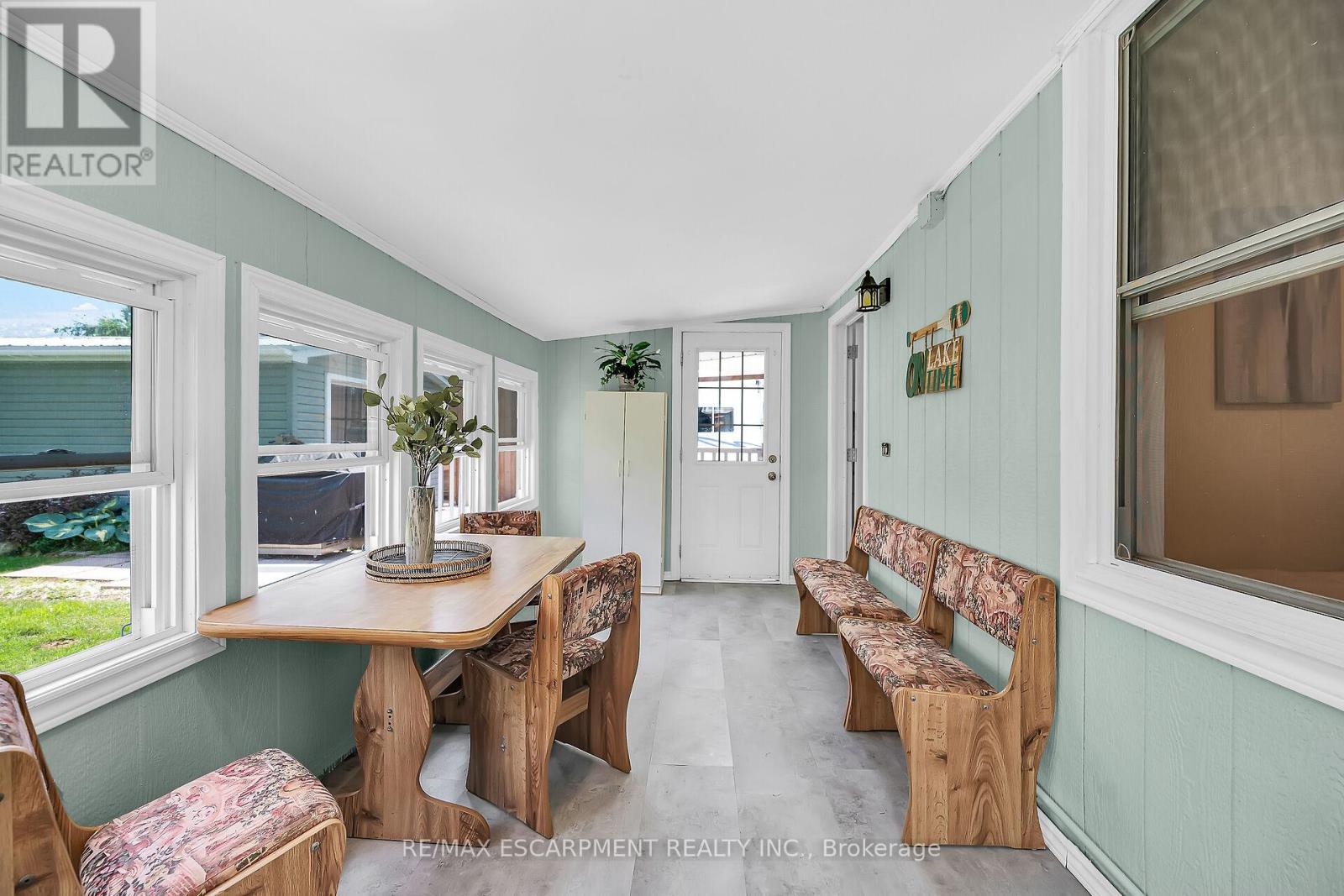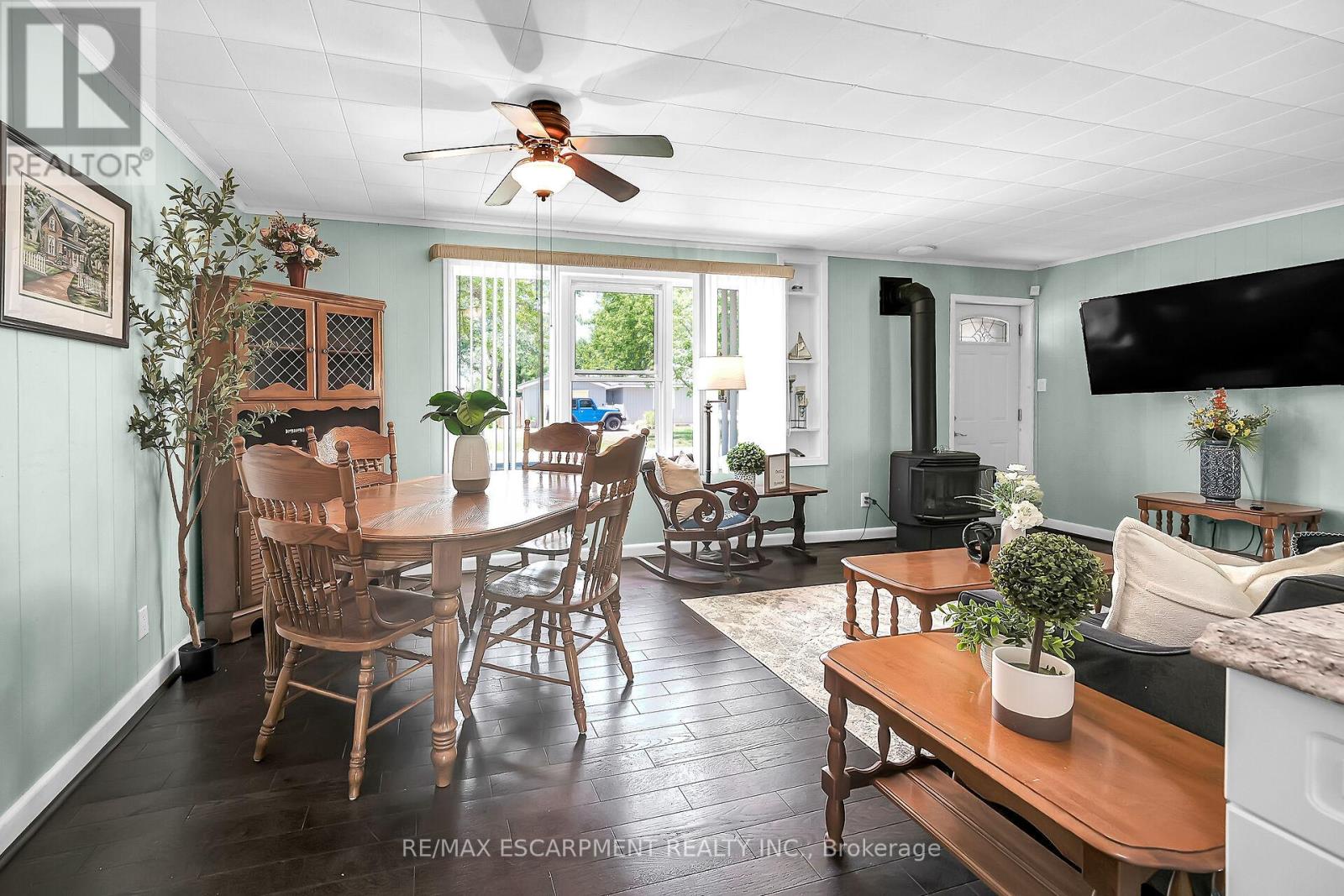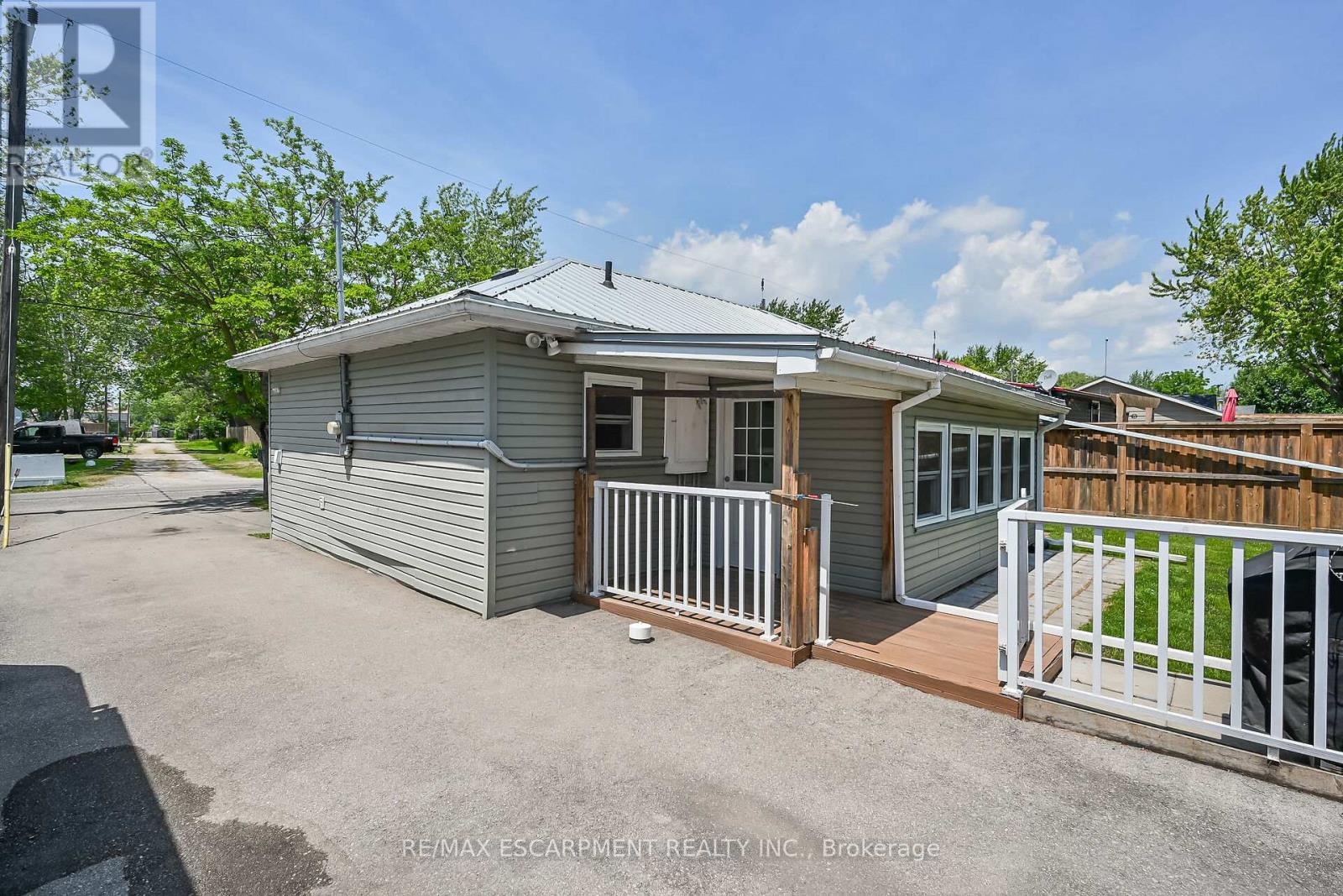 Looking for affordable year round living? Well maintained one storey home in Peacock point with nice size yard, and handy detached garage (built in 2015) offers partial views of Lake Erie, which is only steps away! Two bedrooms, full bath, laundry room, open concept living room/dining room and functional galley kitchen with updated white cabinetry - plus bonus sunroom at the back of the house - over 900 square feet of tastefully decorated living space. Hardwood floor through out the house and clean bright vinyl windows. Master bedroom is spacious and includes a closet and a patio door walk out to the back yard. Outside is clad in viny siding, and metal roof. Nice front deck/porch for relaxing and watching the world go by! Back yard is fenced to keep kids and pets safe. Heated by a cozy natural gas fireplace, and includes cistern and holding tank. Paved driveway with ample parking for 3 cars. Low maintenance life here in in the Point! (id:52316)