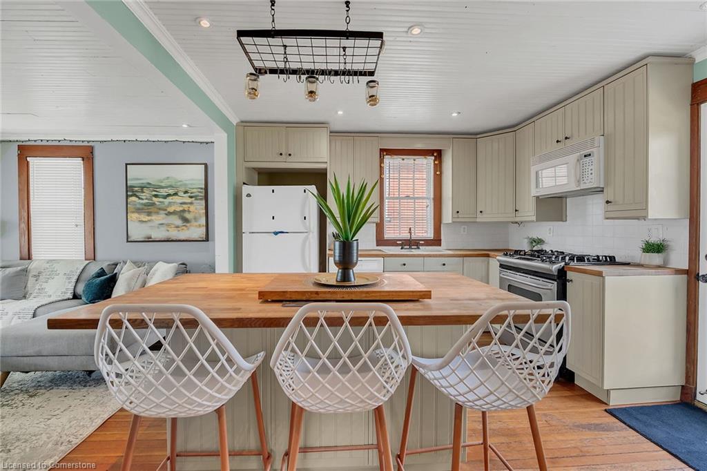 Quaint 1.5 storey 2 bedroom, 2 bathroom home on Lake Erie Waterfront - owns both sides of the road. Includes 42 ft of waterfront with sandy beach access and boat launch potential. Home features kitchen with white shaker style cabinets, large island with wood butcher block top, main floor laundry with 2 piece bathroom, hardwood floors in kitchen/living room and bedrooms. White tongue & groove ceiling, solid wood staircase & railing. Updated vinyl windows, steel roof. Detached garage converted into studio. Conveniently located minutes to Dunnville, restaurants & golf. Relaxing commute to Hamilton, Niagara, & the GTA. Call today to Enjoy a Lake Erie Lifestyle at an affordable price!