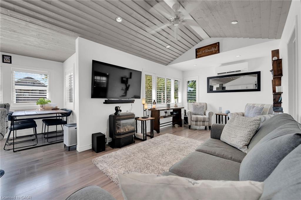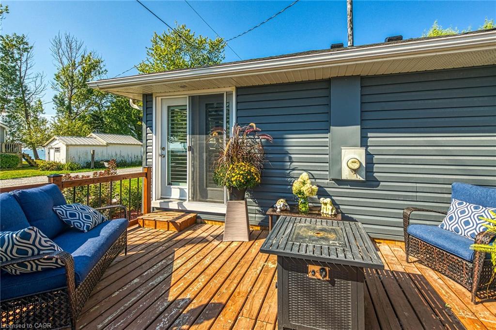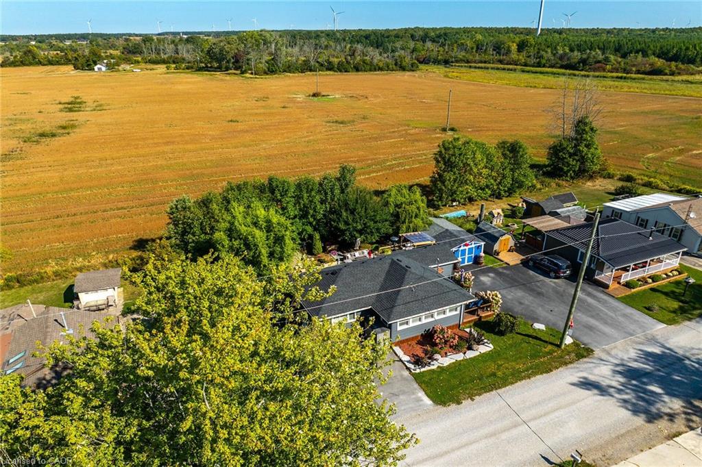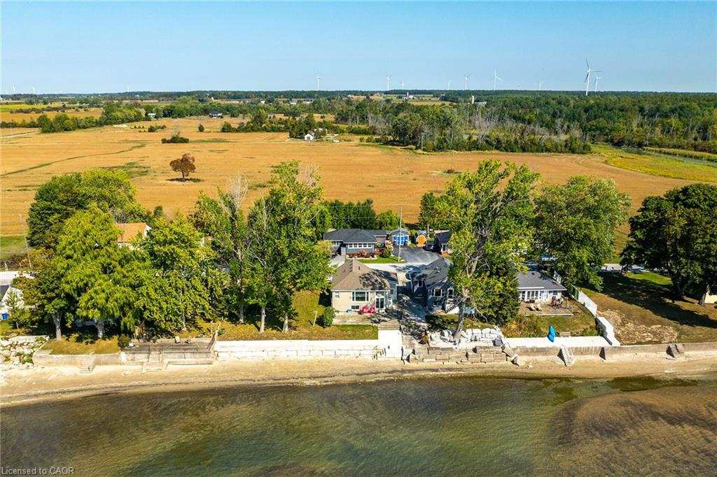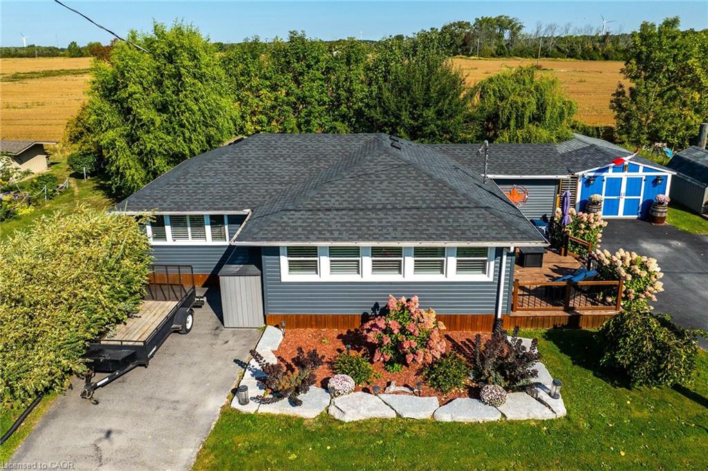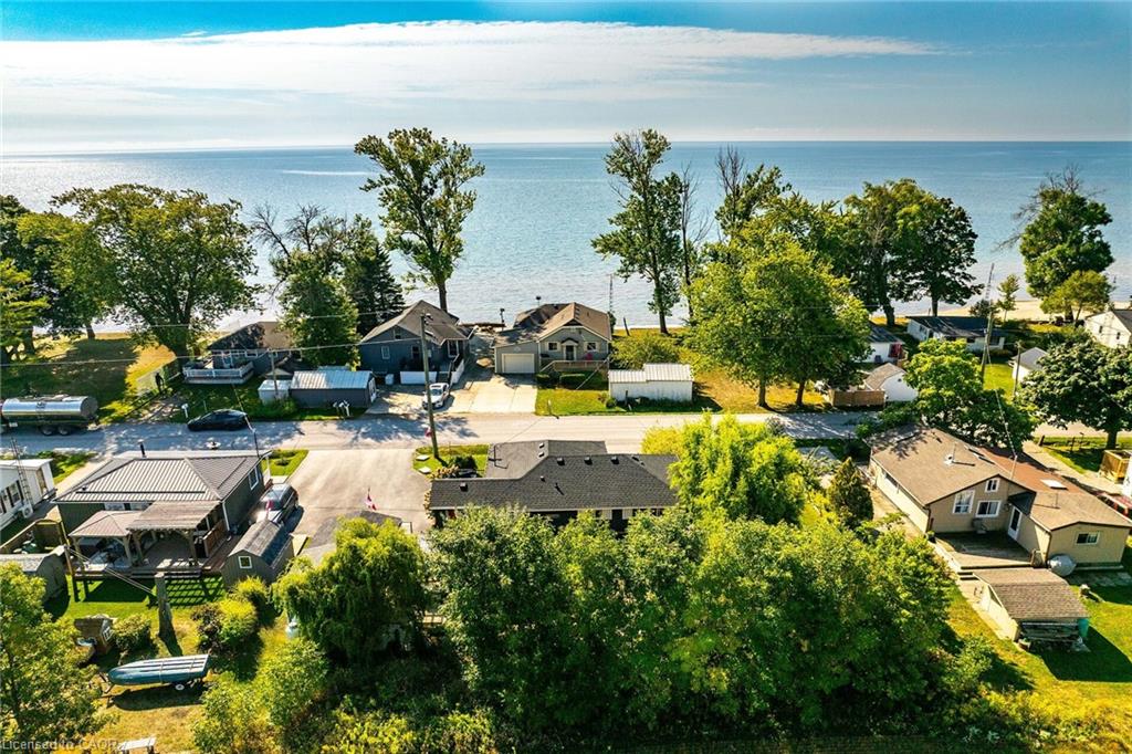 Looking for your own little piece of paradise?? You need this beautiful Lake Erie Home! Exquisitely decorated open concept main living area with vaulted tongue & groove ceiling, two bedrooms, plus recently renovated three piece bath with gorgeous glass shower, wonderful spacious laundry room and pantry closet plus utility room. The main room features many bright lake facing windows, large kitchen island, cozy propane fireplace and tasteful modern flooring. California shutters finish off the windows perfectly. There are five different lake views from the front room, and your view out of the back is trees and fields. The rear yard feels like a resort with lots of decking, pergola, gazebo, fully fenced yard and many mature trees. A garden shed, plus a workshop in the back yard - both have electricity and the workshop is insulated - would not take much to heat it. Large asphalt parking area - room for 5 to 7 cars, plus an extra parking space on the other side of the driveway. Your new Lake Erie home includes a deeded right of way directly across the road - 10 ft wide, so access the beautiful waterfront. Heated and cooled by efficient heat pump system, plus a propane fireplace for chilly nights. 2000 gallon cistern (plus an additional cistern for watering flowers) and 2000 gallon holding tank. Great potential for short term rental in this area as well.. take advantage of the beautiful beaches, and the small town of Dunnville close by. Stop procrastinating - live the dream at the Lake!