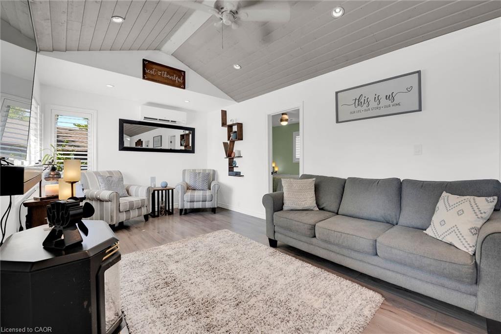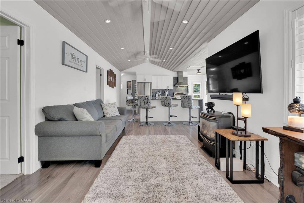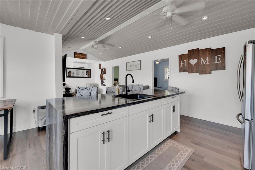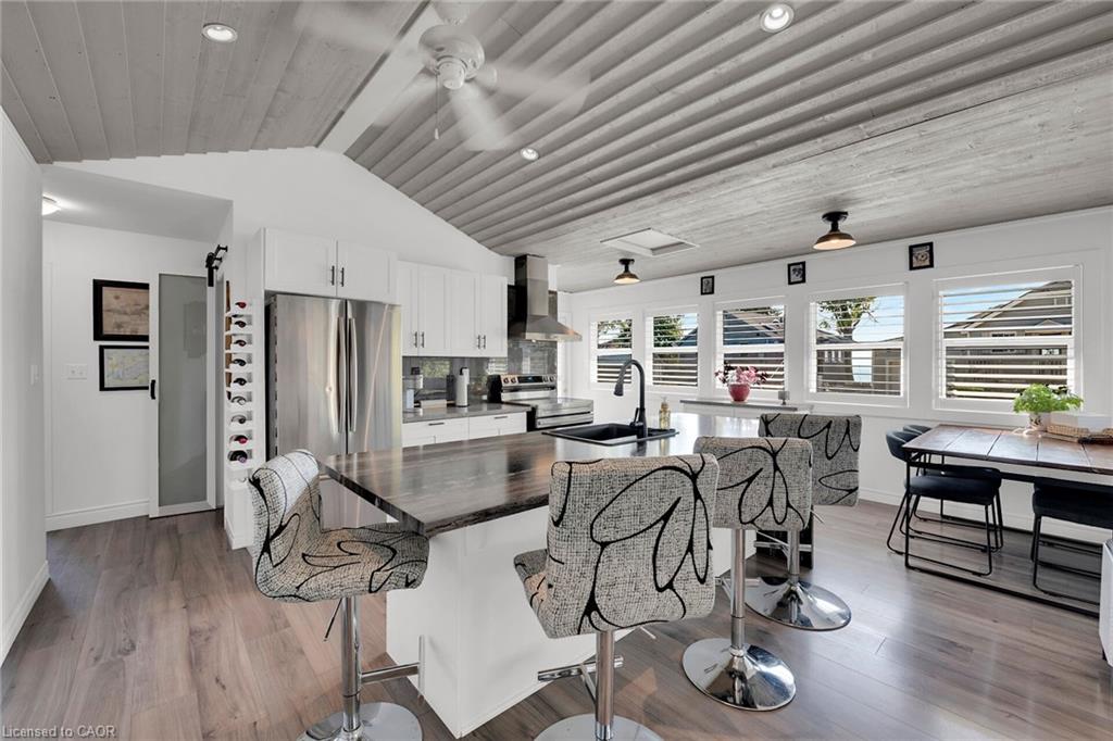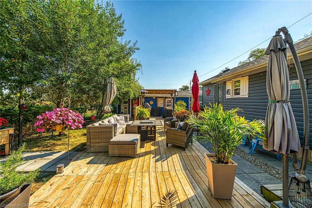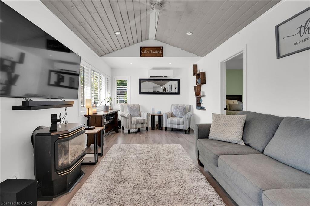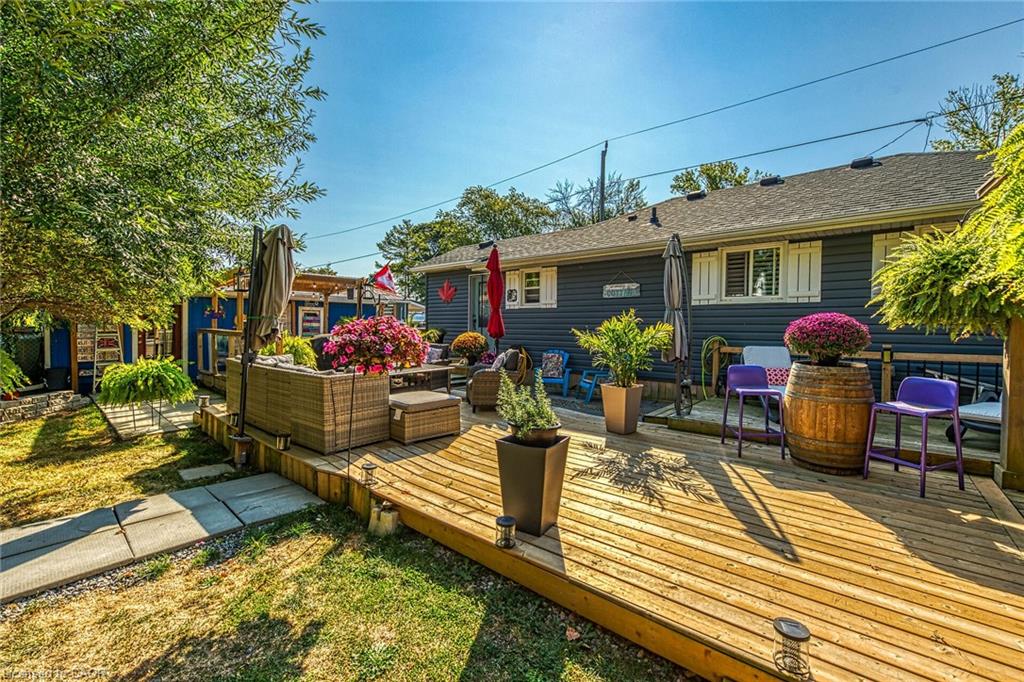 Looking for your own little piece of paradise?? You need this beautiful Lake Erie Home! Exquisitely decorated open concept main living area with vaulted tongue & groove ceiling, two bedrooms, plus recently renovated three piece bath with gorgeous glass shower, wonderful spacious laundry room and pantry closet plus utility room. The main room features many bright lake facing windows, large kitchen island, cozy propane fireplace and tasteful modern flooring. California shutters finish off the windows perfectly. There are five different lake views from the front room, and your view out of the back is trees and fields. The rear yard feels like a resort with lots of decking, pergola, gazebo, fully fenced yard and many mature trees. A garden shed, plus a workshop in the back yard - both have electricity and the workshop is insulated - would not take much to heat it. Large asphalt parking area - room for 5 to 7 cars, plus an extra parking space on the other side of the driveway. Your new Lake Erie home includes a deeded right of way directly across the road - 10 ft wide, so access the beautiful waterfront. Heated and cooled by efficient heat pump system, plus a propane fireplace for chilly nights. 2000 gallon cistern (plus an additional cistern for watering flowers) and 2000 gallon holding tank. Great potential for short term rental in this area as well.. take advantage of the beautiful beaches, and the small town of Dunnville close by. Stop procrastinating - live the dream at the Lake!