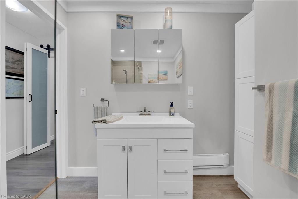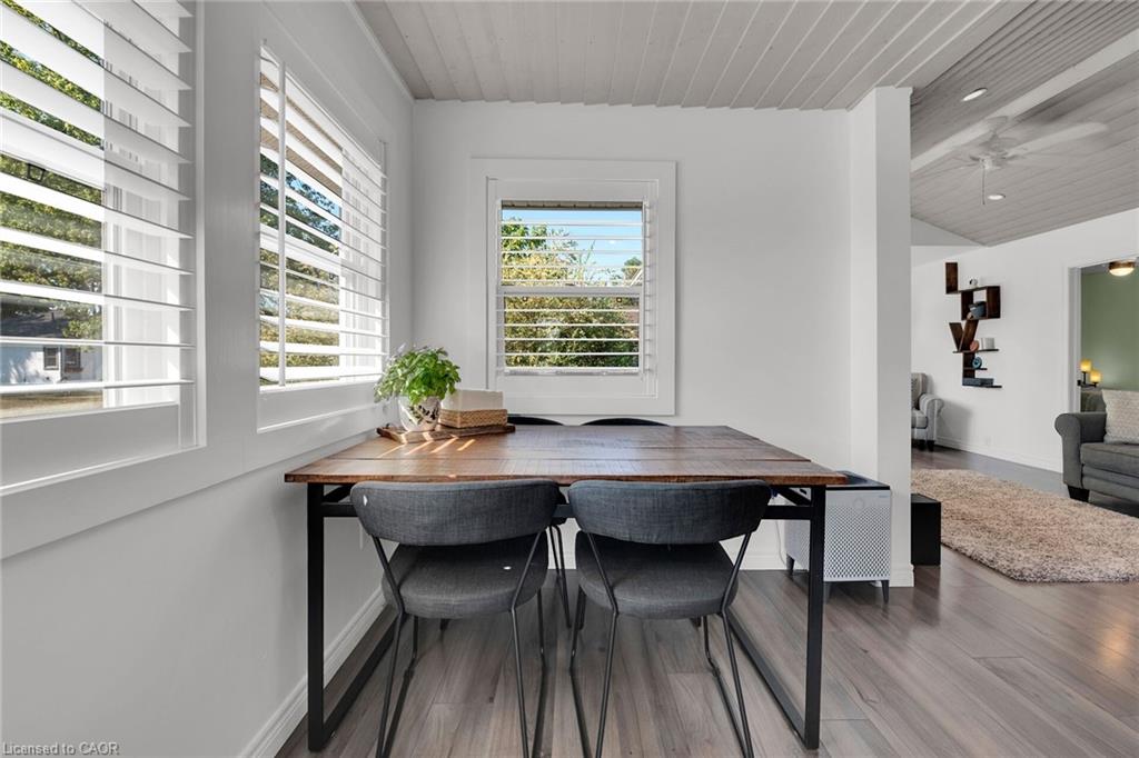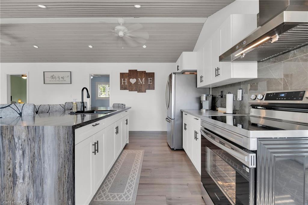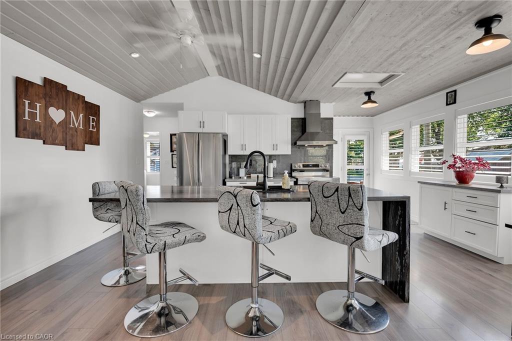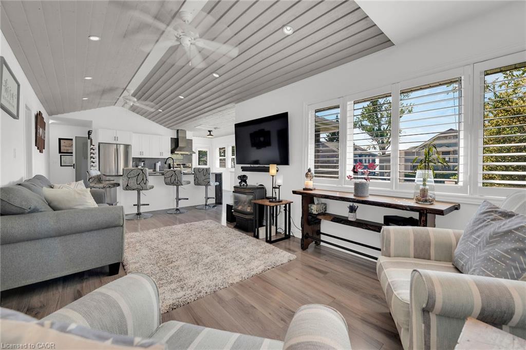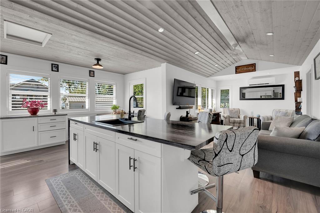 Looking for your own little piece of paradise?? You need this beautiful Lake Erie Home! Exquisitely decorated open concept main living area with vaulted tongue & groove ceiling, two bedrooms, plus recently renovated three piece bath with gorgeous glass shower, wonderful spacious laundry room and pantry closet plus utility room. The main room features many bright lake facing windows, large kitchen island, cozy propane fireplace and tasteful modern flooring. California shutters finish off the windows perfectly. There are five different lake views from the front room, and your view out of the back is trees and fields. The rear yard feels like a resort with lots of decking, pergola, gazebo, fully fenced yard and many mature trees. A garden shed, plus a workshop in the back yard - both have electricity and the workshop is insulated - would not take much to heat it. Large asphalt parking area - room for 5 to 7 cars, plus an extra parking space on the other side of the driveway. Your new Lake Erie home includes a deeded right of way directly across the road - 10 ft wide, so access the beautiful waterfront. Heated and cooled by efficient heat pump system, plus a propane fireplace for chilly nights. 2000 gallon cistern (plus an additional cistern for watering flowers) and 2000 gallon holding tank. Great potential for short term rental in this area as well.. take advantage of the beautiful beaches, and the small town of Dunnville close by. Stop procrastinating - live the dream at the Lake!