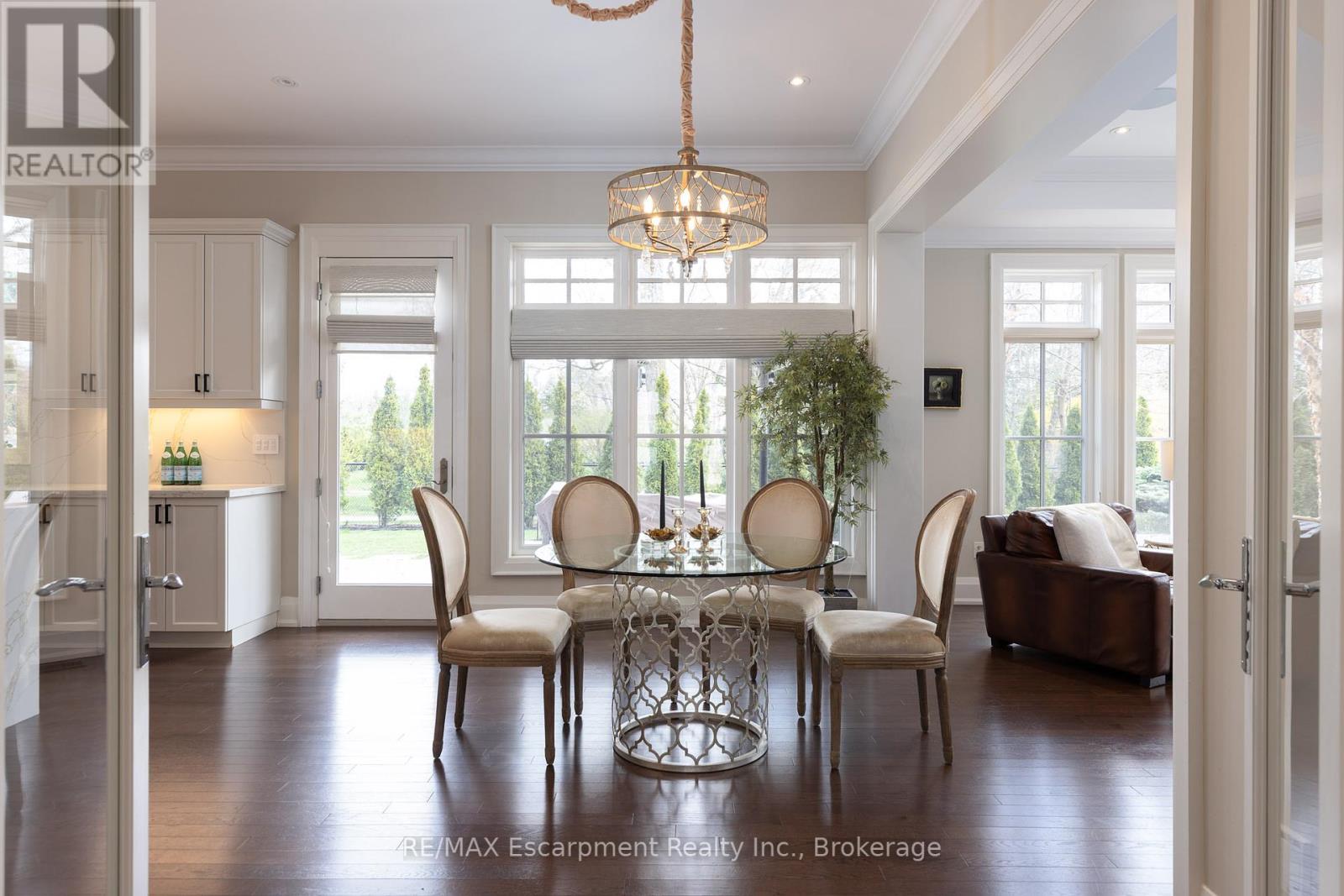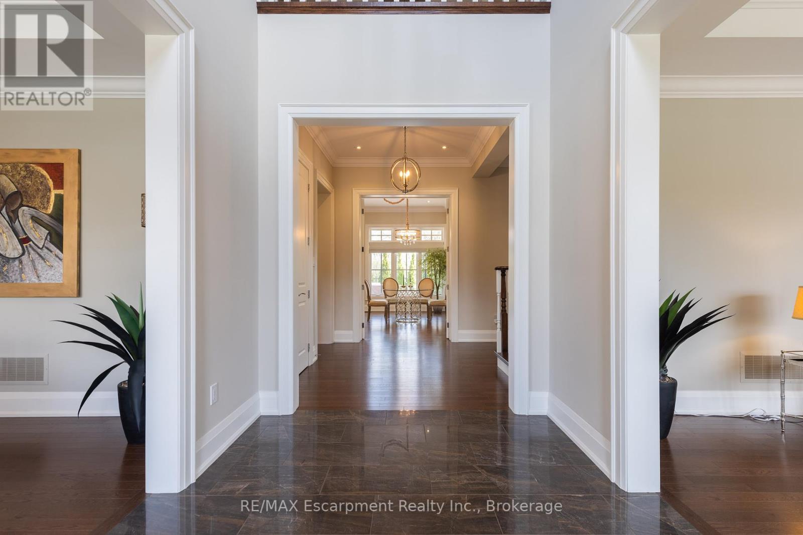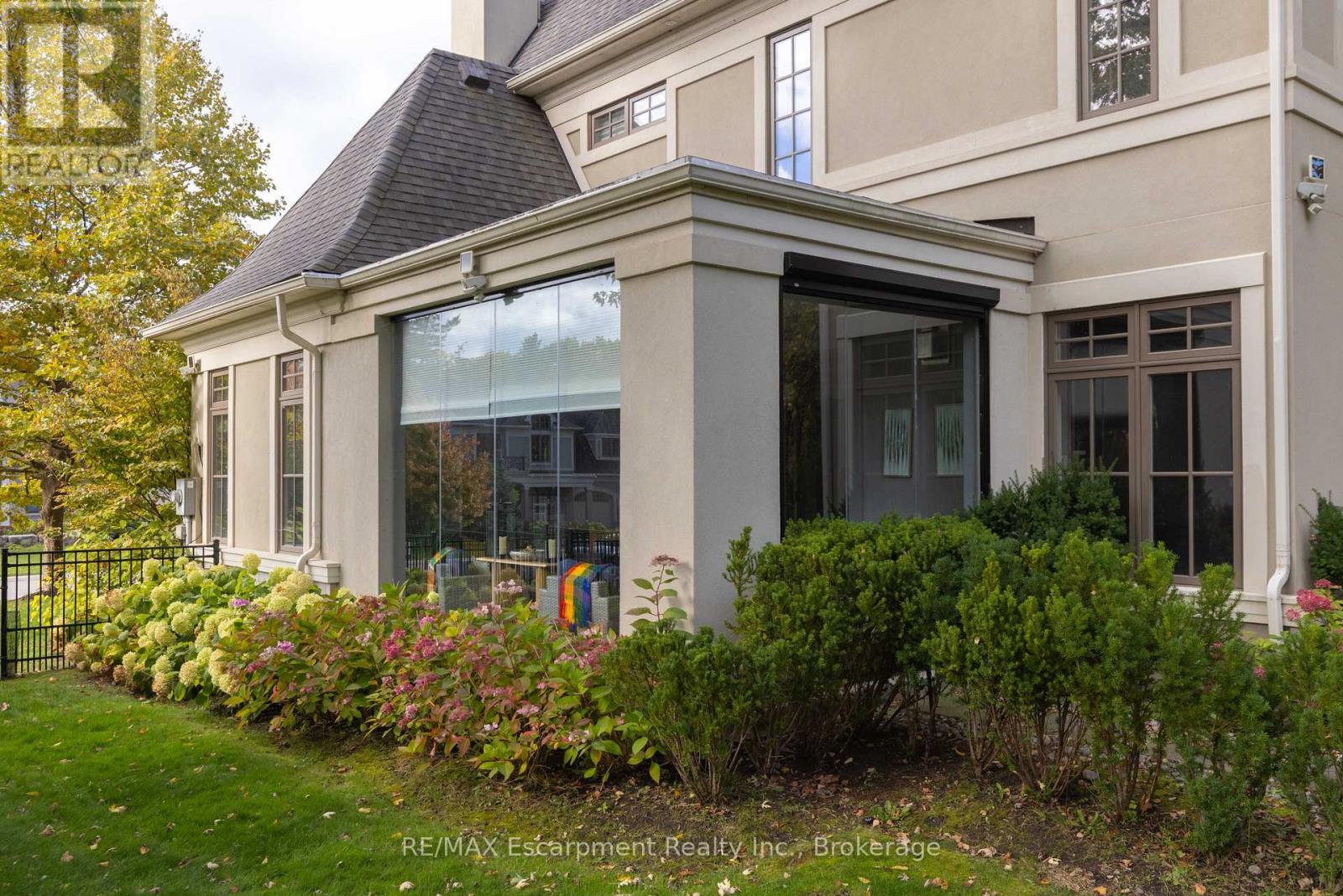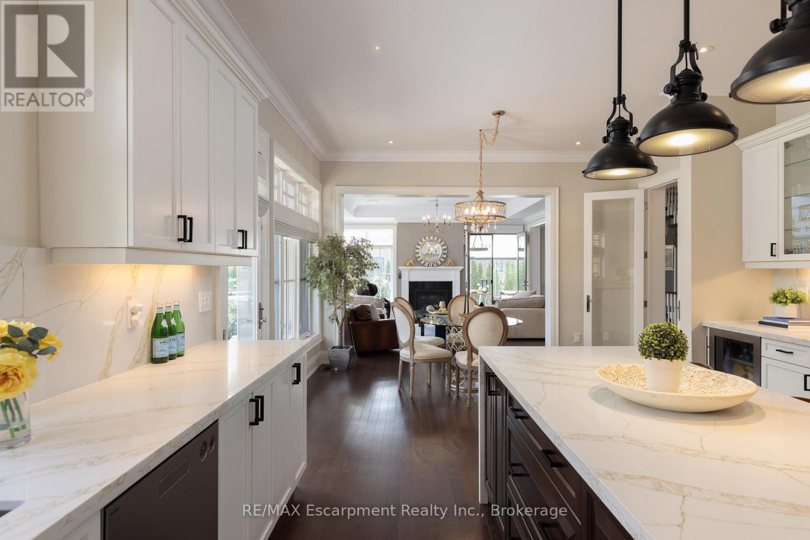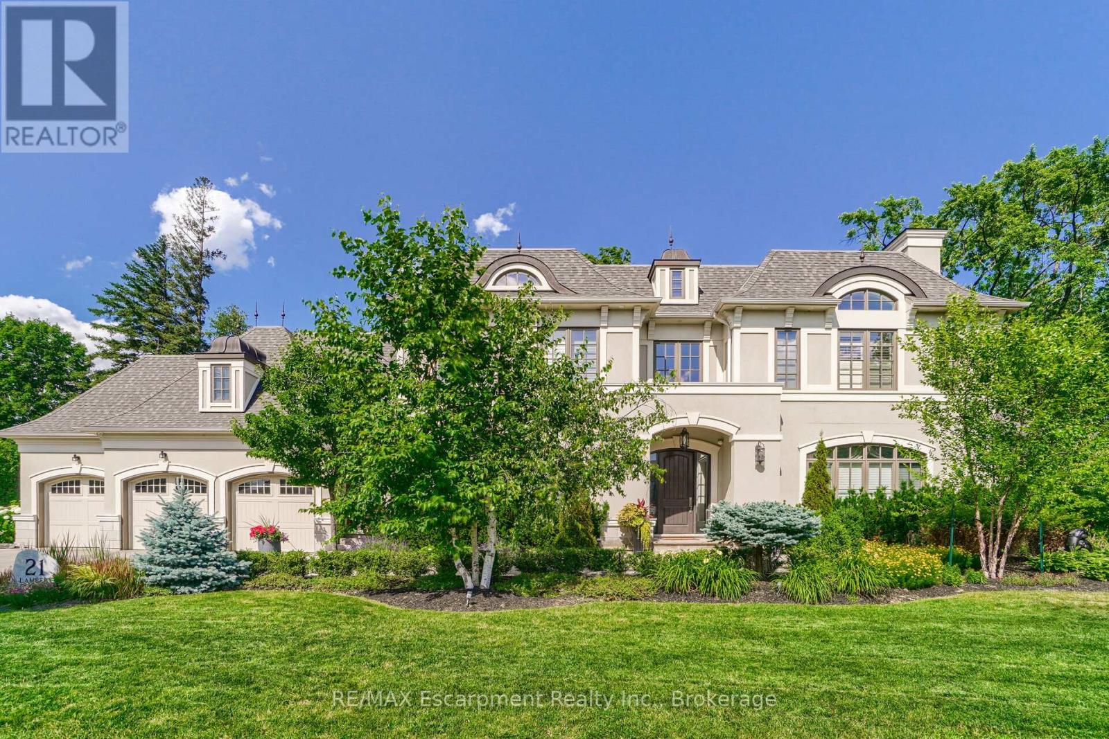 Elegant lakeside living in SW Oakville. Welcome to 21 Lambert Common! Tremendous opportunity to own a custom-built executive home by the water on a private road in the highly sought-after & exclusive community of Edgewater Estates. Just a stones throw away from the highly esteemed Appleby College. Enjoy the peace of mind that comes with an overnight neighbourhood security patrol. Discover over 6,700 sq.ft. of refined living space in this updated residence. Step into the grand foyer feat. 20' ceilings & heated porcelain floors that set the tone for this exceptional home. The formal LIV & DIN rooms showcase 10' tray ceilings, elegant wall paneling & moldings, while oversized windows bathe these spaces in natural light. The chef-inspired kitchen boasts premium Wolf B/I appliances & stovetop, complemented by a generous island and servery. Enjoy casual meals in the breakfast area with a W/O to a stone patio. The open, bright& spacious great room is surrounded by LRG windows, centers around a gas fireplace & flows seamlessly to an office w/ cathedral ceiling. Step down into the remarkable glassed-in sunroom - perfect for those special morning coffee moments w/ loved ones. Surround yourself in natures beauty & simply enjoy. A powder room, mudroom w/ separate entrance & laundry area (garage access) add convenience to the main floor plan. Upstairs, the primary impresses with 12ceilings, a gas fireplace, LRG W/I closet & 5PC ensuite feat. a steam shower, soaker tub &heated floors. 3 additional bedrooms, each with W/I closets & private or shared ensuite privileges complete this floor. The lower level with W/U to rear yard offers a recreation area, fireplace feature wall, exercise room, games area with wet bar, 2nd laundry, den, powder room, bathroom and 5th bedroom w/ ensuite.The backyard retreat includes an outdoor kitchenette,waterfall feature wall & decorative concrete fire bowl. Privacy, security, luxury, quality,beauty & comfort.This is 21 Lambert Common. Luxury Certified (id:52316)