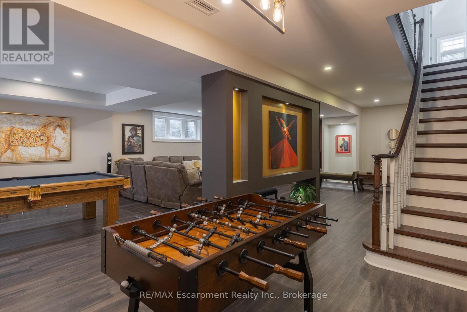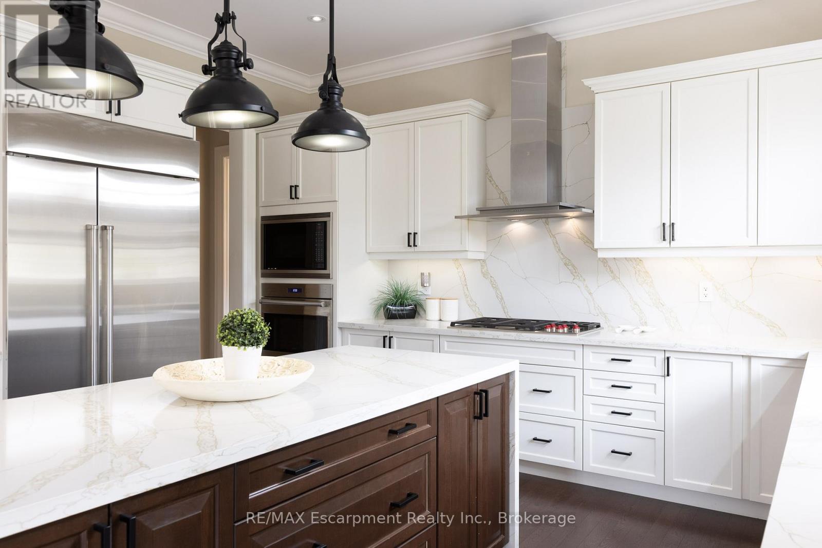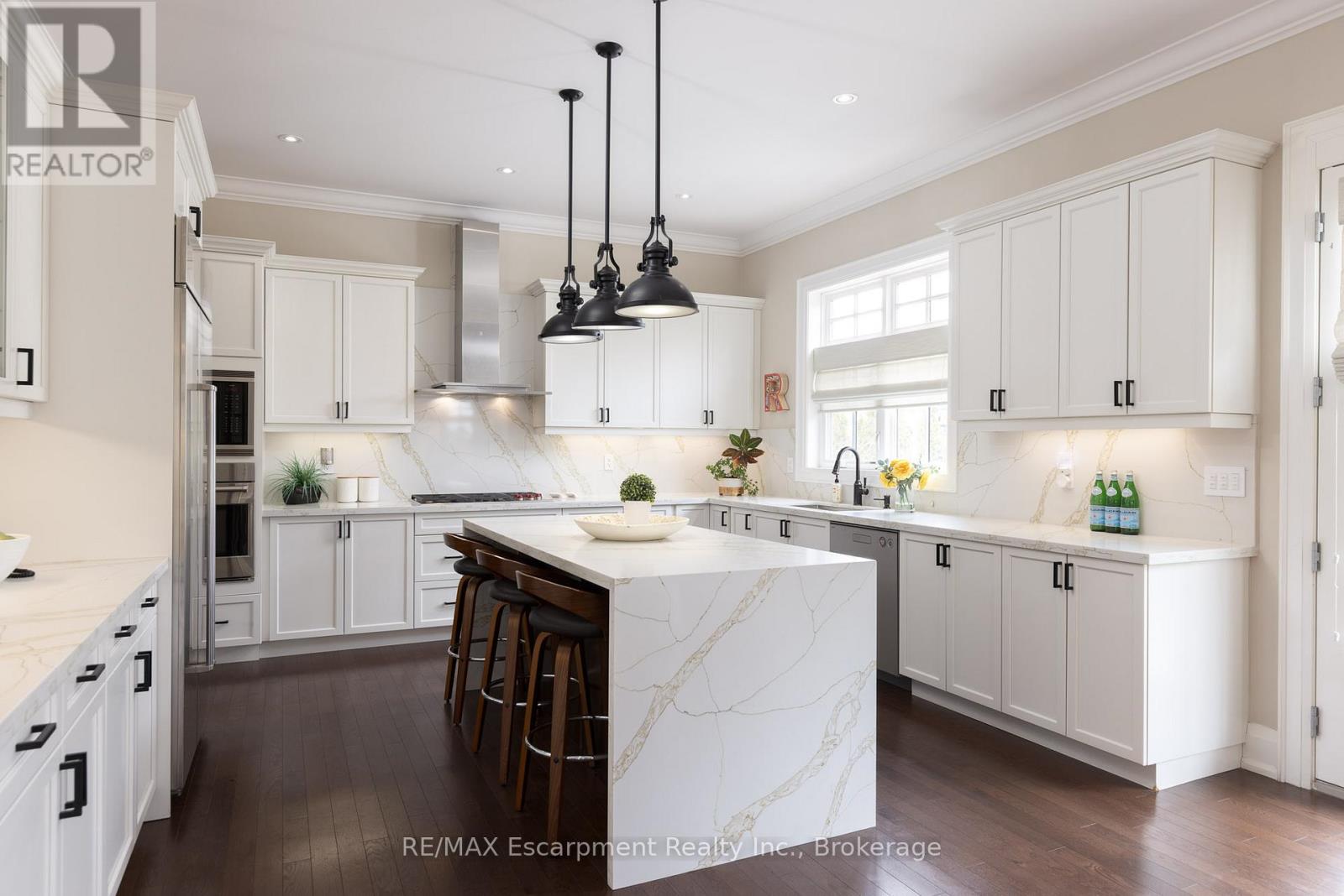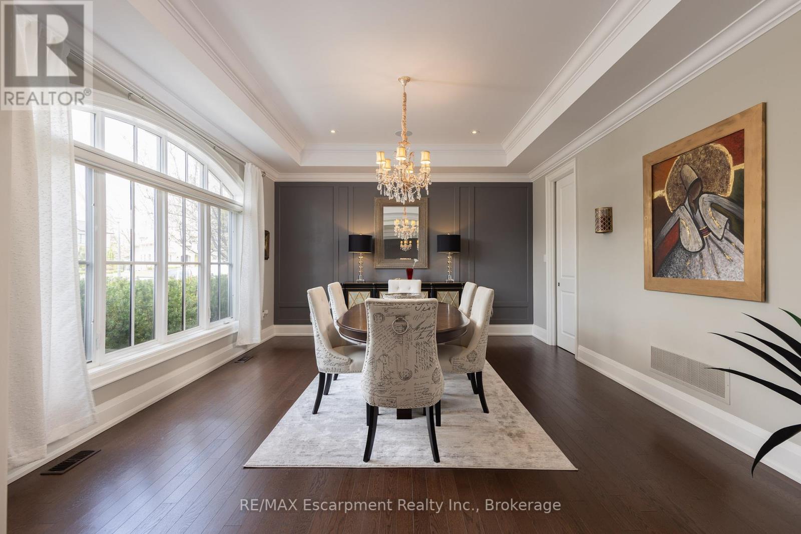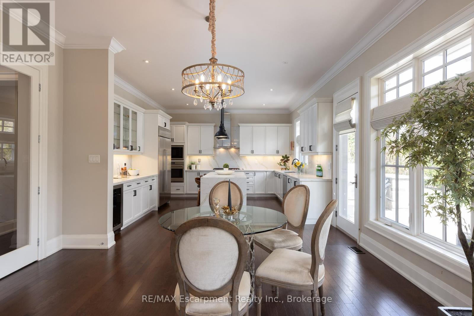 Elegant lakeside living in SW Oakville. Welcome to 21 Lambert Common! Tremendous opportunity to own a custom-built executive home by the water on a private road in the highly sought-after & exclusive community of Edgewater Estates. Just a stones throw away from the highly esteemed Appleby College. Enjoy the peace of mind that comes with an overnight neighbourhood security patrol. Discover over 6,700 sq.ft. of refined living space in this updated residence. Step into the grand foyer feat. 20' ceilings & heated porcelain floors that set the tone for this exceptional home. The formal LIV & DIN rooms showcase 10' tray ceilings, elegant wall paneling & moldings, while oversized windows bathe these spaces in natural light. The chef-inspired kitchen boasts premium Wolf B/I appliances & stovetop, complemented by a generous island and servery. Enjoy casual meals in the breakfast area with a W/O to a stone patio. The open, bright& spacious great room is surrounded by LRG windows, centers around a gas fireplace & flows seamlessly to an office w/ cathedral ceiling. Step down into the remarkable glassed-in sunroom - perfect for those special morning coffee moments w/ loved ones. Surround yourself in natures beauty & simply enjoy. A powder room, mudroom w/ separate entrance & laundry area (garage access) add convenience to the main floor plan. Upstairs, the primary impresses with 12ceilings, a gas fireplace, LRG W/I closet & 5PC ensuite feat. a steam shower, soaker tub &heated floors. 3 additional bedrooms, each with W/I closets & private or shared ensuite privileges complete this floor. The lower level with W/U to rear yard offers a recreation area, fireplace feature wall, exercise room, games area with wet bar, 2nd laundry, den, powder room, bathroom and 5th bedroom w/ ensuite.The backyard retreat includes an outdoor kitchenette,waterfall feature wall & decorative concrete fire bowl. Privacy, security, luxury, quality,beauty & comfort.This is 21 Lambert Common. Luxury Certified (id:52316)