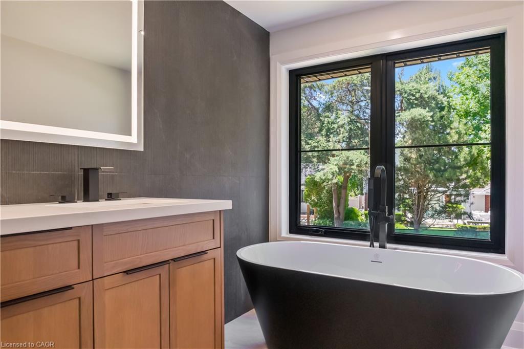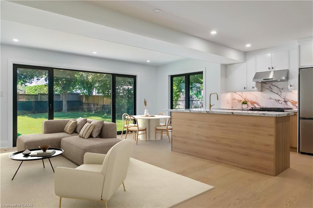 Two Houses in One! This exceptional property presents a uniqueopportunity for multi-generational living or income-generatingpotential with its fully self-contained in-law suite.Situated on aquiet tree-lined street in the highly sought-after Ford area,this impressiveresidence offers over 5,600 square feet of total living space,thoughtfullydesigned to accommodate a variety of modern lifestyles.The main house features 4+1 bedrooms and 5 baths.Step intothe double-height foyer, where a statement chandelier sets the tone for thesophisticated interiors and open concept main living area with separate officearea.The heart of the home is a custom-designed chef’s kitchen,outfittedwith premium Wolf and Sub-Zero built-in appliances,incl a beverage fridge.Anoversized island,wide plank oak hardwood flooring,high-end lighting, and a mainfloor laundry/mudroom with abundant storage complete the main level.Floating stairs lead you to the 2nd level.The principal bdrmfeatures a walk in closet and 5pc spa like ensuite.3 additional bedrooms and2x4 pc bathrooms offer comfort and privacy.The finished lower level includes anadditional 5th bedroom,recreation space, a 4pc bathroom, & rough-in hometheatre area.Connected via the mudroom but also offering aprivate  separate entrance,the second dwelling home offers2,056+ sq ft of thoughtfully appointed living space.The main floorfeatures  living/dining & kitchen area with ss appliances.The 2ndlevel with  principal bdrm,walk in closet and 5 pc ensuite.2 additional bdrmswith shared ensuite access and conventiently located laundry room completesthis level.Fully finished basement with wet bar and 4-piece bath.This home isperfect for extended family or tenants. Set on a large,pool-sized lot,thebackyard awaits your personal touch—ideal for creating a private outdoorretreat.This is a rare chance to be the first owner sincere-construction of this versatile and luxurious property inone of Oakville’s most desirable neighbourhoods. LUXURY CERTIFIED