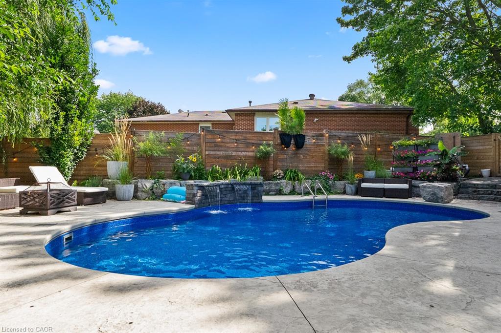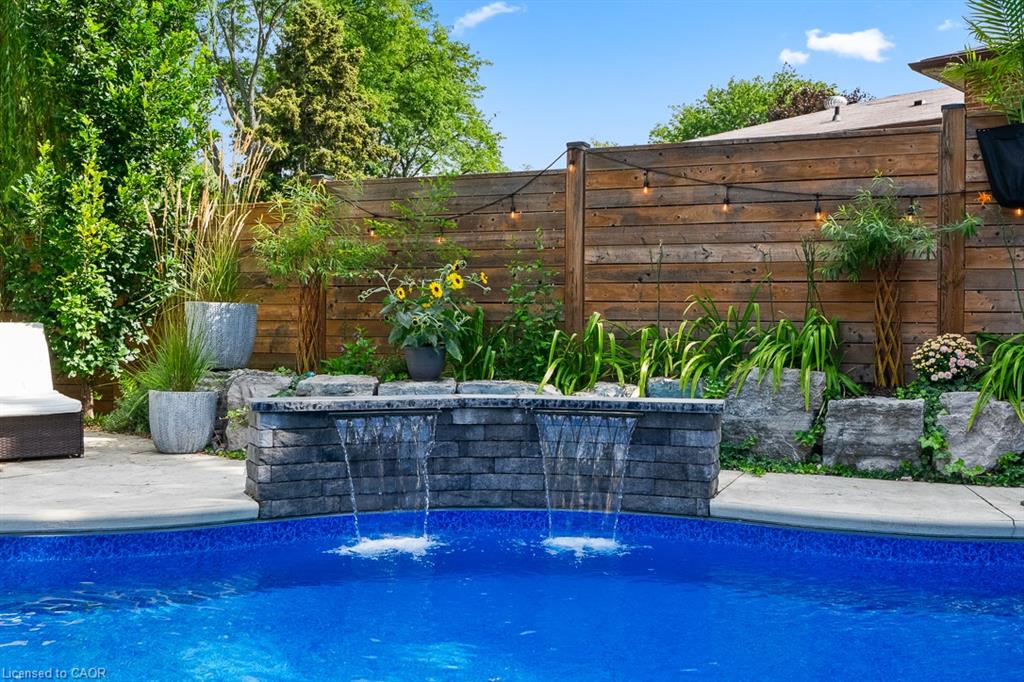 Welcome to this exceptional west-facing residence, tucked away on a quiet court in prestigious Bronte, where timeless elegance meets modern comfort. Set on a large, irregular lot that expands to 110 feet in depth and 107 feet across the back, this home offers a rare combination of privacy and space. Beautifully updated in 2018, the thoughtfully designed layout spans five levels, blending sophistication and functionality throughout. The heart of the home is the open-concept main living area, where natural light pours through oversized windows, seamlessly connecting the custom kitchen with the dining and living spaces. A walkout from the kitchen leads to an entertainers dream - complete with a dedicated barbecue area and inviting outdoor spaces. Upstairs, the luxurious primary suite features a spa-like ensuite and generous closets with custom built-in organizers. Two additional bedrooms, a well-appointed main bath, and a large laundry room complete this level. The main floor family room offers a cozy retreat, opening to a covered terrace enhanced by a hot tub, gas fireplace and TV-ready setup - perfect for year-round enjoyment. The lower level extends the living space with a media room, two bedrooms, and a newly updated full three-piece bathroom, ideal for guests or extended family. Step outside to the expansive backyard oasis, highlighted by a professionally landscaped setting and a sparkling inground pool (2020), creating the ultimate private retreat. This coveted location strikes the perfect balance of tranquility and convenience, just minutes from the Lake Ontario waterfront, shopping, the Bronte GO Station, and top-rated schools. Surrounded by upscale custom homes, this property presents an extraordinary opportunity to live in one of Oakville's most desirable neighbourhoods.