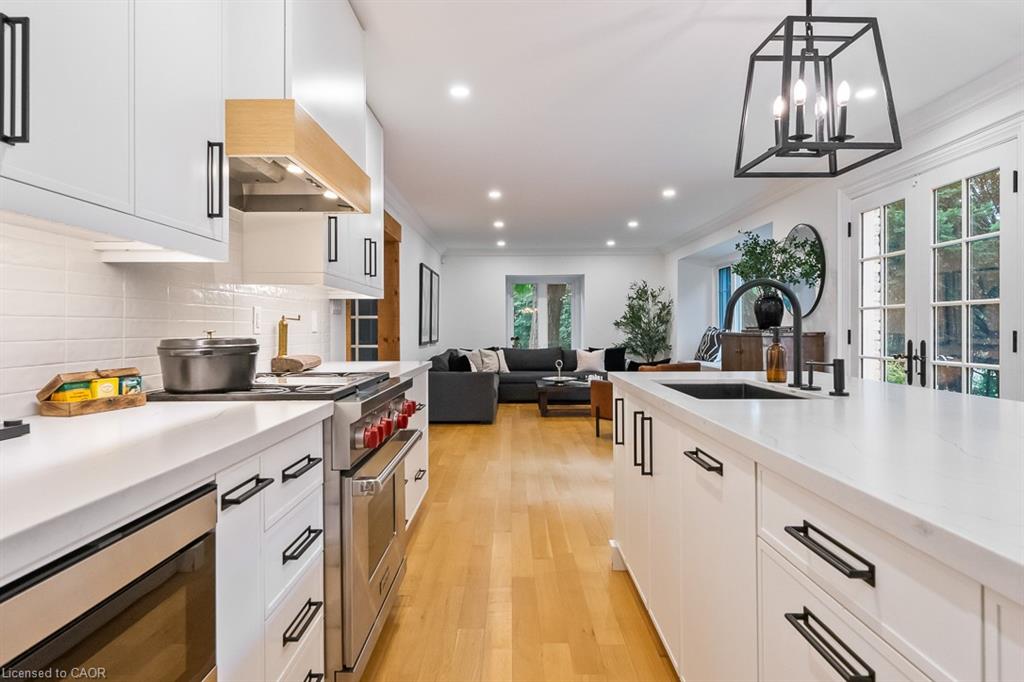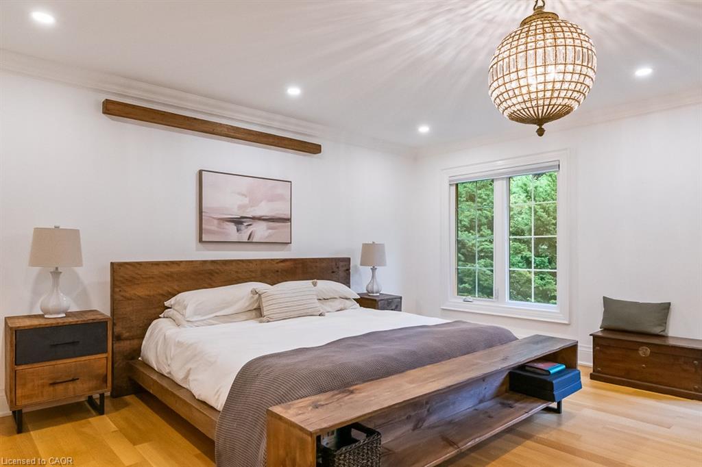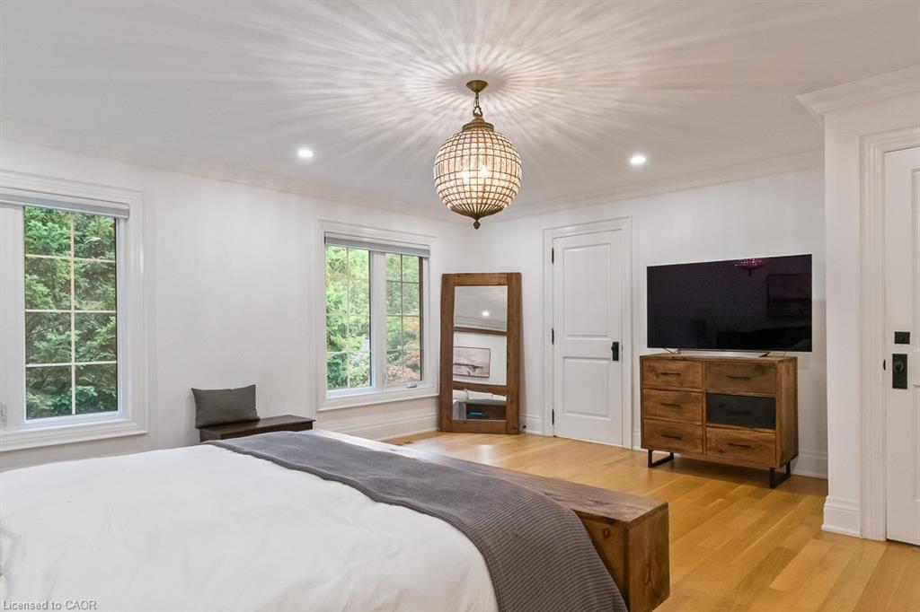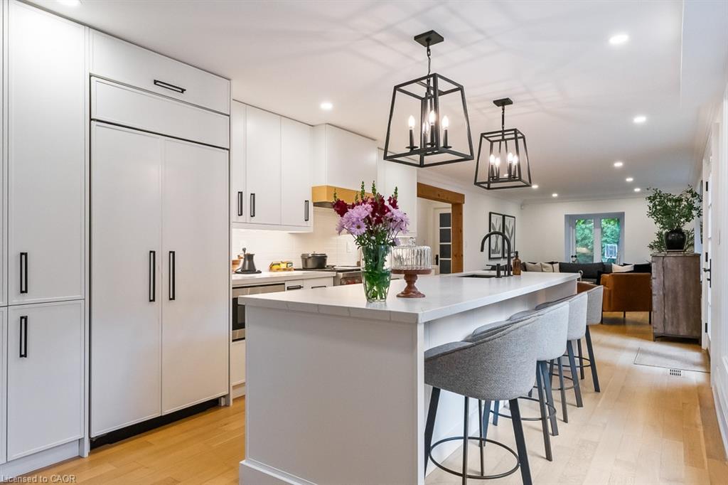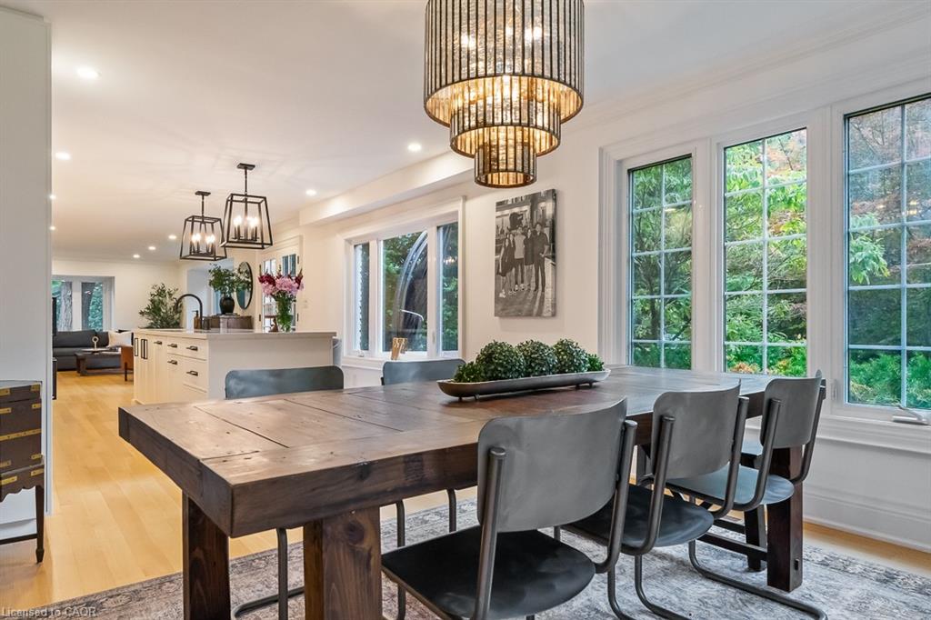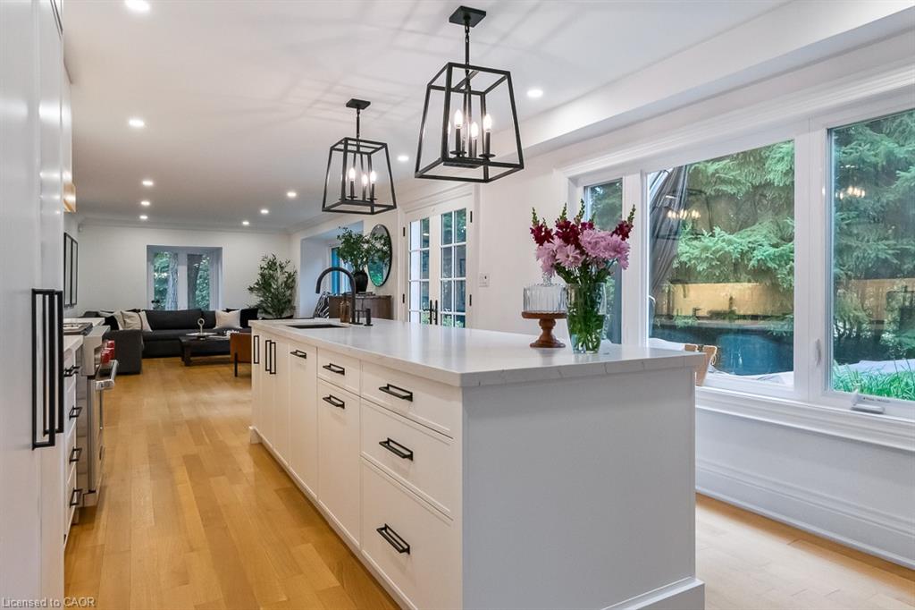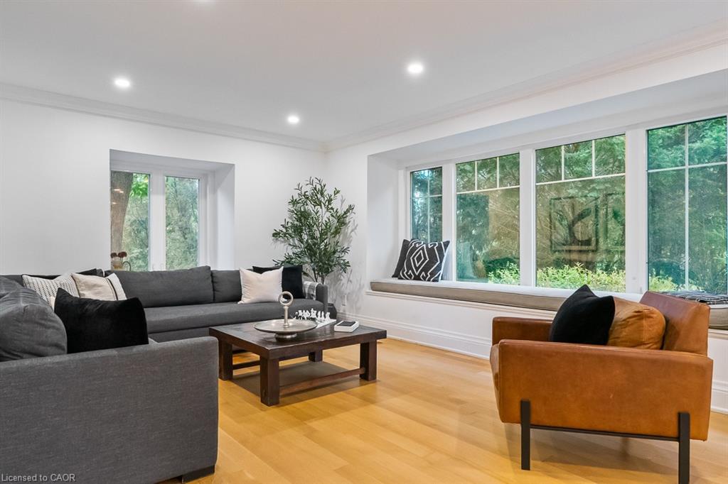 Welcome to 138 Cavendish Court, nestled in Oakville’s coveted Morrison neighbourhood. Set on a private 0.42-acre lot at the end of a quiet cul-de-sac, this extensively updated residence combines refined style with everyday livability. Featuring 4+1 bedrooms, a 3-car garage, and nearly 4,500 sq. ft. of finished space, it represents a rare opportunity in this prestigious community. The main level showcases a bright, free-flowing layout with natural oak flooring and oversized windows that flood the home with natural light. The Living Room with gas fireplace feature wall opens to the Dining Room for formal or casual gathering. Ideal for culinary enthusiasts and entertainers alike, the designer kitchen showcases a beautiful quartz island, Wolf and Sub-Zero appliances, along with custom cabinetry. The adjacent family room, framed by nearly full-height windows and a cozy built-in bench, overlooks the landscaped backyard and pool area. A private office, stylish powder room, and functional mudroom complete this floor. Upstairs, the primary retreat features a spa-inspired 5-piece ensuite and spacious walk-in closet. Three additional bedrooms, and two updated bathrooms (one bedroom with private ensuite) provide convenience for families' busy lives. The finished lower level offers exceptional versatility, with an industrial design flare including a 5th bedroom, 3-piece bath, recreation/media room, and billiards/fitness space. Outdoors, enjoy your own backyard haven with concrete salt water pool, integrated spa, and extensive landscaping surrounded by mature trees for ultimate privacy—bringing a Muskoka feel to the city. Ideally located near the lake, parks, shopping, top-rated schools, and only minutes to downtown Oakville, the GO Train, and highways, this home delivers an unmatched blend of luxury and privacy for family living.