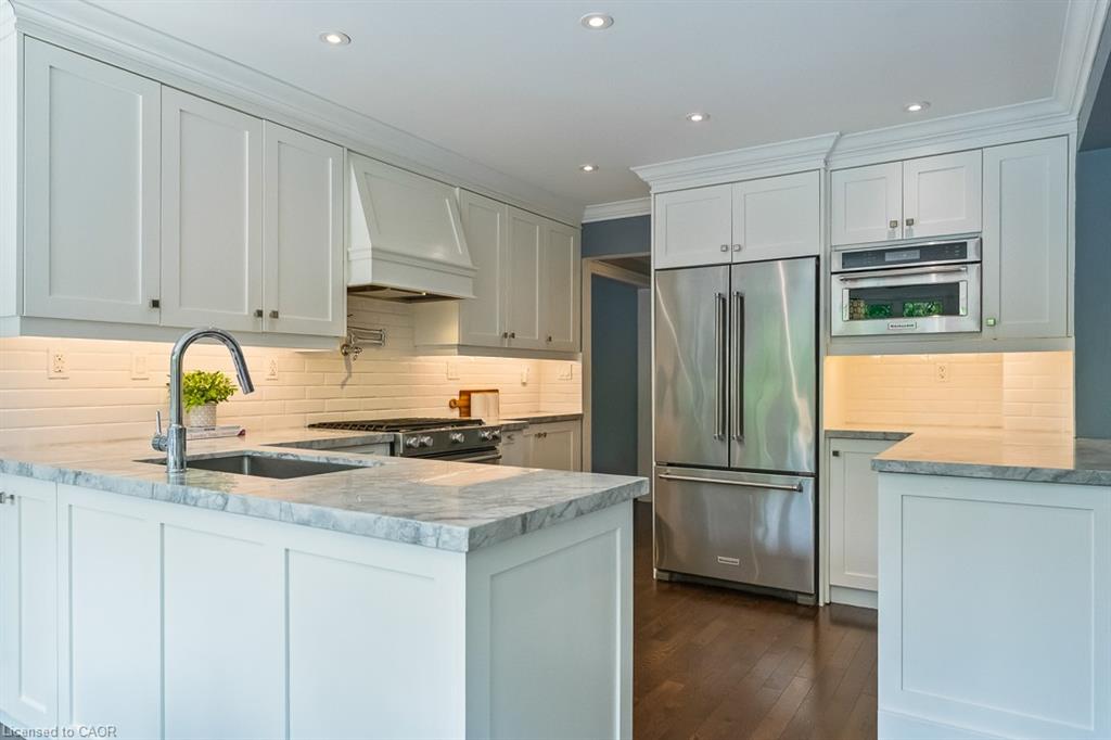 Welcome to beautiful 484 Aspen Forest Drive. This elegant 4+1 bedroom, 4 bathroom executive home has been meticulously updated top to bottom, and sits on a professionally landscaped lot in Oakville's prestigious Ford Eastlake neighborhood. The highlight of this home is the spectacular private backyard - your own slice of paradise featuring a saltwater pool alongside a covered lifetime deck with gas fireplace and outdoor TV, perfect for entertaining. The integrated hot tub, professional landscaping and inground irrigation, add the perfect finishing touch to this outdoor sanctuary. Step inside to discover a warm and inviting space, featuring an updated eat-in kitchen, that opens directly to your backyard paradise. Spacious dining and living areas, plus a main floor laundry room and walk-in access from the garage complete this level. Upstairs, the spacious primary bedroom suite includes a luxuriously renovated spa-like ensuite, three additional bedrooms and a beautifully updated main bathroom. The finished lower level adds incredible versatility with a sizable recreation room, 4 pc bath, and large bonus room - perfect as home office, fitness space, or fifth bedroom. Located in the coveted Ford Eastlake community, you'll enjoy proximity to top-ranked schools, beautiful parks and ravine trails, convenient transit connections, and access to Oakville's premium downtown shopping area. From the stunning backyard oasis to comprehensive interior updates on every level, this move-in ready gem delivers style, functionality, and prime location ready for you to make your own dreams come true and create lasting memories from day one.