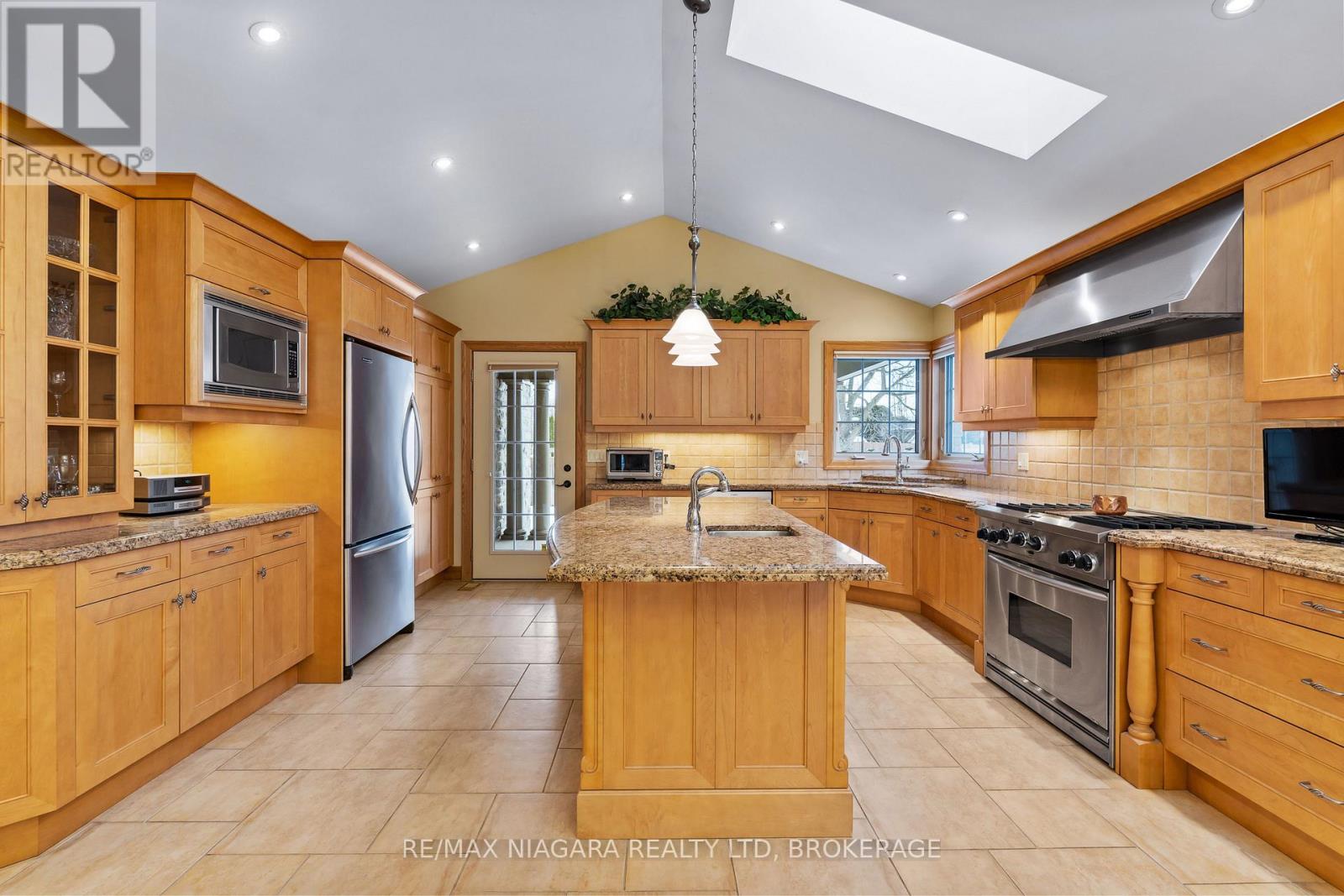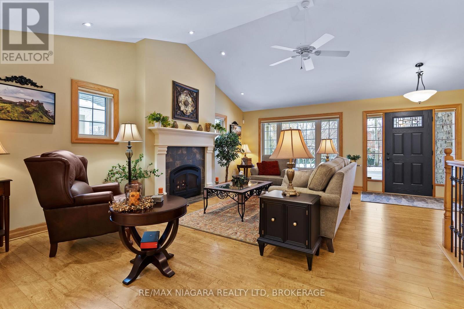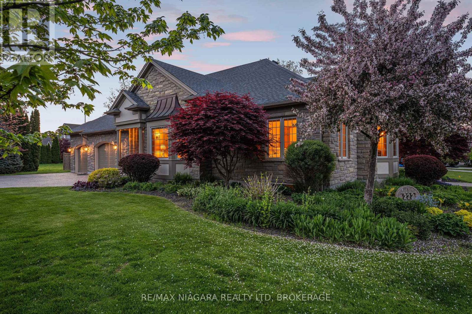 Welcome to 222 Four Mile Creek Road, a stunning custom bungalow in the heart of St. Davids, Niagara-on-the-Lake. This fully stone-built home offers 1,876 sq. ft. of meticulously designed living space on the main floor, featuring 12 ceilings, solid oak trim and doors, and a custom maple hardwood kitchen with granite countertops, porcelain floors, a pantry, three sinks, and a skylight. The spacious 3-bedroom, 3-bathroom layout includes a gas fireplace, main floor laundry, and a fully finished lower level with a massive cold room, den, and plenty of storage. The 2.5-car garage is equipped with A/C, a drain, and 220-volt service, with a Generac backup generator for full-home coverage. The expansive 9-car driveway offers ample parking. Outdoors, enjoy a covered patio with a fan and gas hookup, plus an outdoor tool shed for additional storage. Nestled in one of Niagara's most prestigious communities, this home provides easy access to world-renowned wineries, golf courses, fine dining, top-rated schools, scenic walking trails, and quick highway access. Experience the perfect blend of luxury, comfort, and convenience in this exceptional St. Davids property. (id:52316)