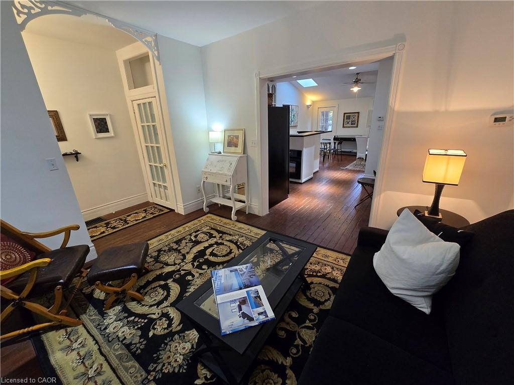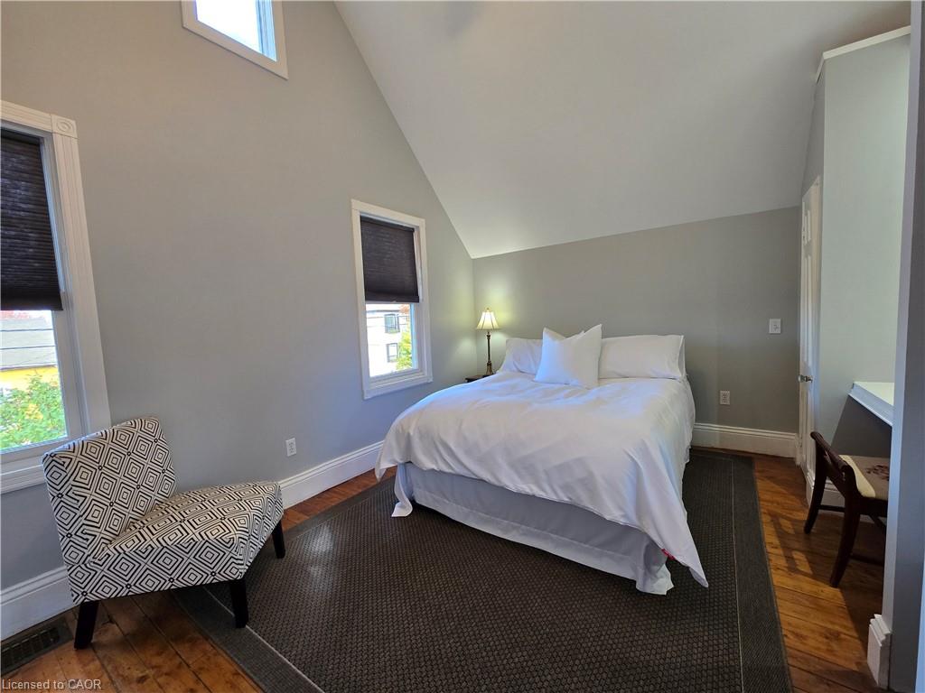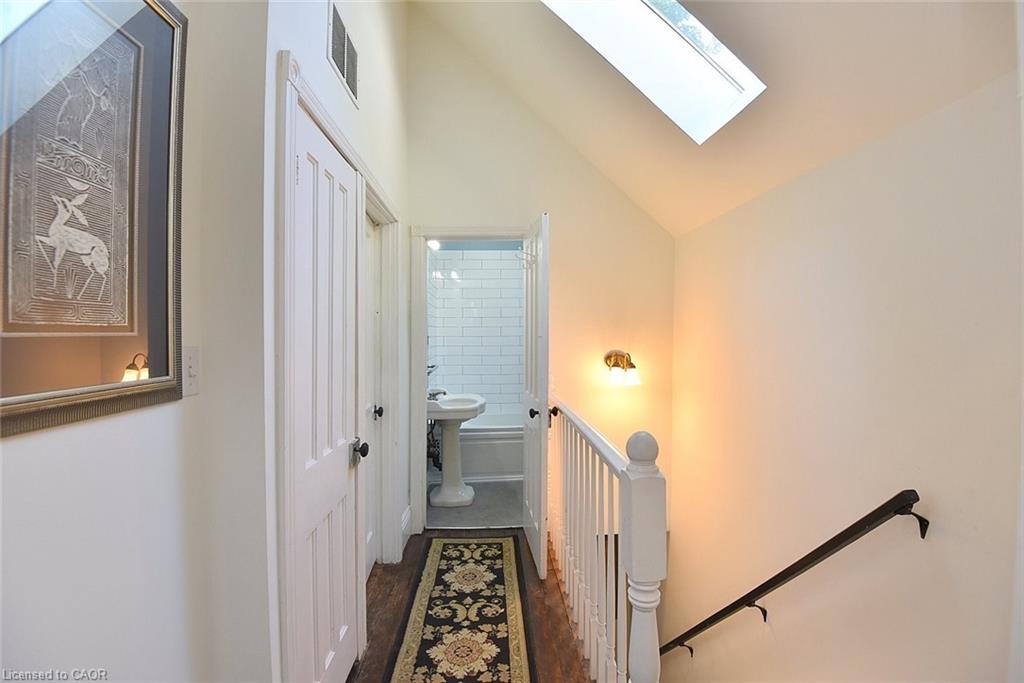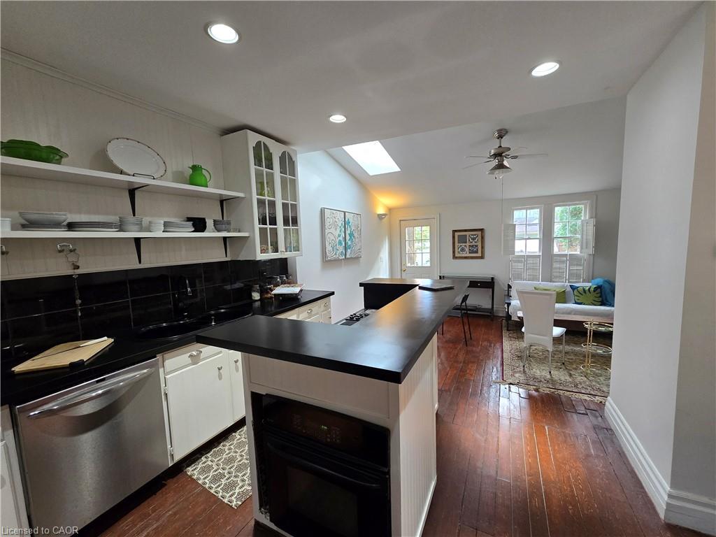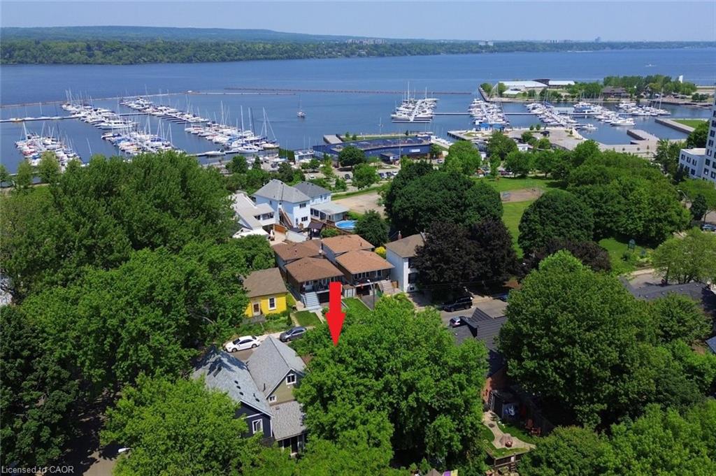 Turnkey move-in ready, furniture can be included! 40 acres of panoramic Bayfront views, parks, trails, sailing, hiking, biking & restaurants- all steps from this charming 2 storey century cottage. Lovely front porch for your morning coffee. Open concept main floor with vaulted ceiling & skylights at the rear. Large kitchen island with Jenn Air cooktop grill & griddle with downdraft exhaust fan. Gas fireplace in cozy front living room. Primary bedroom created by joining 2 smaller rooms, has vaulted ceiling & loads of closets. 2nd bedroom overlooking rear yard. Newly tiled primary bathroom with soaker tub. Main floor powder room. Lower level den makes for a perfect home office with oversized egress window. Backyard is low maintenance with two-tiered deck with perimeter gardens & storage shed. Easy walk to West Harbour GO with full day service to Toronto, James St shopping, farmer’s market. Quick 403 & QEW access. Your home and year round retreat awaits you!