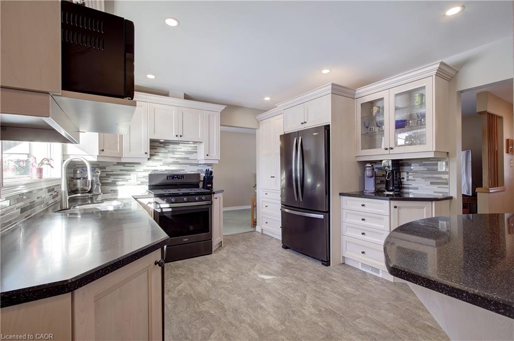 Immaculately maintained and truly move-in ready, this home offers an exceptional blend of comfort, functionality, and thoughtful updates throughout. The updated kitchen is designed for both everyday living and entertaining, featuring abundant cabinetry and counter space, stainless steel appliances including a gas stove, and an oversized pantry with convenient pull-out drawers for optimal organization. A separate dining room provides the perfect setting for family meals and gatherings, while the bright living room showcases a large picture window that fills the space with natural light. The upper level offers generously sized bedrooms with ample closet space and an updated bathroom. The finished lower level adds valuable additional living space, ideal for a family room, along with a versatile bonus room perfect for a home office, playroom, or workout space. Laundry room with extra storage and included freezer. The crawl space has been professionally spray-foamed and provides easily accessible storage. Outside, enjoy a private backyard with easy-to-maintain landscaping and generous garden space, offering the perfect balance of relaxation and usability. Additional highlights include a newly completed front walkway (2025), a 12 x 12 shed with electrical on a concrete pad, gas BBQ included, and parking for up to four vehicles. Ideally located close to schools, parks, shopping, public transit, and major highways.