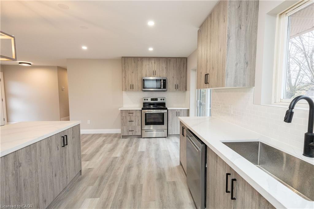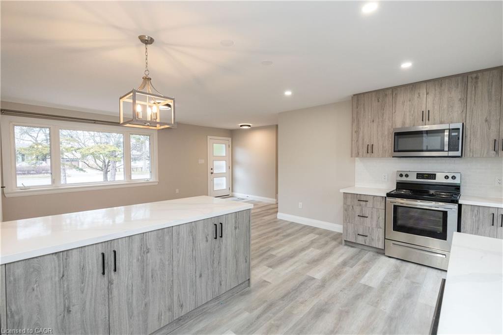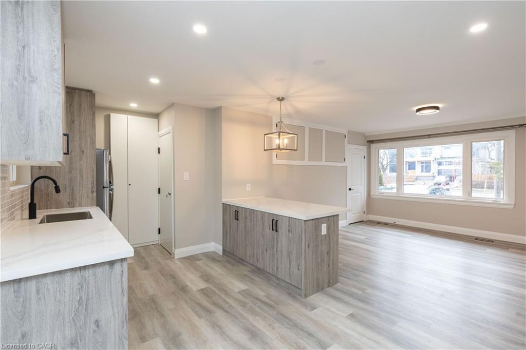 Welcome to the main level of this beautifully updated bungalow in desirable South Oakville. Featuring a bright, open-concept layout, this home offers a recently updated kitchen with ample cabinetry, stone countertops, a large island, and stainless steel appliances. The spacious living area is filled with natural light from oversized windows and includes additional storage, creating a comfortable and functional space for everyday living. This level features three well-sized bedrooms, a full bathroom, and the convenience of in-suite laundry. Neutral flooring and fresh paint throughout provide a clean, modern feel that’s move-in ready. Ideally located close to top-rated schools, parks, trails, shopping, hospital and everyday amenities. Easy access to transit and major highways makes commuting simple, while enjoying a quiet, family-friendly neighbourhood.