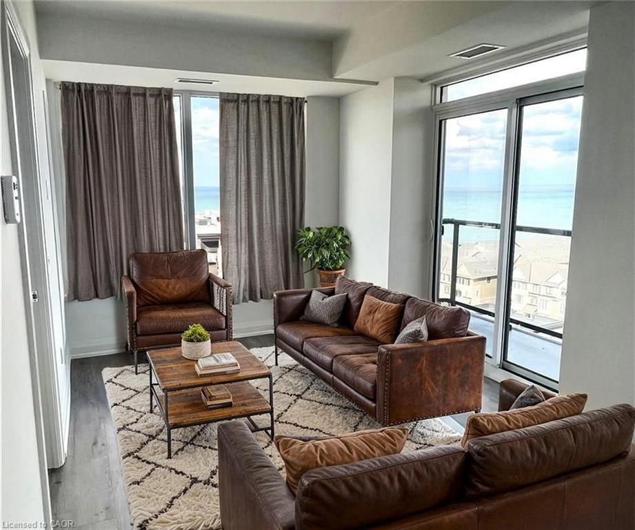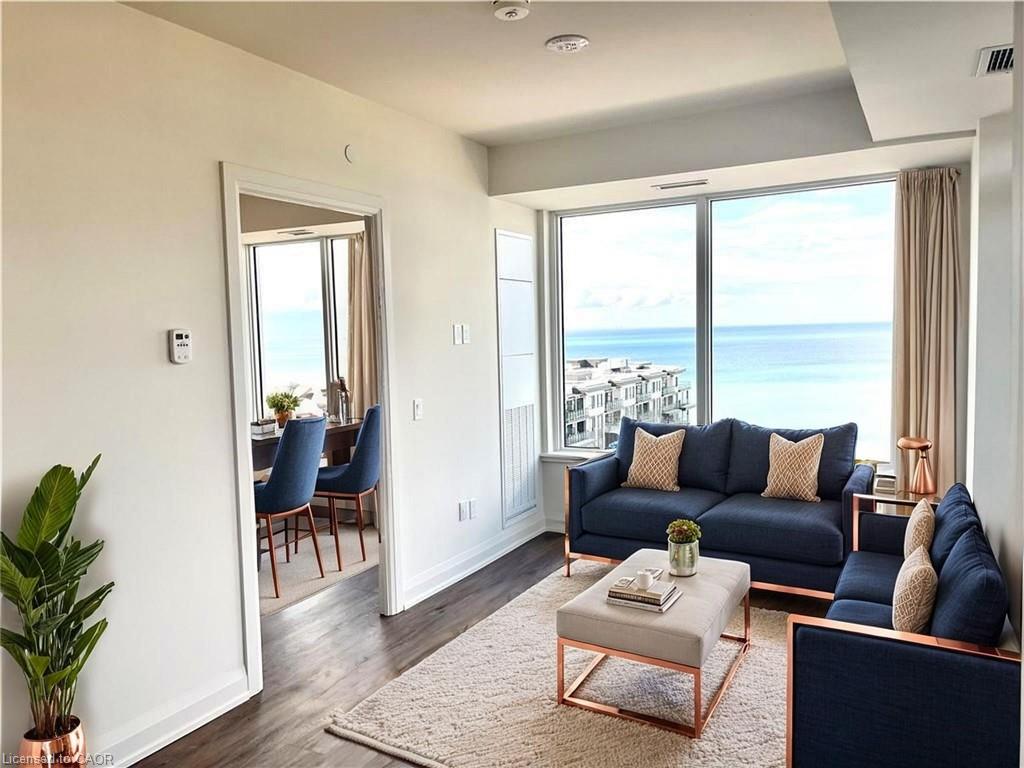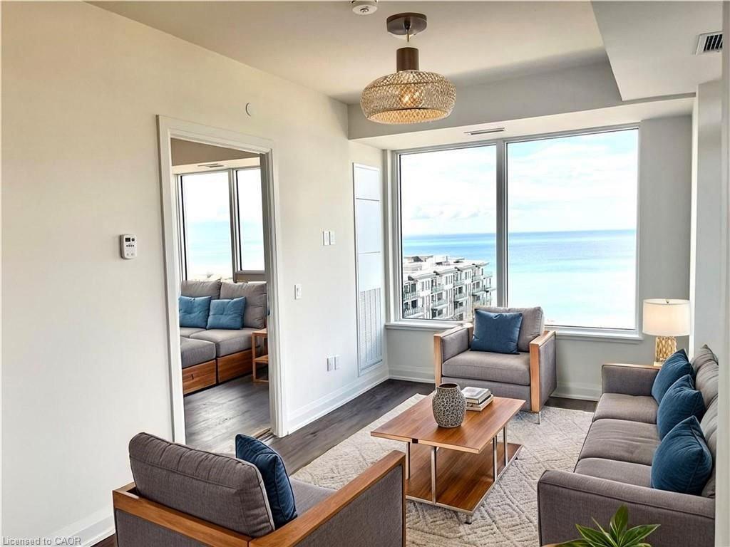 Sweet 2 Bedroom, 2 Bathroom (Including Ensuite) Condo For Lease with Views of the Lake and Escarpment. Modern Odyssey Building at Casablanca Blvd near Restaurants, Costco, Shops, Beach Front, QEW & Go Transit. Low Maintenance Lifestyle. Includes Stainless Steel Kitchen Appliances, Quartz Countertops, Vinyl Plank Flooring, Plenty of Natural Light, Long 20' Open Balcony, In-Suite Laundry & Access to the Gym, Yoga Studio, Pet Spa, Party Room w/ Rooftop Terrace & Concierge. Storage Locker #355, Underground Parking Space #216. Condo is Smoke Free Building. Condo is Available Immediately. Longer Term Lease Option Available. Click the URL Link to access "RESTYLE" to Stage and Design each room to your liking. RSA.