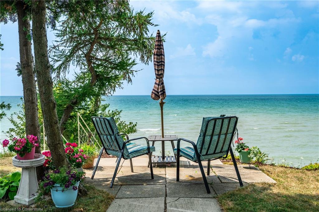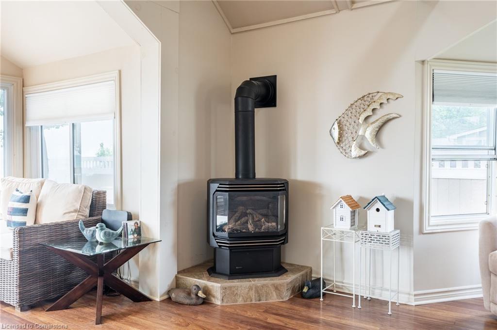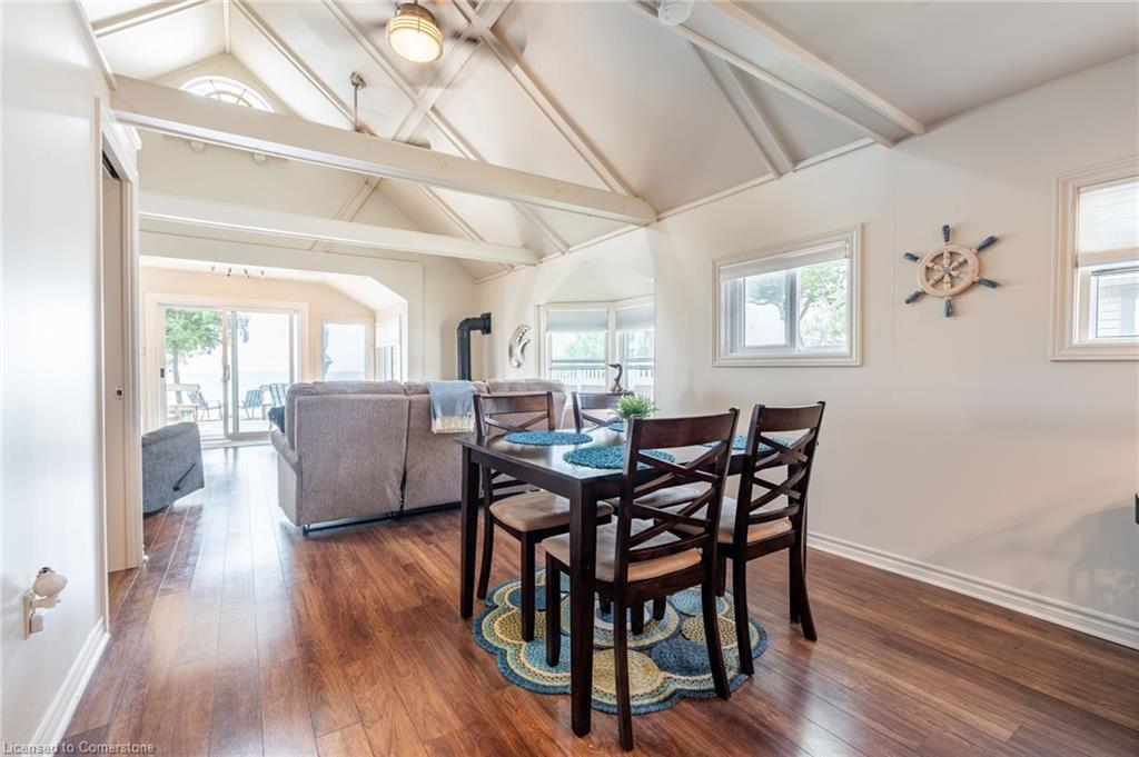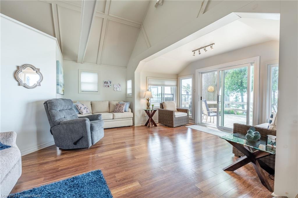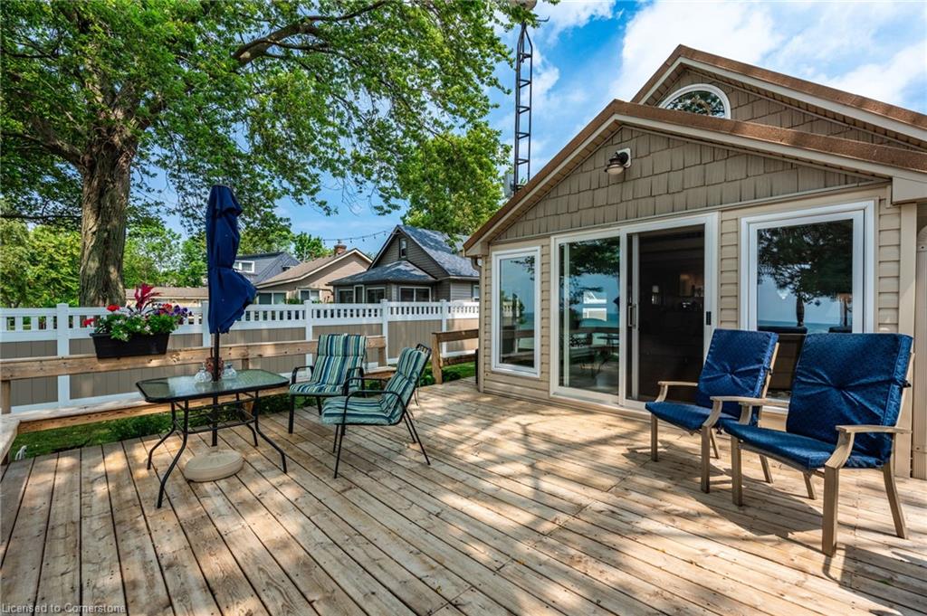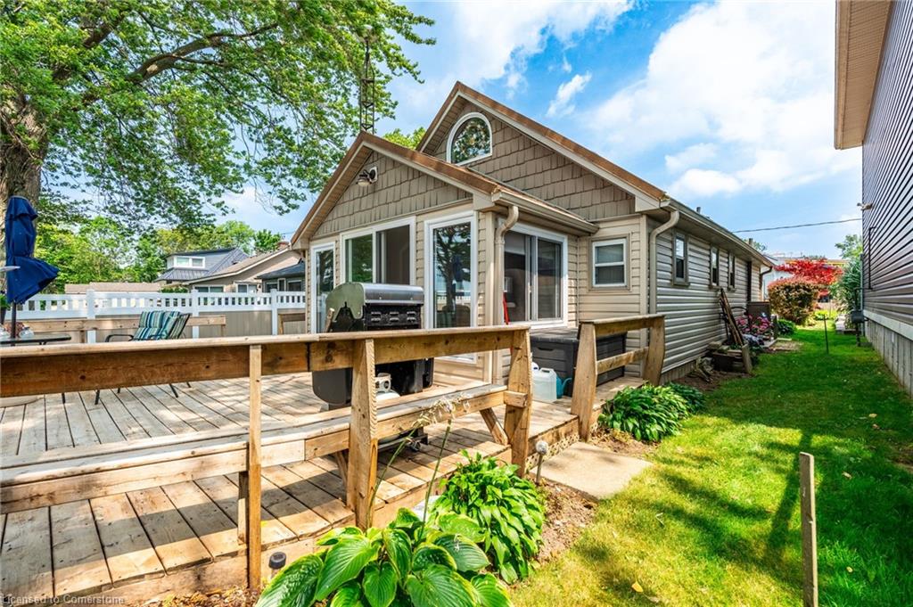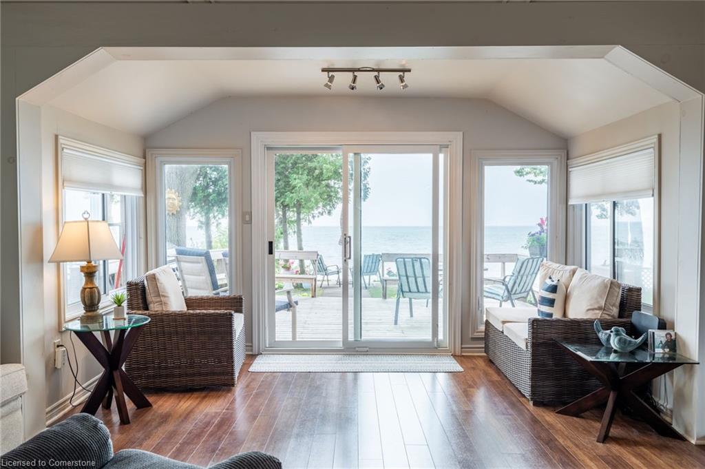 Clean, move in ready 4 season home directly on LAKE Erie in the friendly Peacock Point Community ! Just unpack your clothes and food and start enjoying life on the LAKE! This charming home offers year-round comfort and features a well-appointed kitchen with ample cabinetry, generous counter space, and stainless steel appliances. Open concept living area with WATER and sky views of the LAKE. Keep warm with the natural gas fireplace, perfect for relaxing evenings! Modern 3-piece bathroom adds convenience. You'll love the spacious loft- ideal for extra guests, sleeping bedroom area or a retreat, or home office. Situated directly on Lake Erie, this waterfront property boasts stunning lake views where you can feel the refreshing lake breeze from your front or rear deck plus lower patio & the second outdoor seating area. Additional highlights include a cistern for fresh water PLUS water is provided from Spring to Fall by the Peacock Point Community water system, (yearly cost = $315.00) Recent, professionally built concrete Break Wall with steel stairs to the sand and gravel Lake Erie Beach! Steel roof (2019). Fence 2024. Parking for up to three vehicles. Holding tank for waste water. Hot water tank owned. Natural gas (not propane). This turn-key getaway is a rare opportunity—don’t miss your chance to own a beautiful slice of lakeside paradise! Flexible closing! Enjoy your new home on Lake Erie NOW! Recent survey available.
