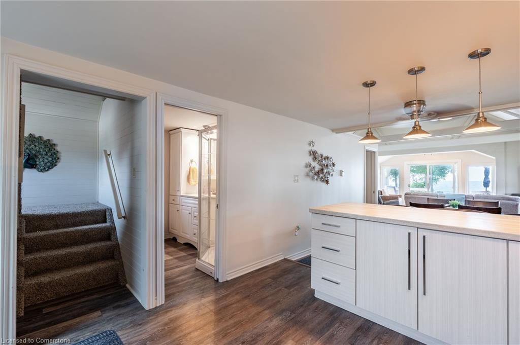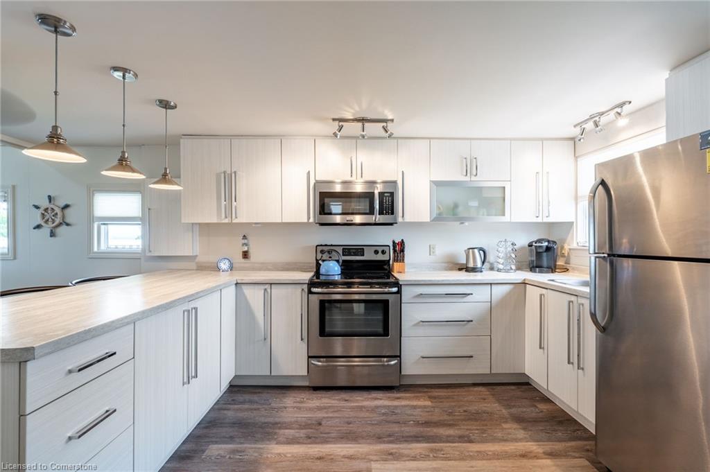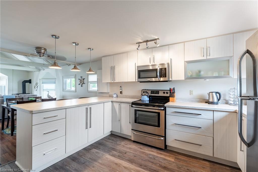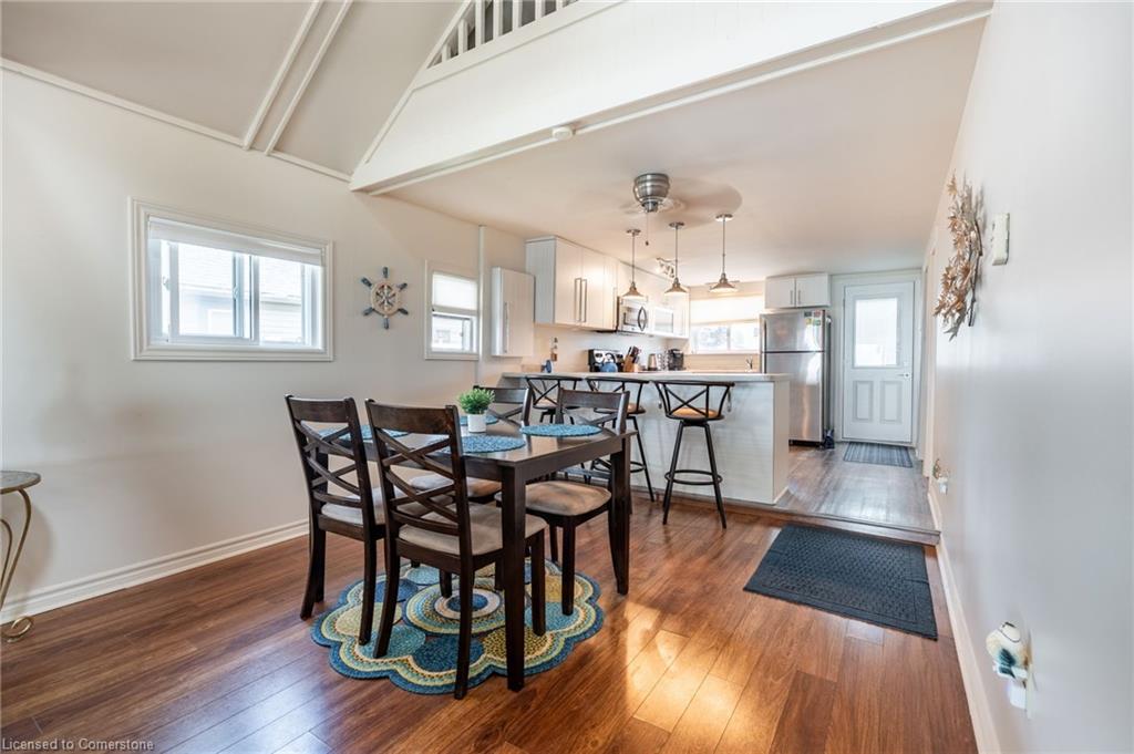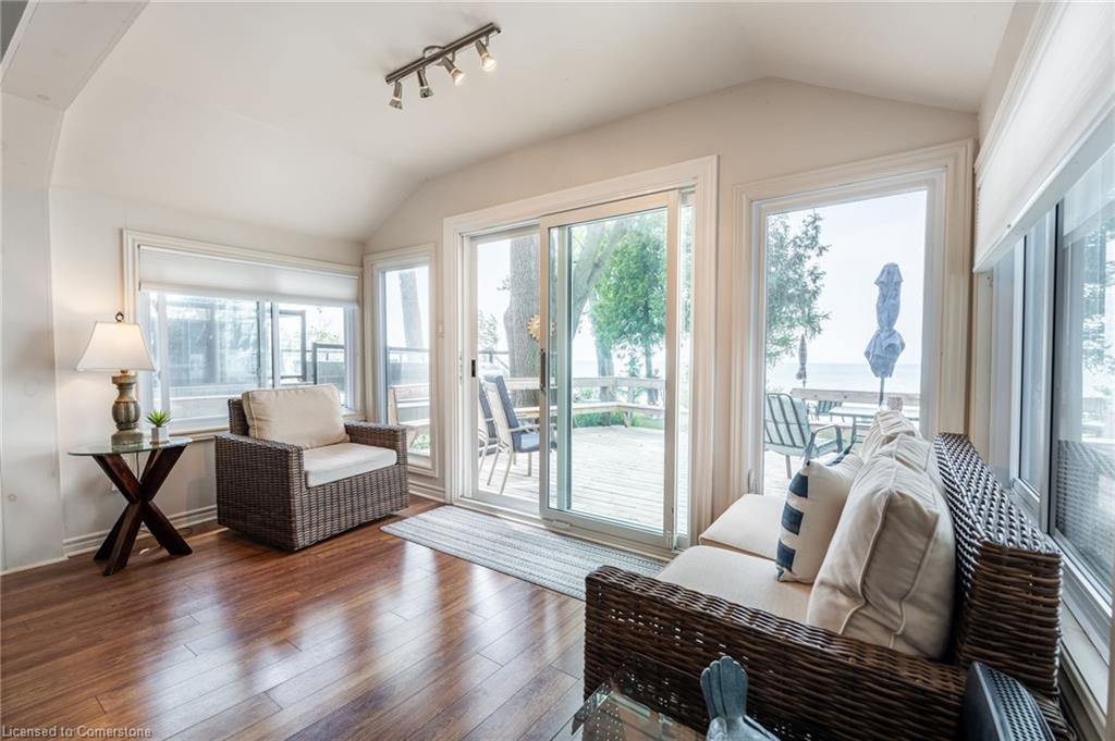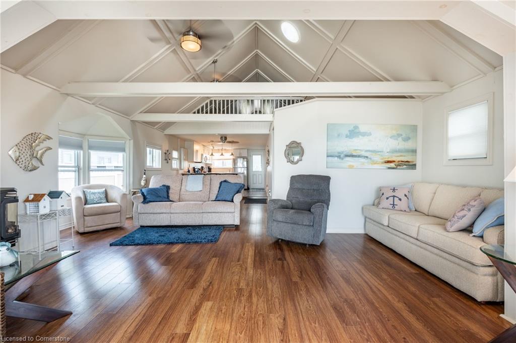 Clean, move in ready 4 season home directly on LAKE Erie in the friendly Peacock Point Community ! Just unpack your clothes and food and start enjoying life on the LAKE! This charming home offers year-round comfort and features a well-appointed kitchen with ample cabinetry, generous counter space, and stainless steel appliances. Open concept living area with WATER and sky views of the LAKE. Keep warm with the natural gas fireplace, perfect for relaxing evenings! Modern 3-piece bathroom adds convenience. You'll love the spacious loft- ideal for extra guests, sleeping bedroom area or a retreat, or home office. Situated directly on Lake Erie, this waterfront property boasts stunning lake views where you can feel the refreshing lake breeze from your front or rear deck plus lower patio & the second outdoor seating area. Additional highlights include a cistern for fresh water PLUS water is provided from Spring to Fall by the Peacock Point Community water system, (yearly cost = $315.00) Recent, professionally built concrete Break Wall with steel stairs to the sand and gravel Lake Erie Beach! Steel roof (2019). Fence 2024. Parking for up to three vehicles. Holding tank for waste water. Hot water tank owned. Natural gas (not propane). This turn-key getaway is a rare opportunity—don’t miss your chance to own a beautiful slice of lakeside paradise! Flexible closing! Enjoy your new home on Lake Erie NOW! Recent survey available.