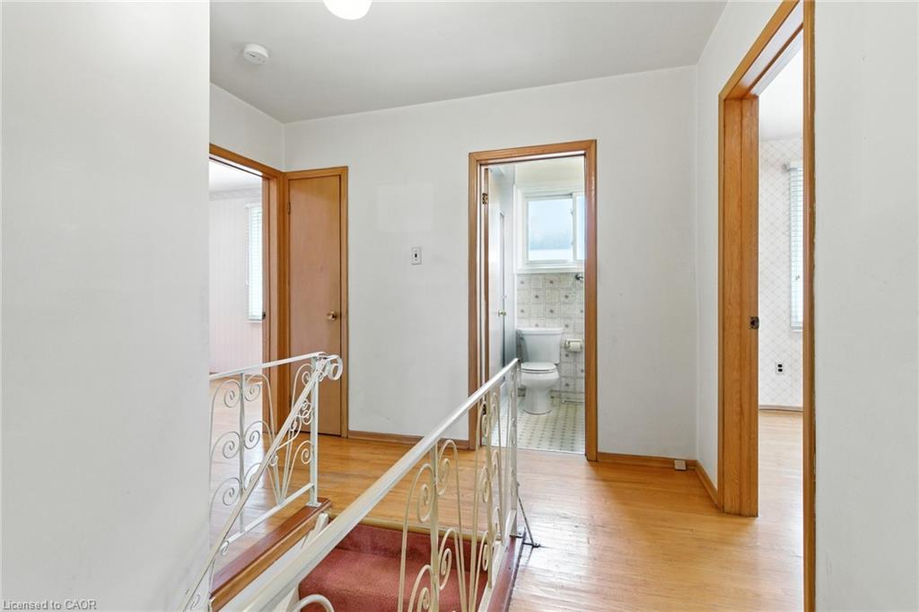 Welcome to 18 Jasper! Your private Stoney Creek sanctuary. Discover a truly peaceful living experience in this charming 4-bedroom home, nestled on a sun-filled corner lot in Olde Towne Stoney Creek. This private and quiet location offers the perfect blend of suburban tranquility and convenient urban access. Move-in ready interior Step into a home bathed in natural light, where a huge kitchen awaits the family chef. The kitchen features a generous center island, a convenient wall oven, and ample cupboard space for all your storage needs. Enjoy the comfort of 4 spacious bedrooms and 1.5 baths, including a 3-piece bathroom with a modern walk-in shower. The fully finished basement adds significant living space, perfect for a media room, home gym, or children's play area. Prime corner lot with exceptional parking The exterior is designed for low-maintenance living and maximum convenience. This corner lot offers a private, pool-sized backyard, ideal for entertaining or creating your dream outdoor oasis. A concrete driveway provides parking for up to four cars, in addition to the attached garage. The recent 2020 roof and shingle replacement, along with new gutter guards, provide peace of mind for years to come. Unbeatable location and amenities Your new home is in a highly sought-after neighbourhood, with a one-minute walk to the bus stop and easy access to the QEW and the new Centennial GO station, making any commute a breeze. Enjoy the walkability to local schools, including St. Martin of Tours, Collegiate Elementary, St. John Henry Newman, and Orchard Park Secondary. For all your shopping needs, Fiesta Mall and Eastgate Square are just minutes away. Experience the very best of Stoney Creek living in this lovingly maintained home. Schedule your private tour today!