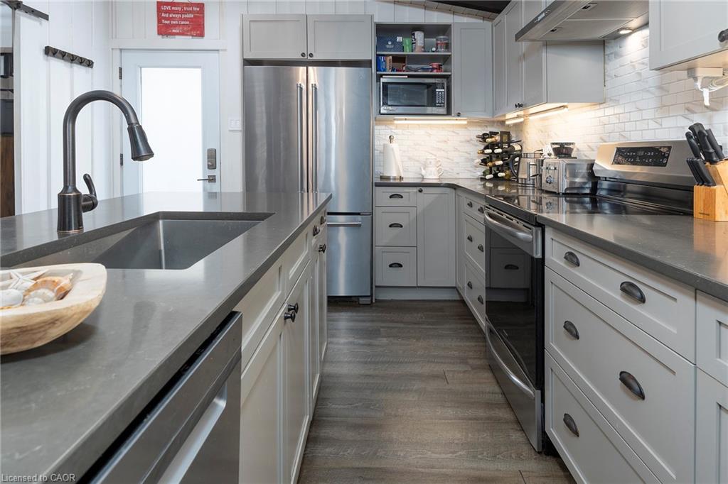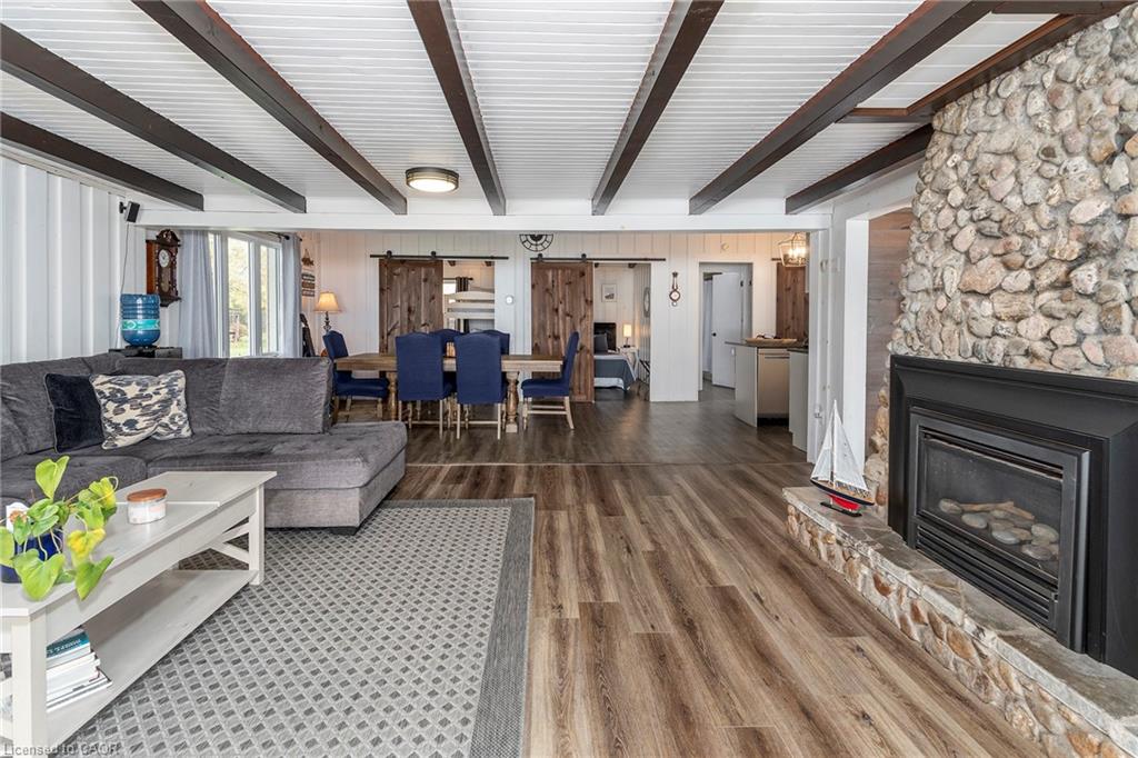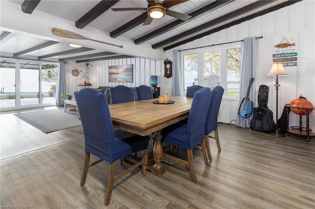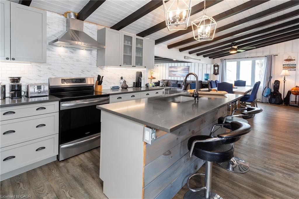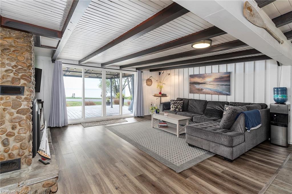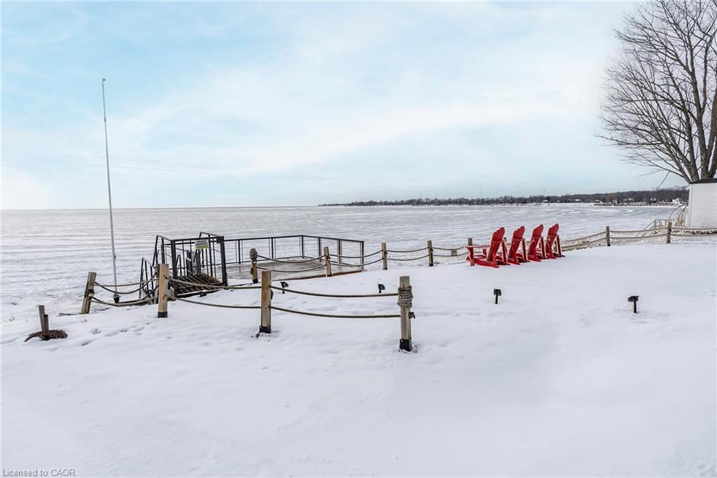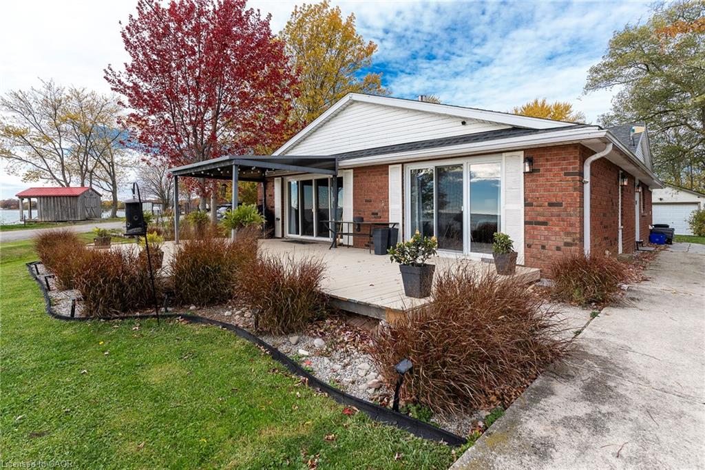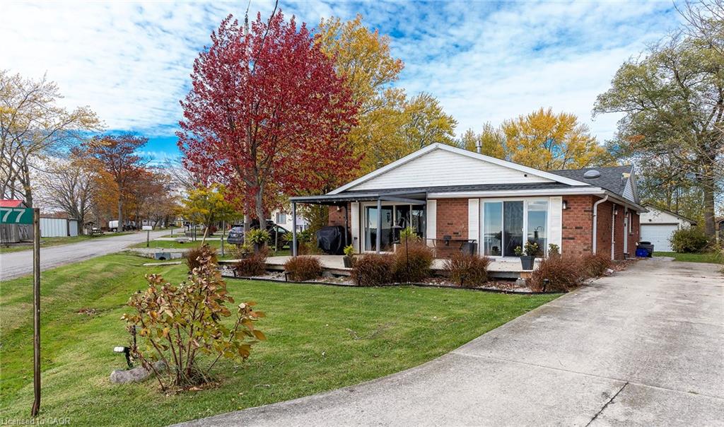 BREATHTAKING Waterfront views at your year round LAKESIDE OASIS. Check out this spacious 4 Bed, 2 Bath Bungalow with Detached Garage! You will be wowed by this one offering privacy, tranquility and peaceful living and inside offers high ceilings, large windows for plenty of natural light and amazing views. The open concept is perfect for entertaining family and friends. The spacious liv rm with FP offers a perfect space for family movie and game nights. The Kitchen is a showstopper with S/S appliances, modern backsplash, stone counters and a lg island w/extra seating and storage. The master bedroom is a real retreat with your own patio door to the large deck with stunning water views. There are also 3 more spacious bedrooms for your family and friends. Saving the best for last is the outside of this spectacular home with the expansive deck-perfect for enjoying your morning coffee or evening wine, family dinners or just watching the waves crash in. The large backyard also offers a spacious fire pit area, horseshoe area and plenty of room for games. The bonus is your own private beach access & deck, perfect for those that love the peace & tranquility of the water all year long. You are also close to trails, golfing and all the conveniences of Dunnville are just moments away. Don't miss this fantastic property that offers EVERYTHING you need, beautifully renovated, spacious floor plan, large yard and lakeside retreat.