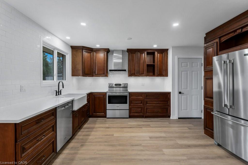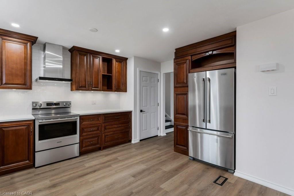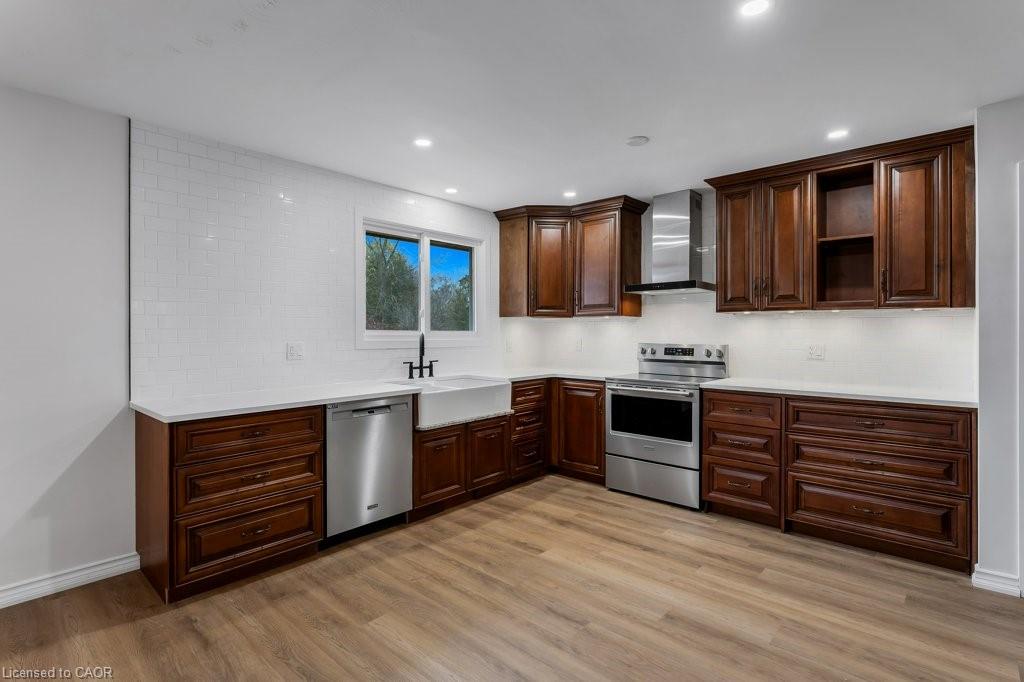 Welcome Home to 14 Orchard Crescent. Wonderful 3+1 bedroom, 2 bath backsplit with Full In-Law Suite in the picturesque town of Waterford — a perfect opportunity for multi-generational living. The main level affords a recently refreshed eat-in kitchen, brand-new flooring and new windows installed (2024). (Front window replaced previously). Upstairs you will find 3 bedrooms with new flooring, in-suite laundry, and a full bath. Head down to the first lower level where you’ll find a spacious family room with woodstove, large above-grade windows, and a second kitchen with breakfast bar. Private entrance to the backyard makes this a complete in-law suite. A versatile 10’x16’ bunkie/mancave/she-shed for hobbies or relaxation. Oversized pie-shaped lot on a quiet crescent with parking for 5, plus garage. Get ready to explore the Waterford Ponds, Heritage Trail, antique markets & local breweries. Conservation areas nearby for paddling, fishing, or simply enjoying the peaceful countryside. Note: some pictures are virtually staged.