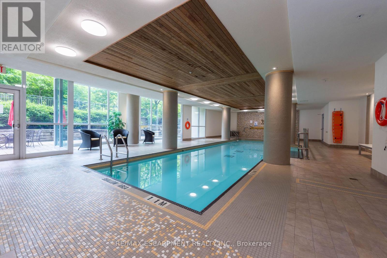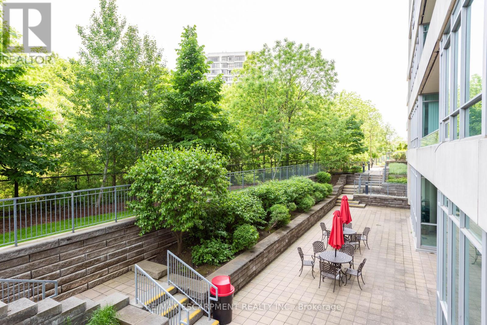 Welcome to Stonebrook Condominiums in the Heart of Clarkson! Highly sought-after and move-in ready, this 1 Bedroom + Den suite offering modern finishes and an exceptional layout. This bright, sun-filled unit features 9' ceilings, hardwood floors, upgraded light fixtures, and ample storage throughout. The contemporary kitchen is equipped with premium stainless steel appliances, granite countertops, a modern backsplash, and a breakfast bar overlooking the open-concept living and dining area - ideal for entertaining. Step out to the large private balcony and enjoy beautiful southern views, perfect for morning coffee or evening relaxation. The spacious primary bedroom includes large windows, a double-door closet, and ensuite privileges to the spa-inspired 4-piece bath featuring a modern vanity, tiled tub, and a separate glass-enclosed shower. The versatile den, enclosed with glass doors, provides an ideal space for a home office, library, or hobby room. Finished in designer colours, this suite showcases true pride of ownership. Outstanding building amenities include a fitness centre, indoor pool, sauna, party room, theatre, games room, guest suite, and 24-hour concierge. **EXTRAS** Bell cable and internet included in maintenance. Parking and locker included. Prime Clarkson location - walking distance to shops, restaurants, Clarkson GO Station, parks, schools, and minutes to major highways. Luxury, convenience, and lifestyle - all in one address! (id:52316)