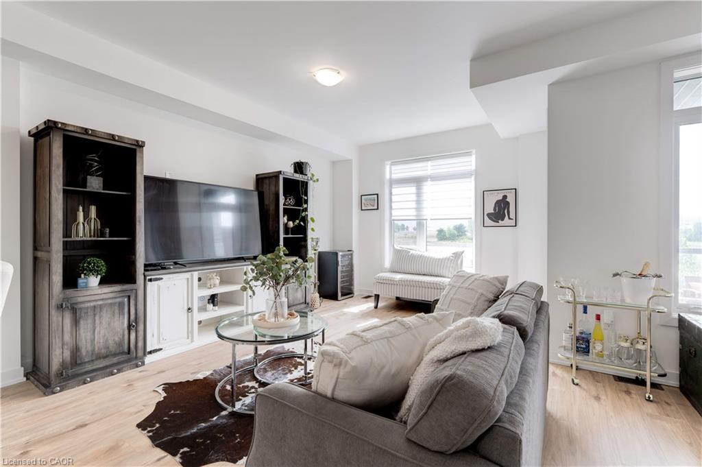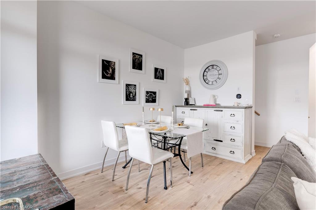 This rare freehold townhome offers nearly 1,300 sq. ft. of thoughtfully designed space in the sought-after Fifty Point / Community Beach area – just a short walk to the lake and seconds to the QEW. Tucked into a friendly neighbourhood and surrounded by parks, trails, and the harbour, it blends convenience with a relaxed, recreational vibe. Inside, you’ll find a bright, open-concept main floor with soaring 9-foot ceilings, a practical layout, and tasteful finishes perfect for both everyday living and entertaining. The kitchen features a functional sit-up island, ample cabinet space, and stainless-steel appliances, opening seamlessly to a spacious dining area and a sun-filled living room. Step through sliding doors to a private balcony with unobstructed views – ideal for morning coffee or evening BBQs. Upstairs features a spacious primary suite with a walk-in closet, a generous second bedroom, a stylish 4-piece bathroom, and laundry – all on the same floor for ease of living. The ground level includes a rare oversized walk-in storage room, plus an inside-entry single car garage with automatic door and additional driveway parking. Low monthly fees cover visitor parking, common elements, and snow removal.