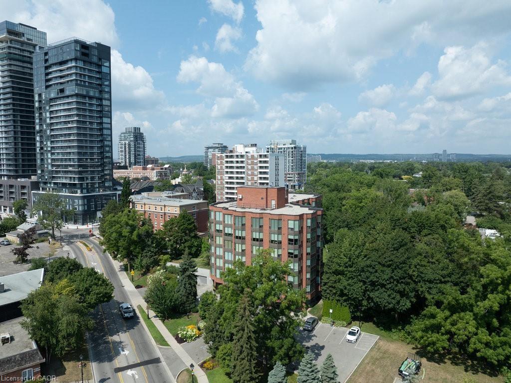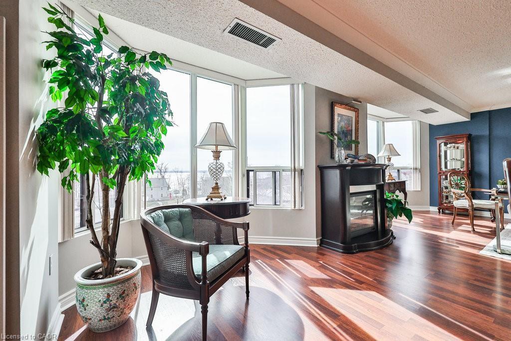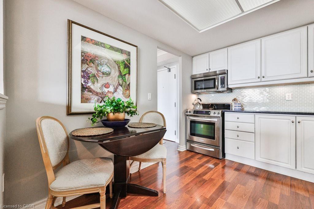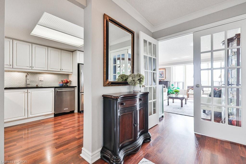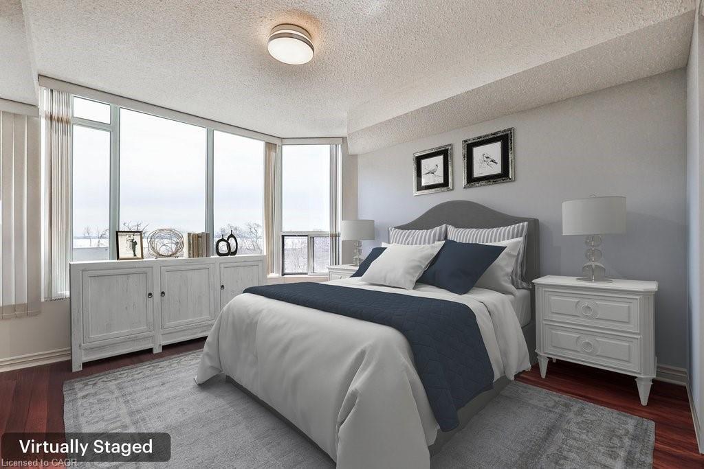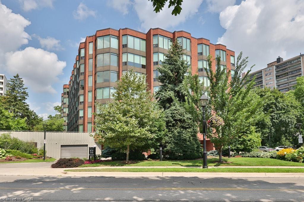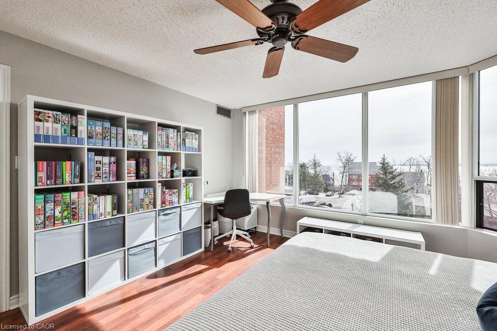 Welcome home. Fabulous downtown Burlington Waterfront living at the Village Gate. Boutique building with only 39 units offering luxury living and a downtown Burlington lifestyle. This 2 bedroom plus den suite is filled with natural light and enjoys lake views from all primary rooms. The spacious living and dining room is ideal for entertaining family and friends, the den with French doors offers a flex space for a home office or cozy movie space. The white wraparound kitchen features granite counters, glass backsplash and stainless appliances along with a breakfast area. Relax in your primary bedroom with lake views and a 3-piece ensuite, there is an additional bedroom for guests and a 4-piece bath. Beautiful landscaping and extensive outdoor space to enjoy with mature treeline and tranquil creek. All just a short stroll to all Downtown Burlington has to offer!