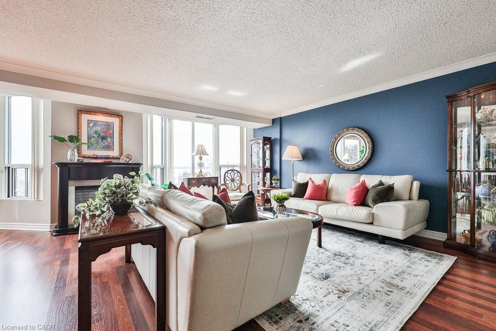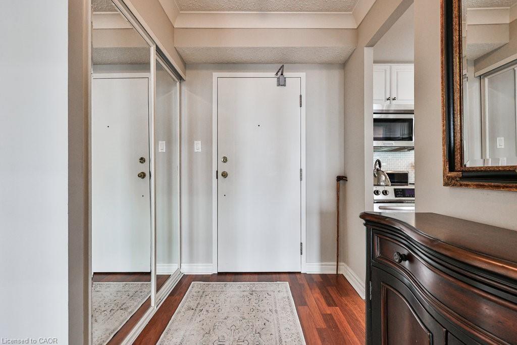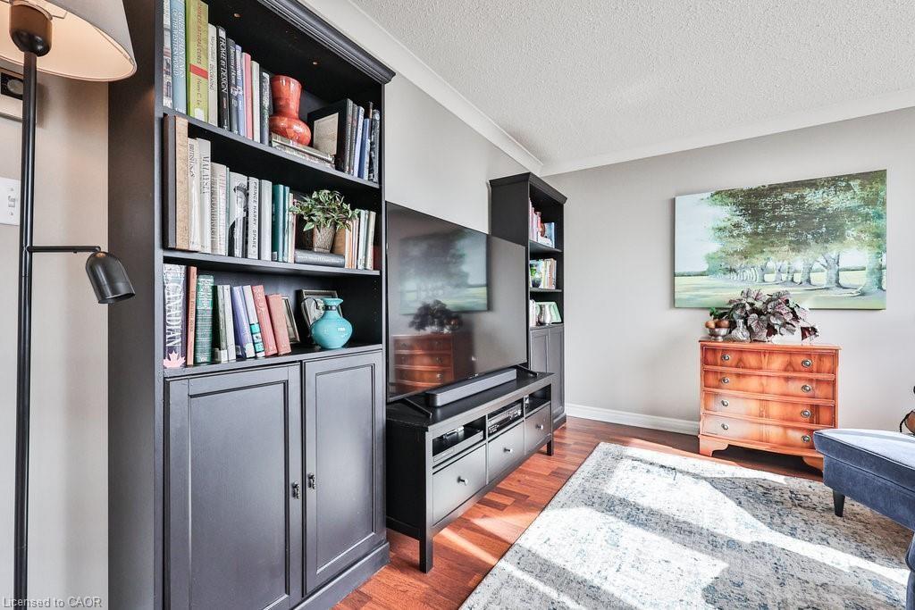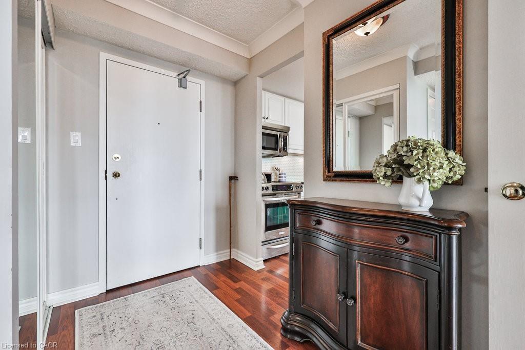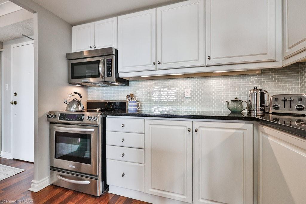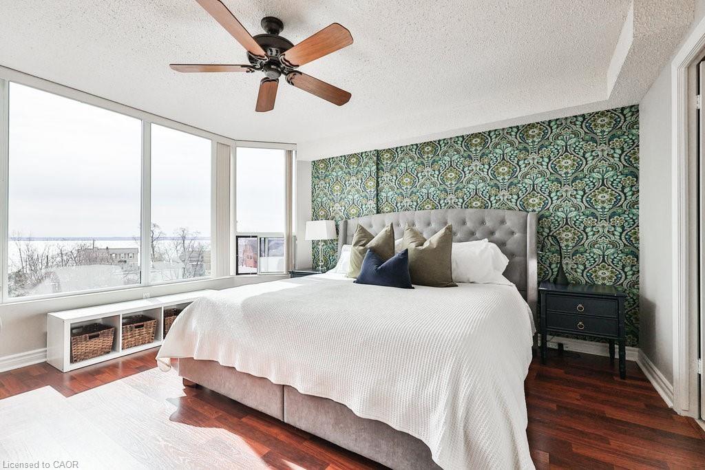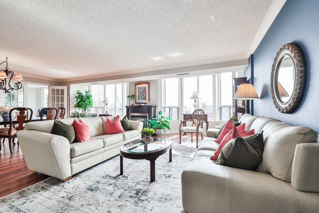 Welcome home. Fabulous downtown Burlington Waterfront living at the Village Gate. Boutique building with only 39 units offering luxury living and a downtown Burlington lifestyle. This 2 bedroom plus den suite is filled with natural light and enjoys lake views from all primary rooms. The spacious living and dining room is ideal for entertaining family and friends, the den with French doors offers a flex space for a home office or cozy movie space. The white wraparound kitchen features granite counters, glass backsplash and stainless appliances along with a breakfast area. Relax in your primary bedroom with lake views and a 3-piece ensuite, there is an additional bedroom for guests and a 4-piece bath. Beautiful landscaping and extensive outdoor space to enjoy with mature treeline and tranquil creek. All just a short stroll to all Downtown Burlington has to offer!