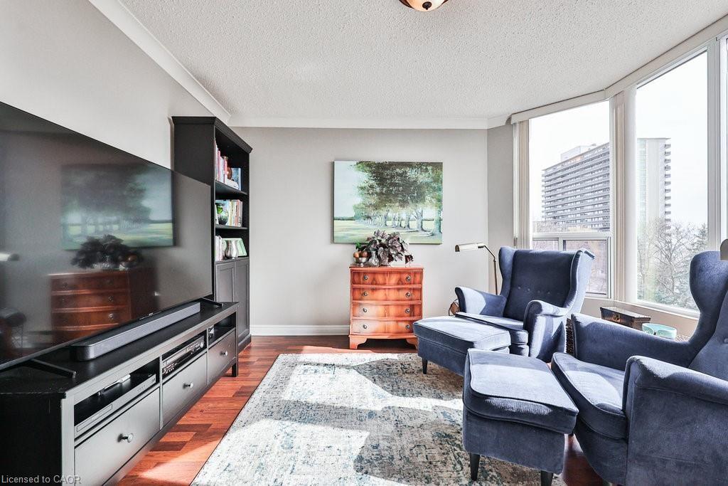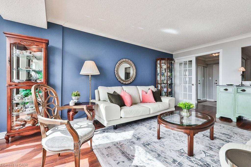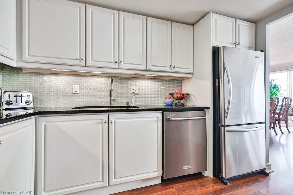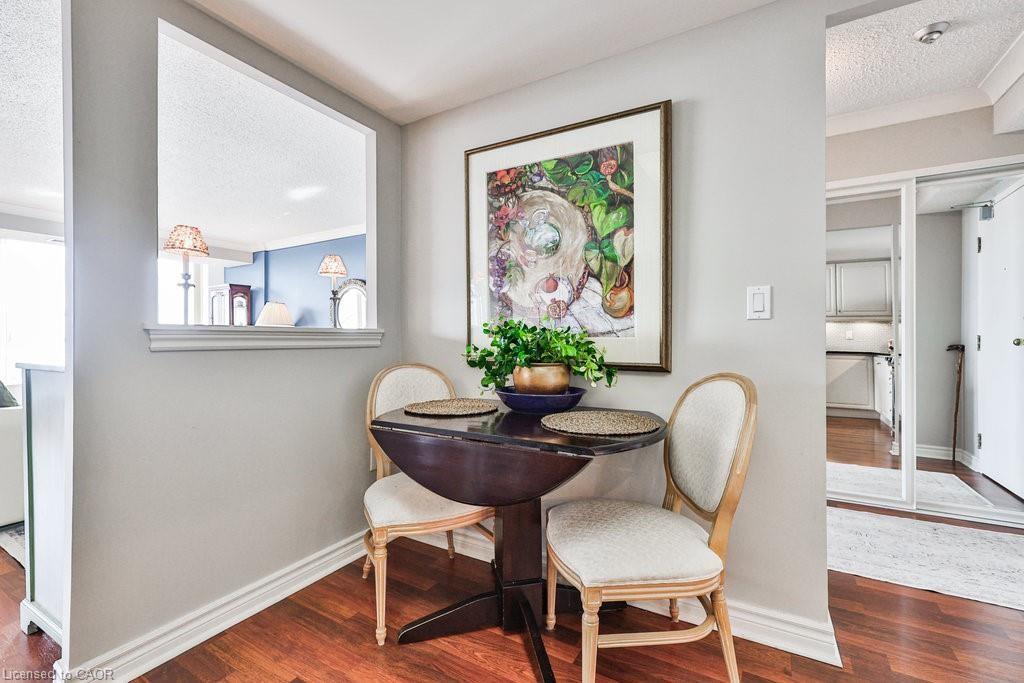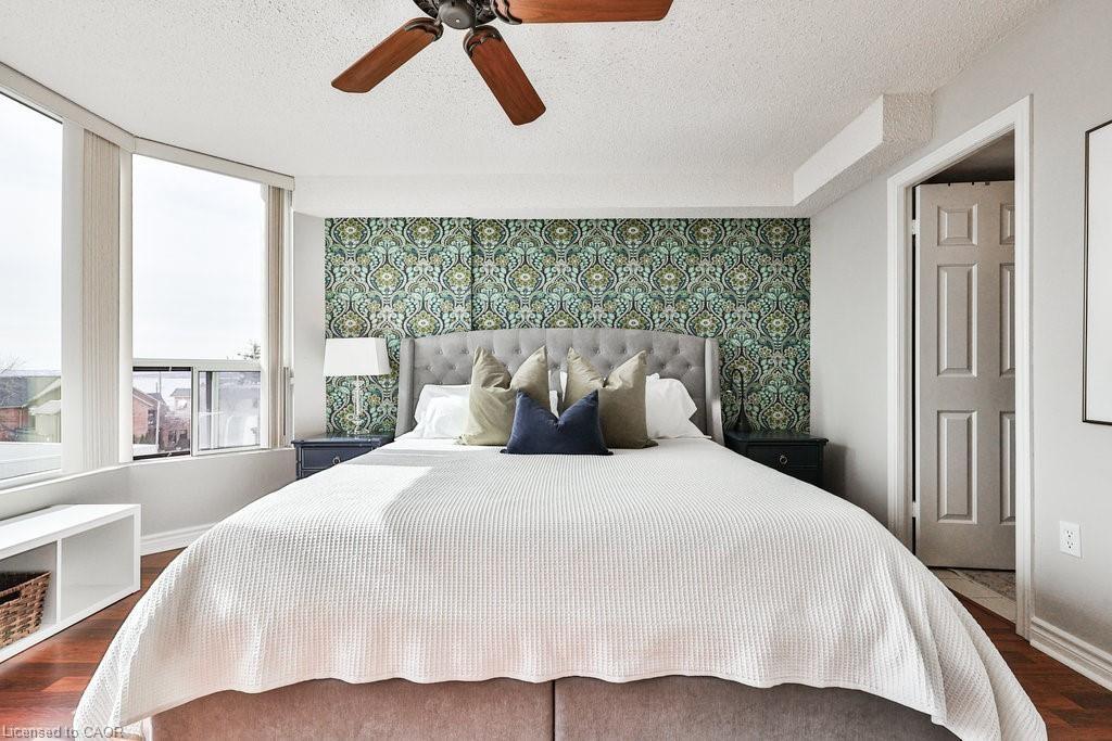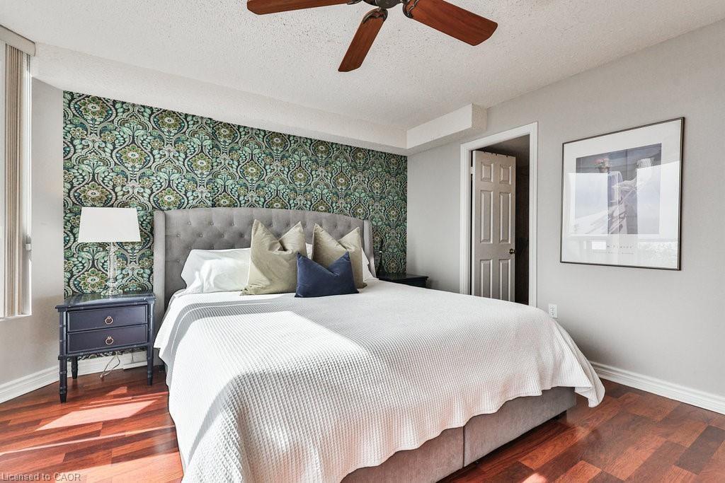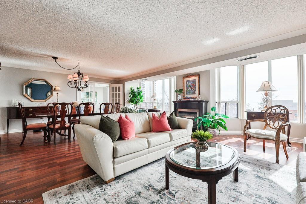 Welcome home. Fabulous downtown Burlington Waterfront living at the Village Gate. Boutique building with only 39 units offering luxury living and a downtown Burlington lifestyle. This 2 bedroom plus den suite is filled with natural light and enjoys lake views from all primary rooms. The spacious living and dining room is ideal for entertaining family and friends, the den with French doors offers a flex space for a home office or cozy movie space. The white wraparound kitchen features granite counters, glass backsplash and stainless appliances along with a breakfast area. Relax in your primary bedroom with lake views and a 3-piece ensuite, there is an additional bedroom for guests and a 4-piece bath. Beautiful landscaping and extensive outdoor space to enjoy with mature treeline and tranquil creek. All just a short stroll to all Downtown Burlington has to offer!